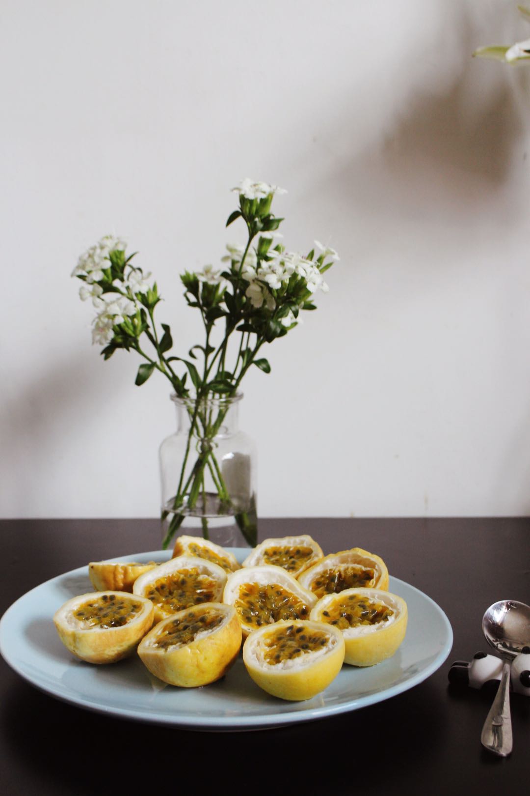 3、百香果+青柠+蜂蜜+水+冰块=超好吃的果汁