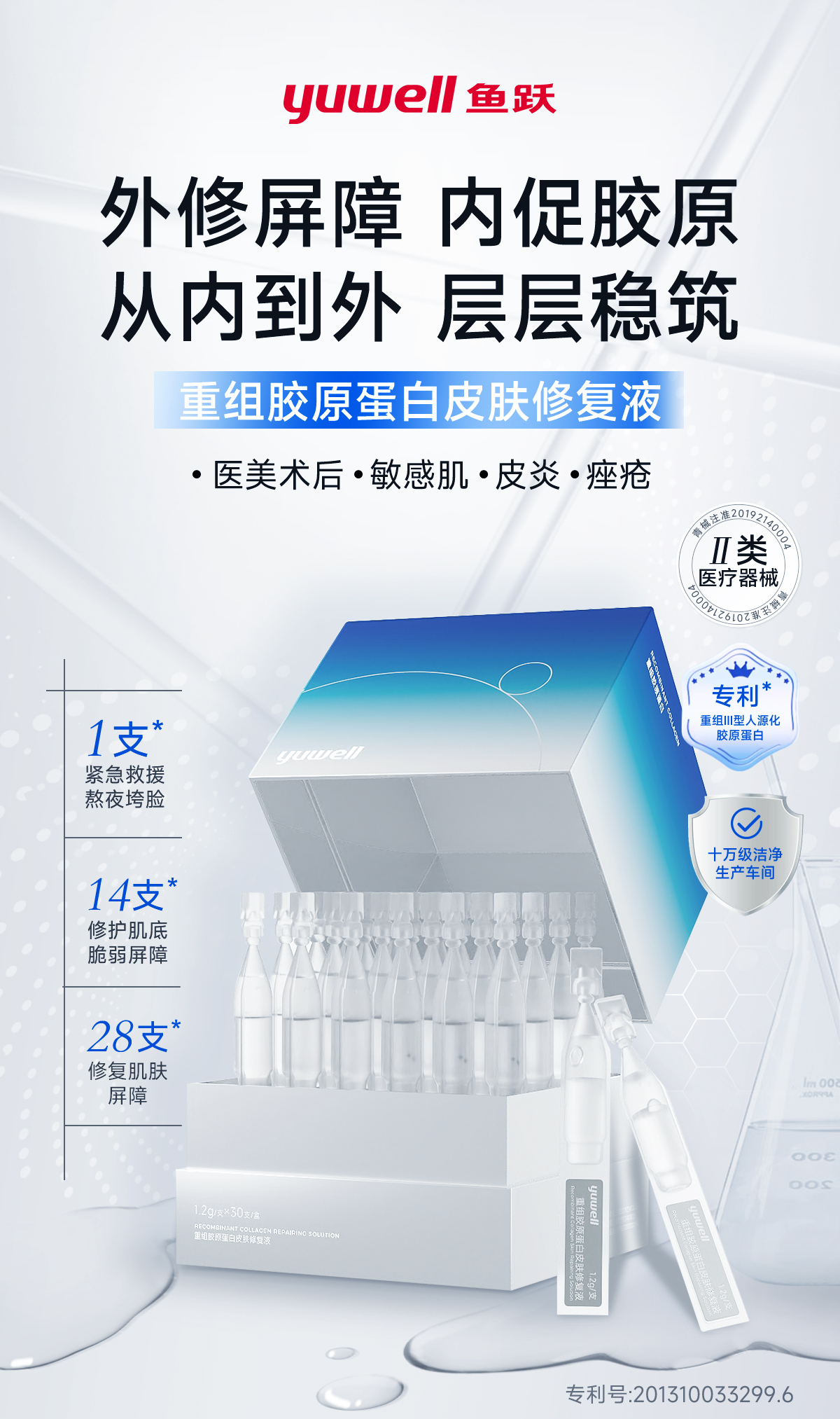 鱼跃重组胶原蛋白皮肤修复液1盒30支