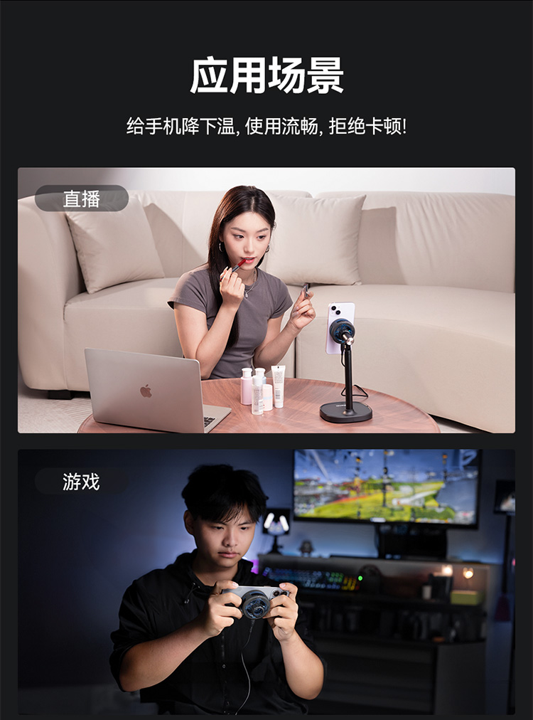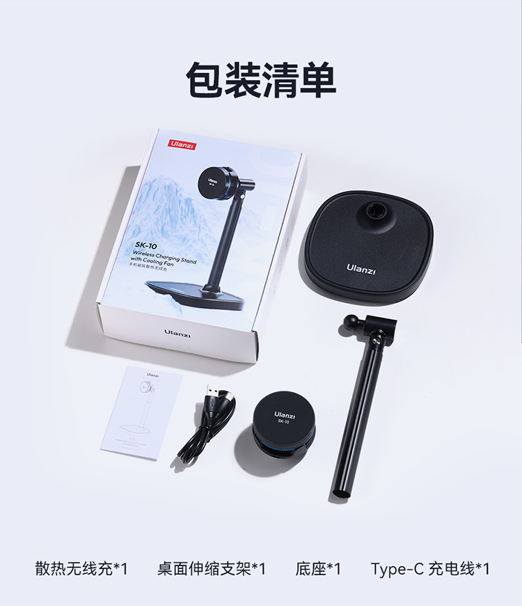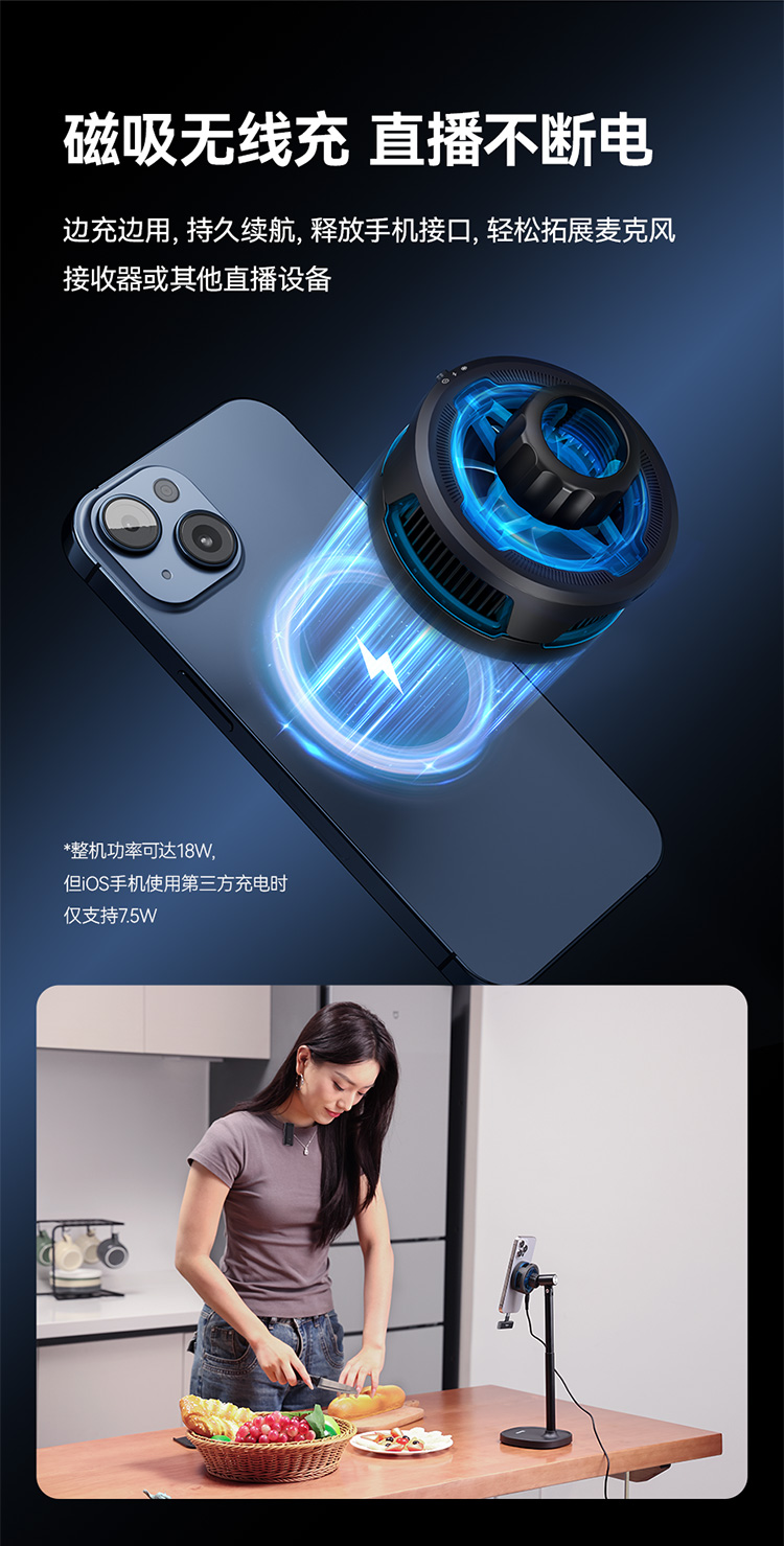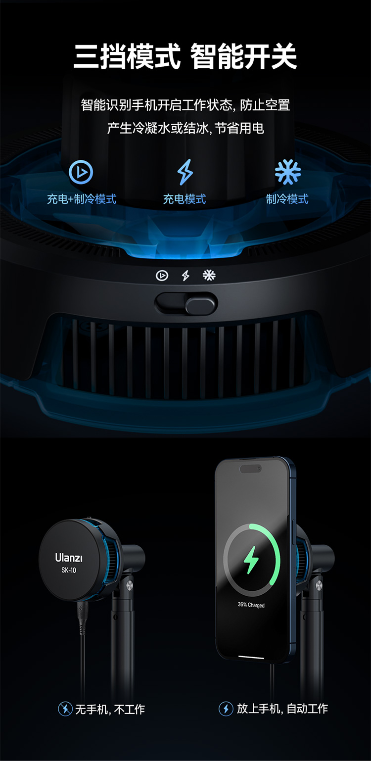 Ulanzi优篮子SK10手机磁吸半导体散热器无线充电支架充电器桌面直播游戏散热器降温神器适用于iphone苹果华为