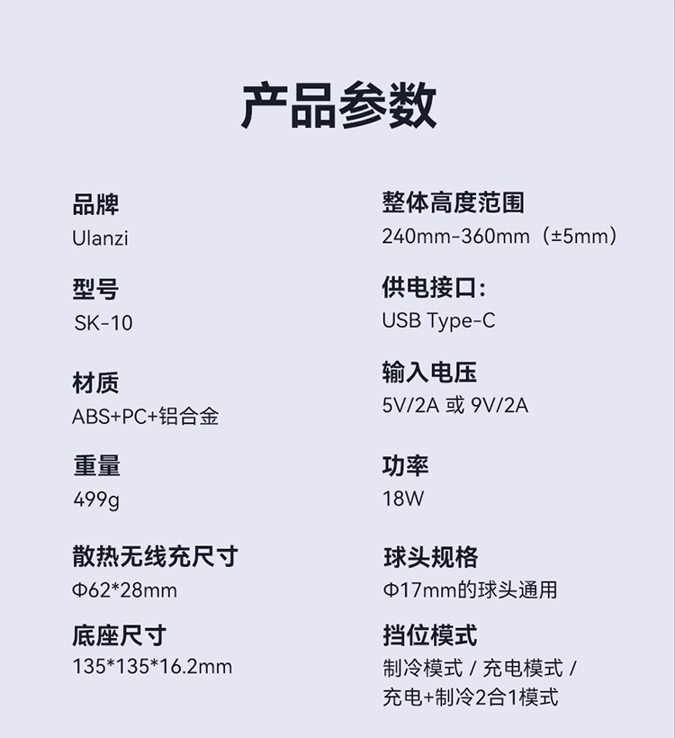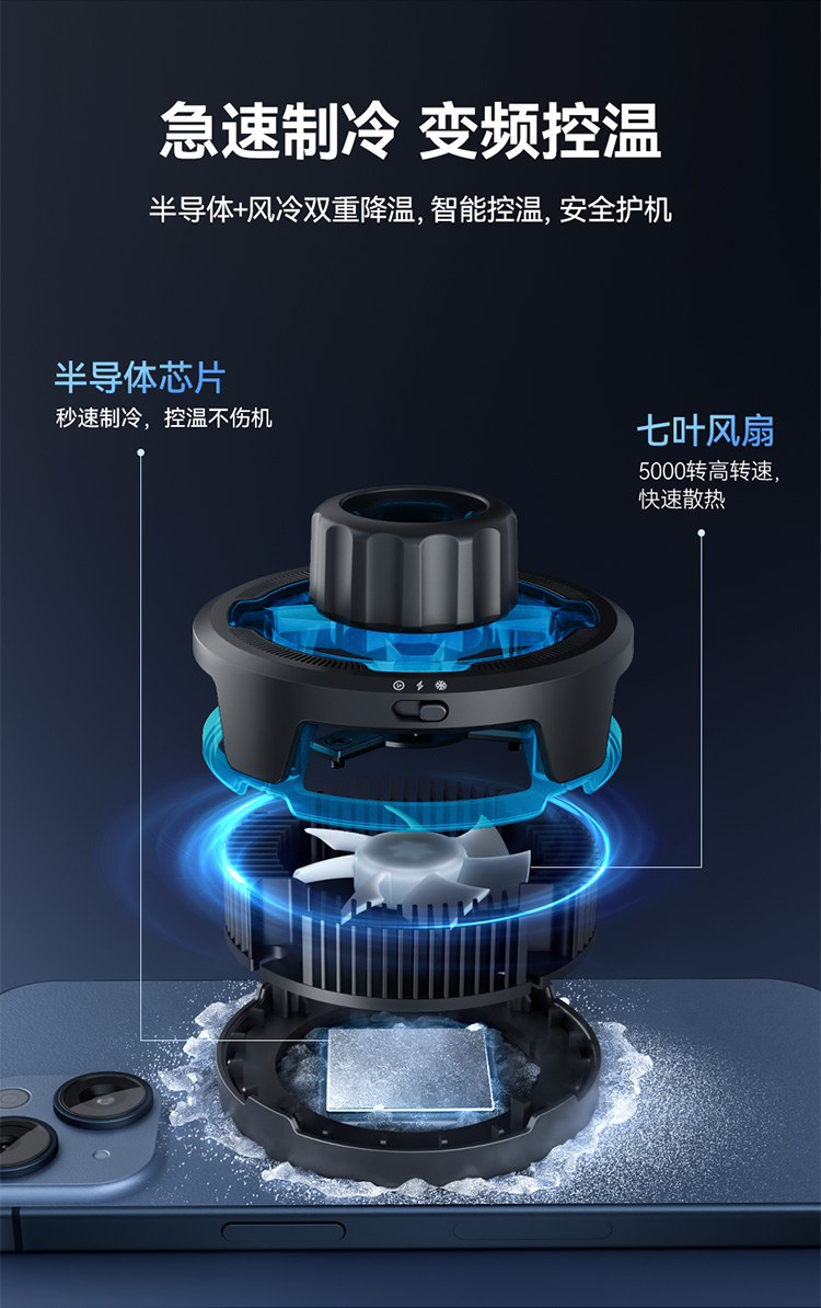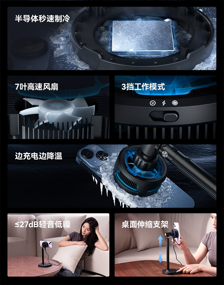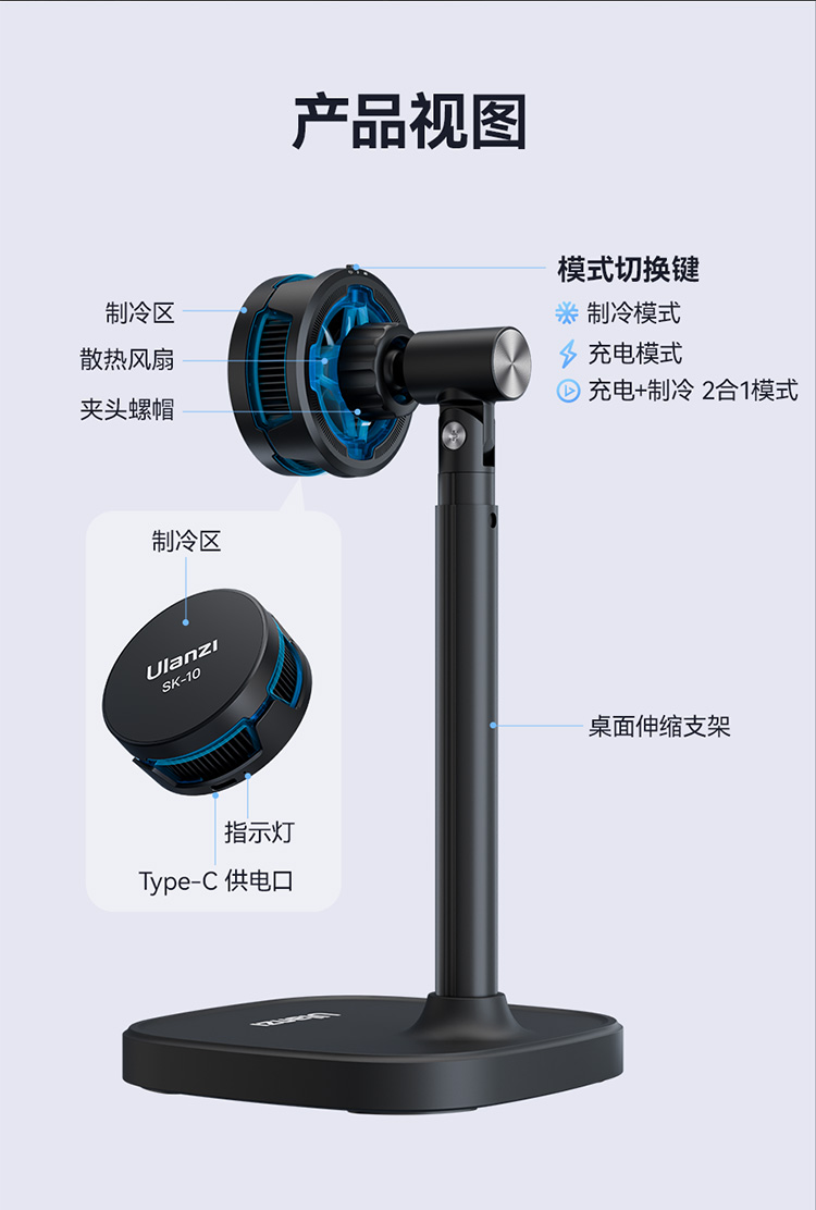 Ulanzi优篮子SK10手机磁吸半导体散热器无线充电支架充电器桌面直播游戏散热器降温神器适用于iphone苹果华为