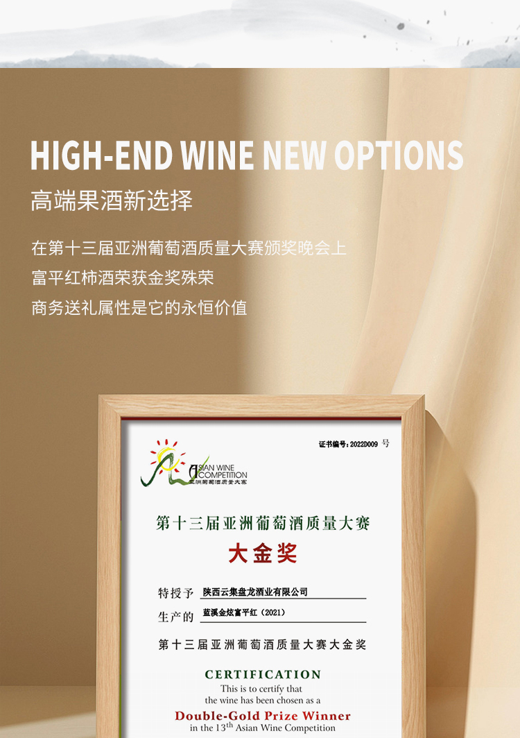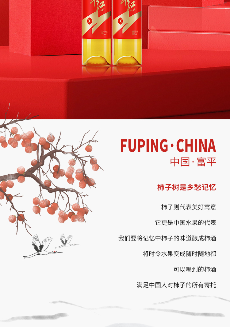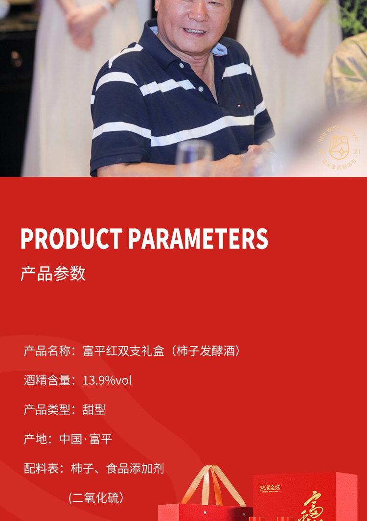 【富平红柿礼】蓝溪金炫 富平红礼盒 13.9%vol 原酿柿酒 富平红375ml双支礼盒
