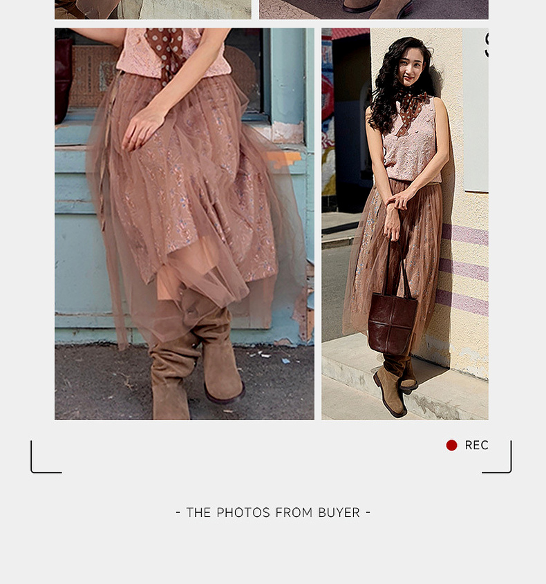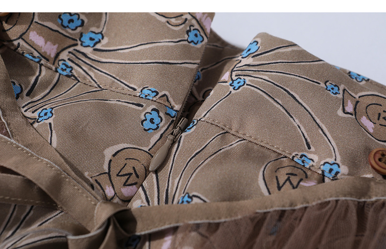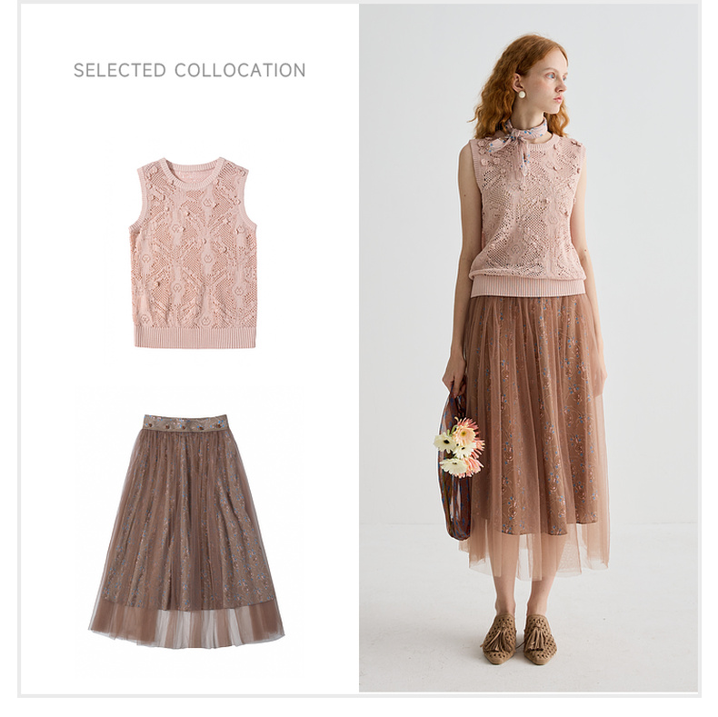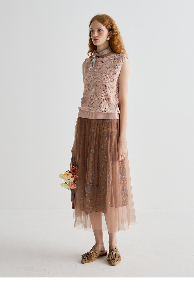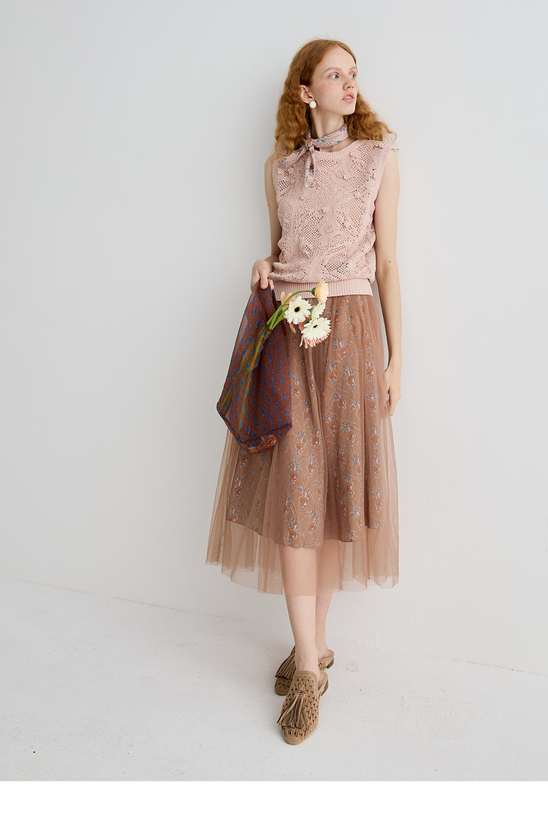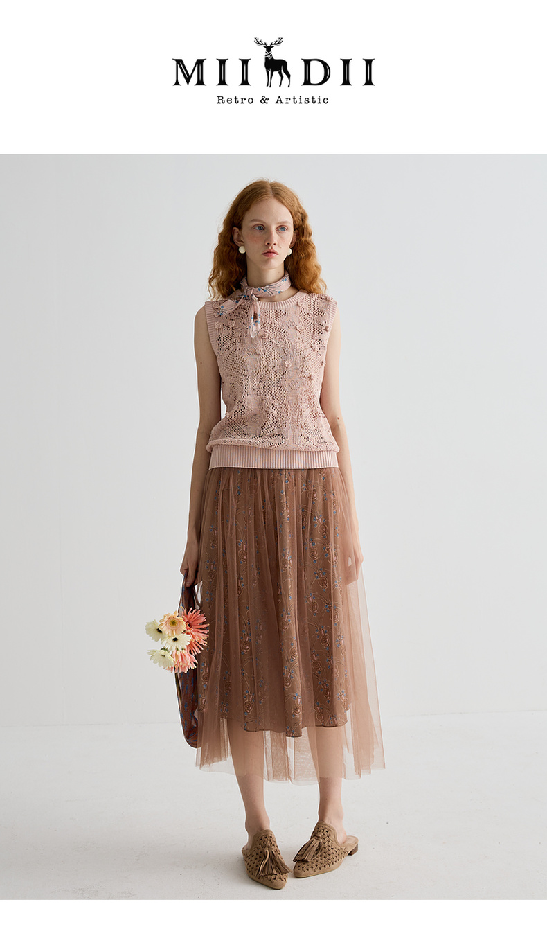 谜底半身裙女2025夏季新品度假网纱印花宽松A型中长半裙252MB0603