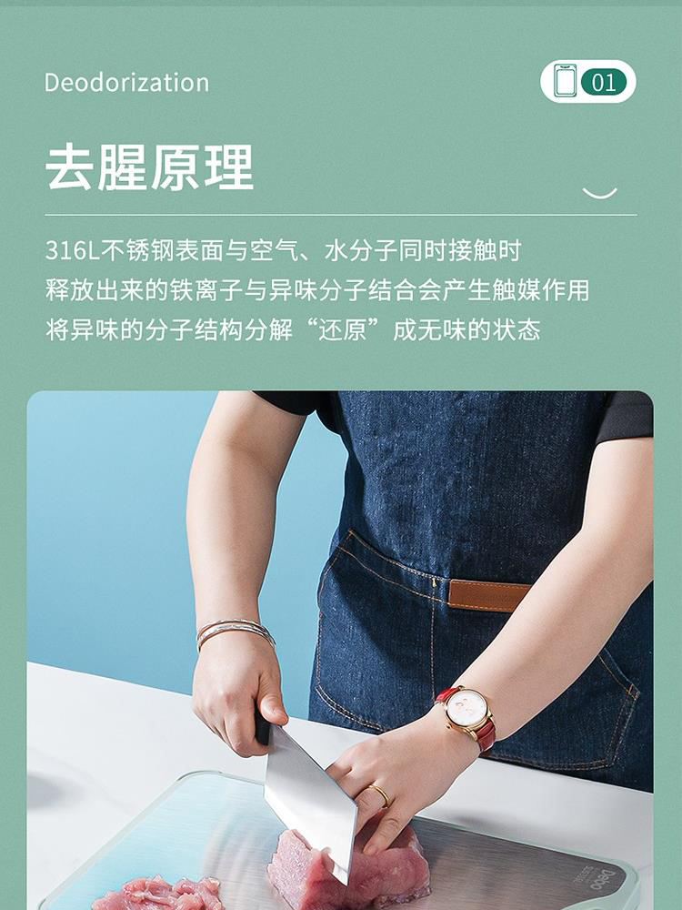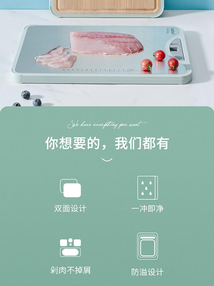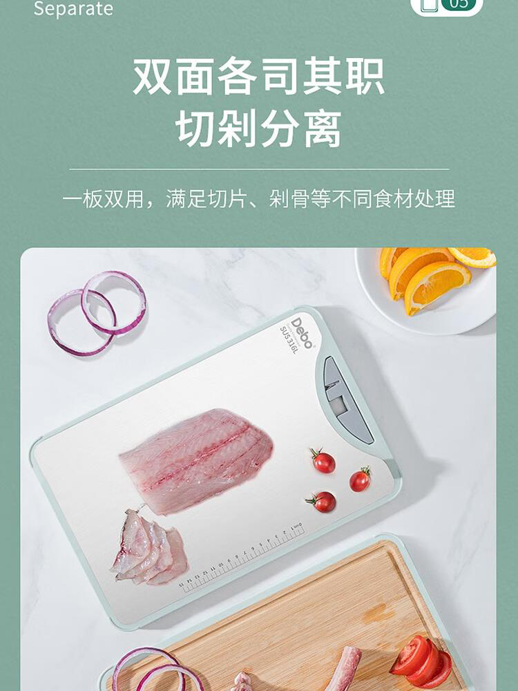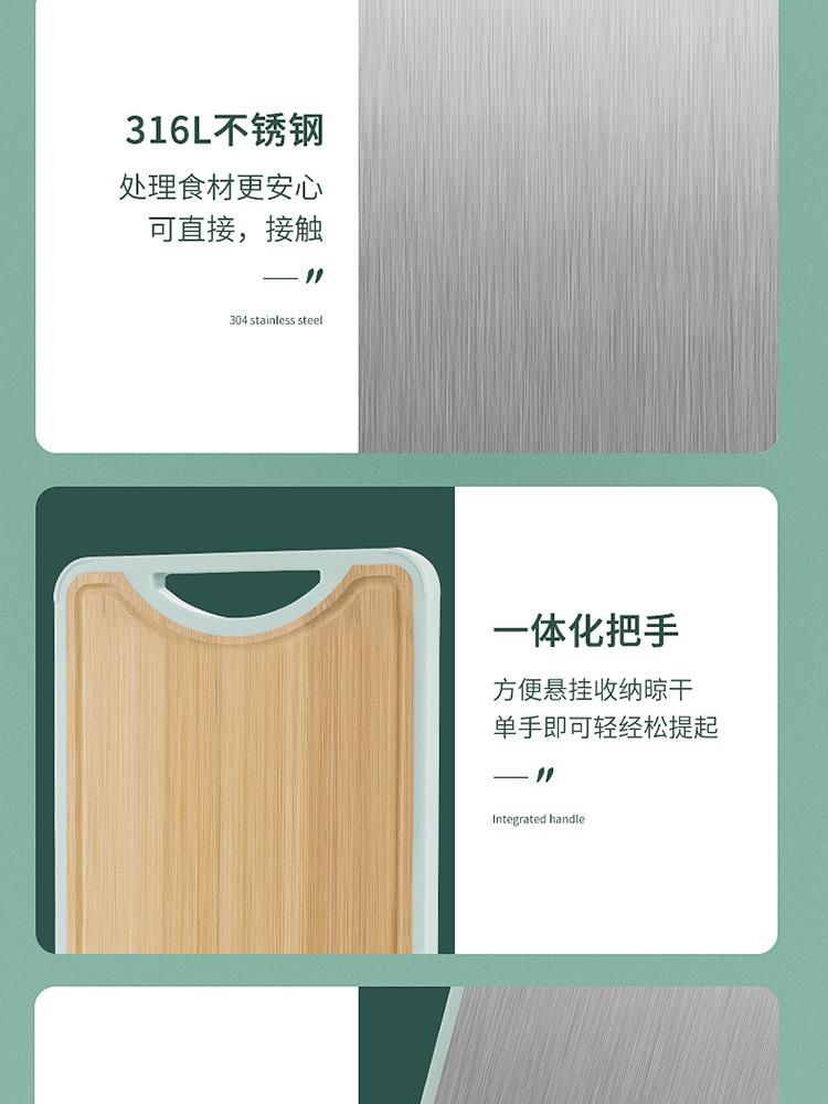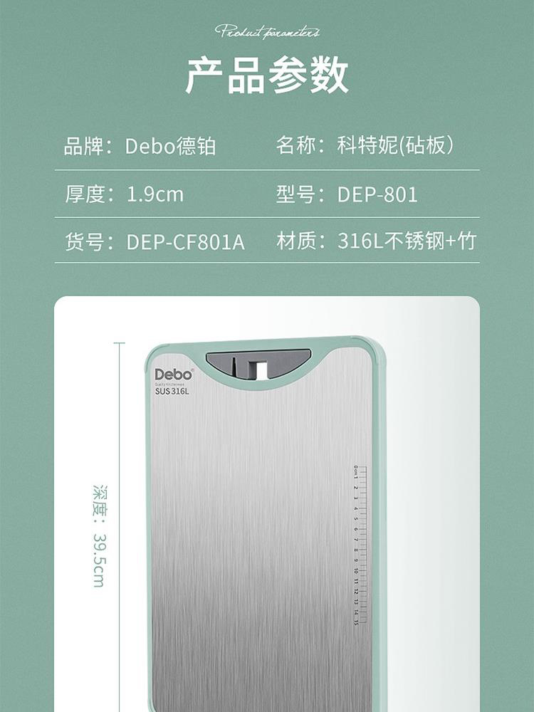 德铂Debo 科特妮双面菜板 DEP-801 316不锈钢+竹木料砧板