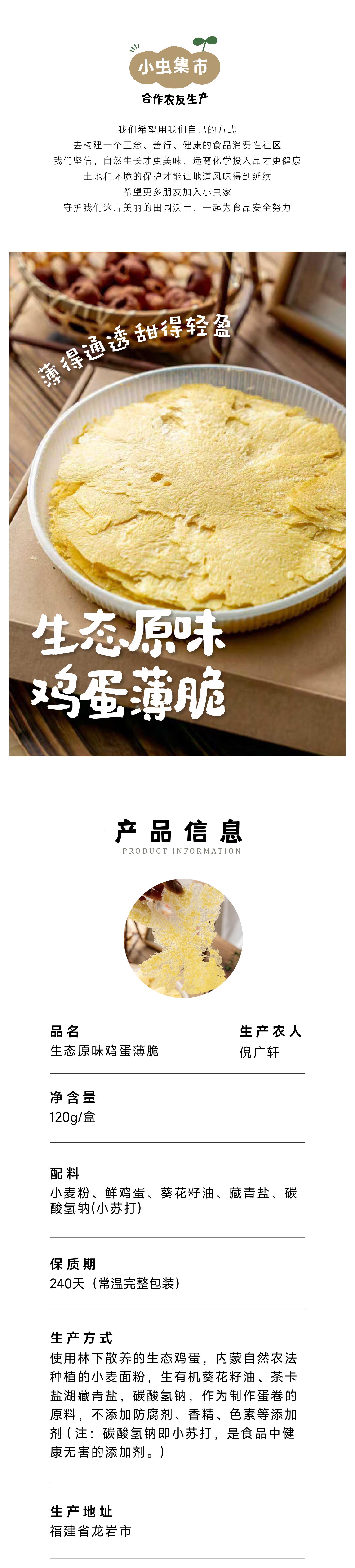 生态原味鸡蛋薄脆(低糖蛋卷系列)120g/盒 | 合作农友生产,来自北京市湾屯镇,生产者:倪广轩 *【公平贸易农人定价】