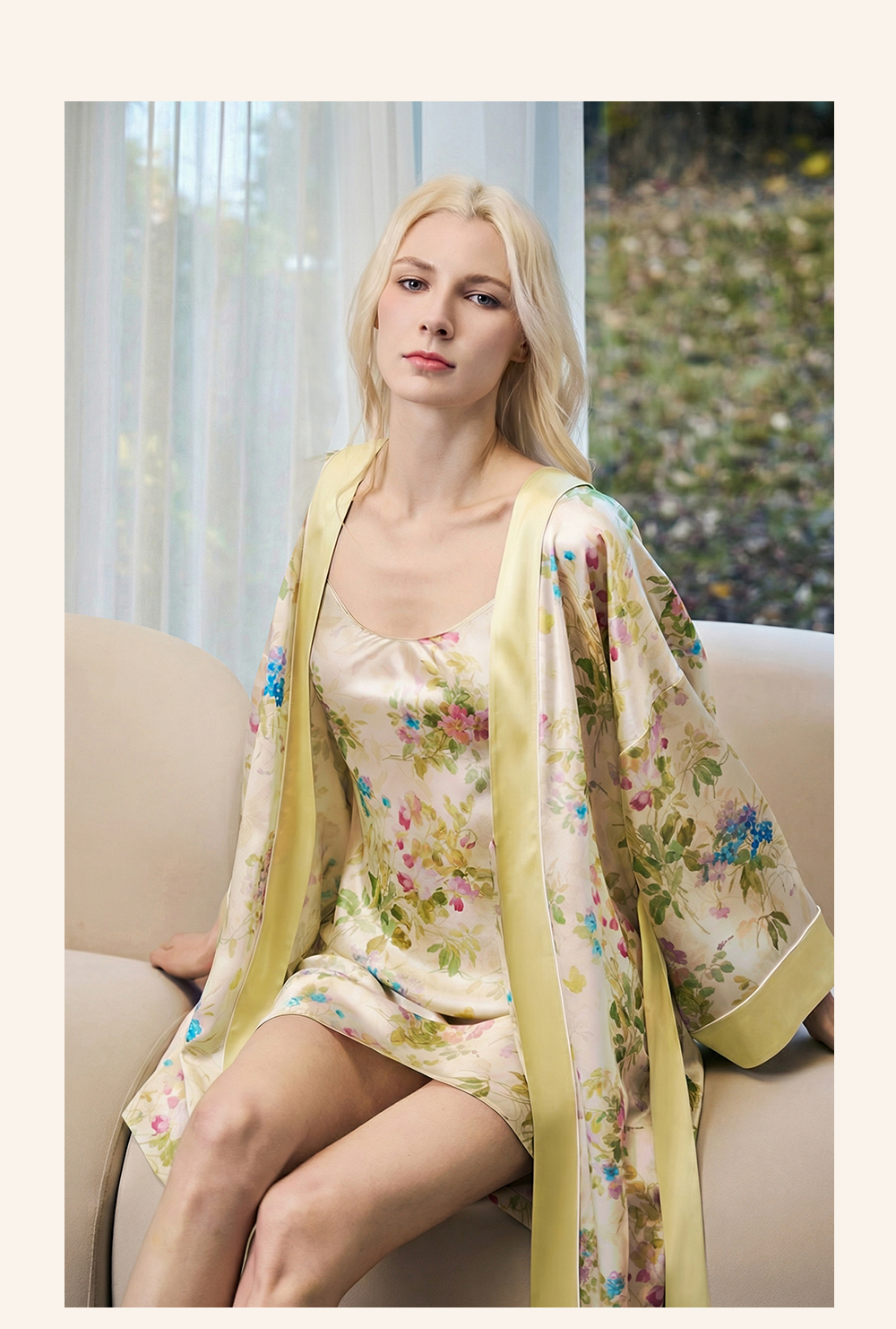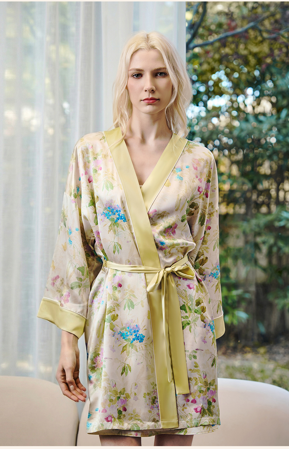 Solo seta22姆米女士真丝睡袍桑蚕丝花卉印花家居服2026春夏新款