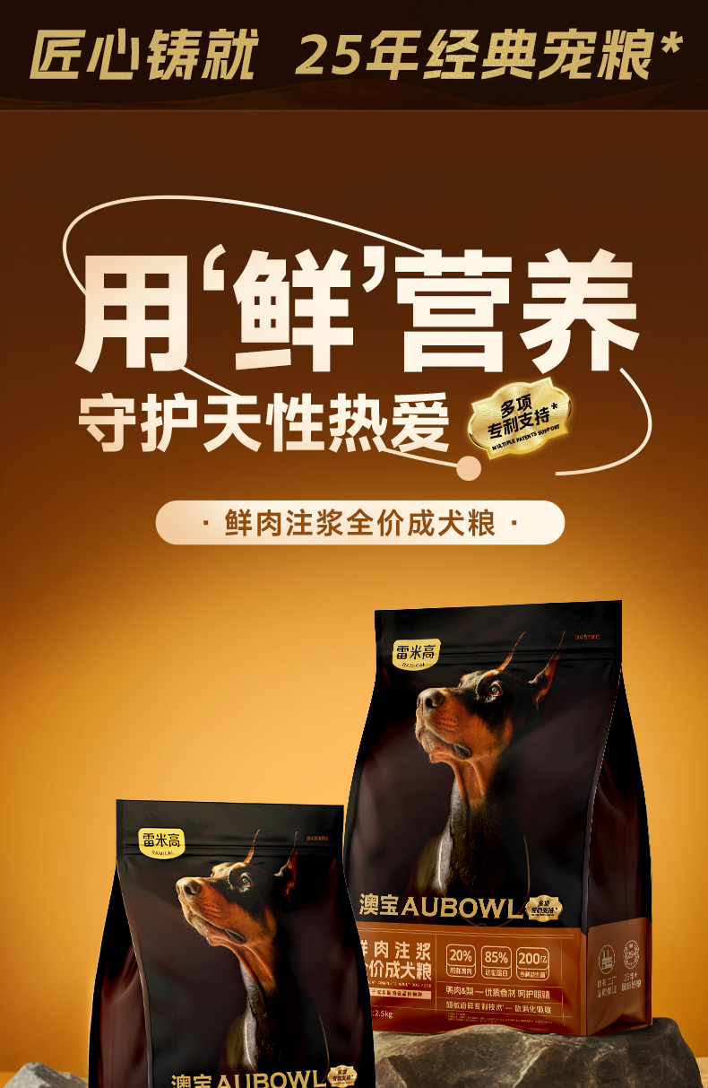 雷米高 澳宝犬粮鲜肉注浆犬粮成犬均衡膳食温和肠道 澳宝鲜肉注浆全价成犬粮 2.5kg