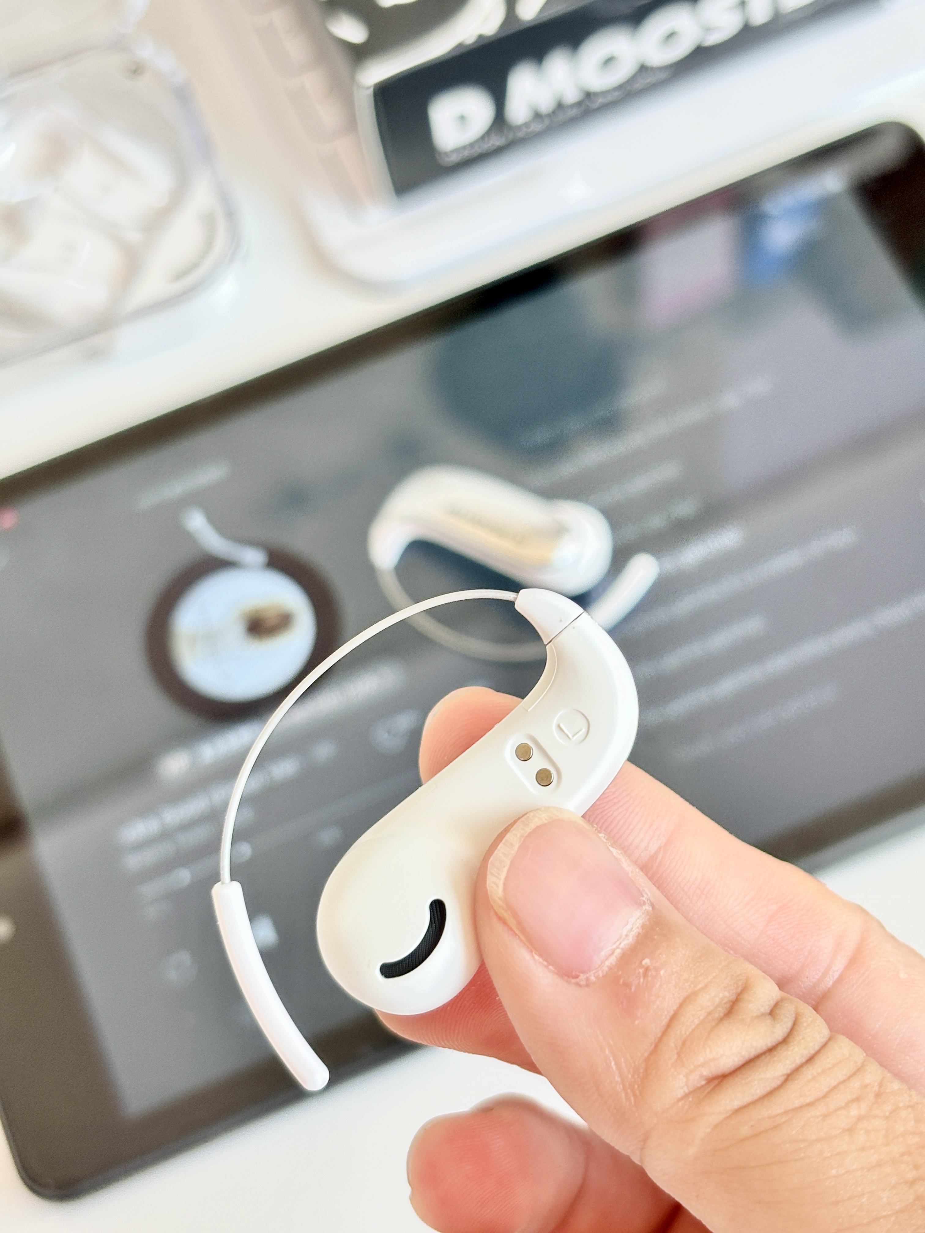 运用黄金分割点支撑原理,在贴近耳廓的地方做了弯道处理,减轻耳朵负担,凸凹更贴合耳廓形态,即使长时间佩戴使用也不会引起耳朵肿痛