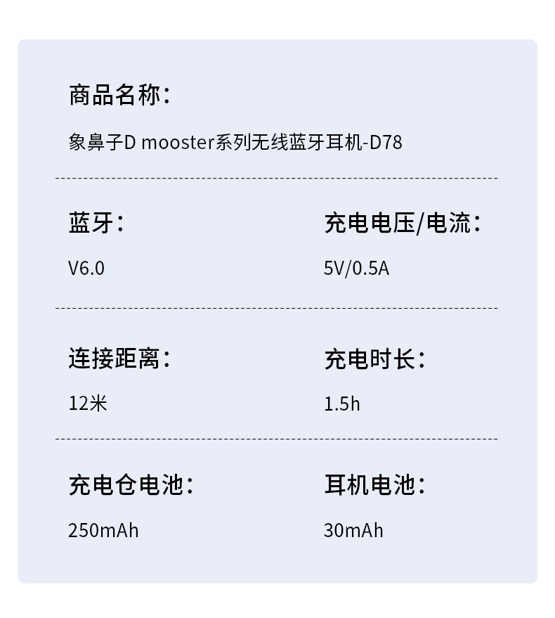 单耳机粒最高音量使用8-10小时,正常音量连续畅听10小时以上,并且充电仓带有电量,显示再也不用担心电量问题.