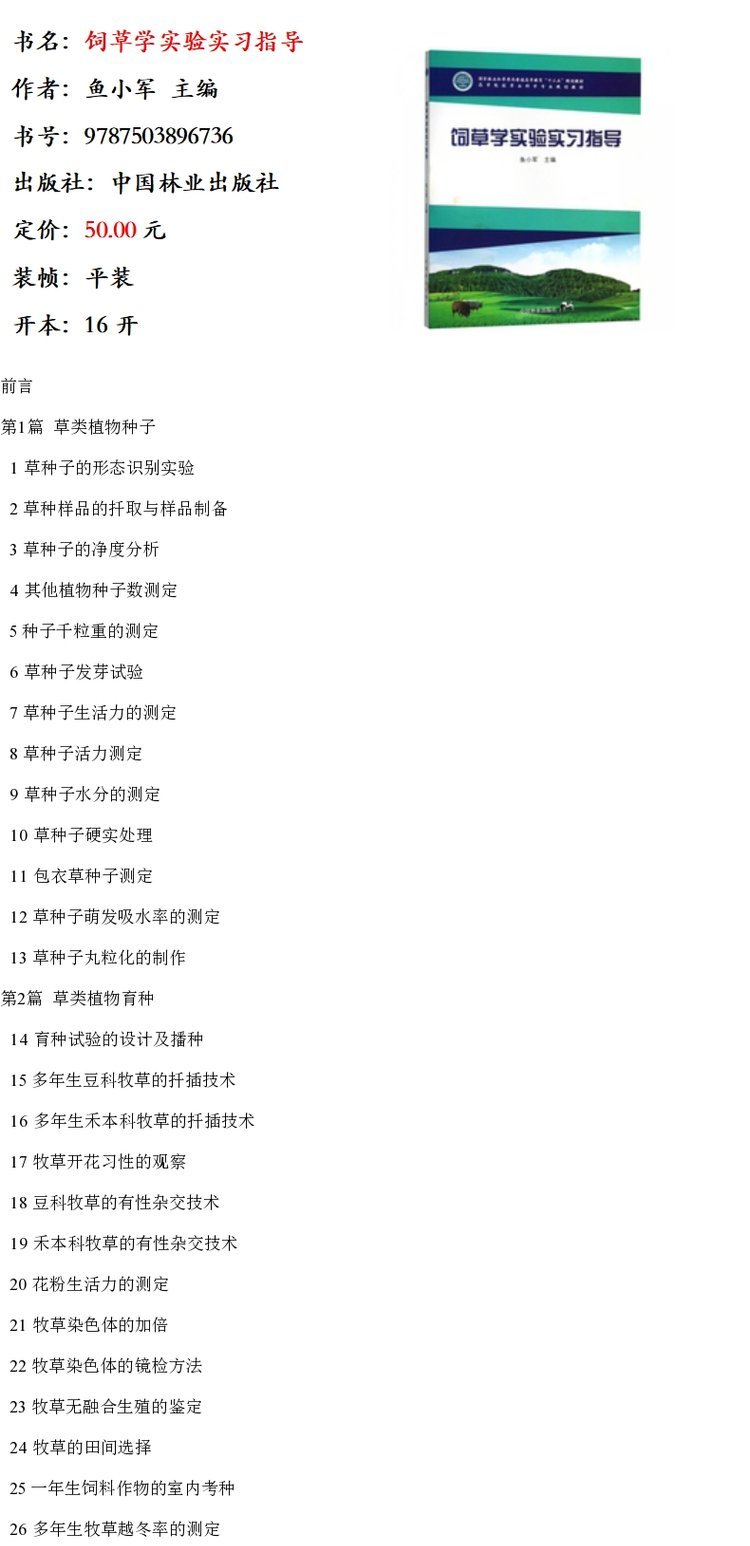 饲草学实验实习指导 9673 鱼小军 主编 高等院校草业科学专业 十三五规划教材 中国林业出版社 畅销书
