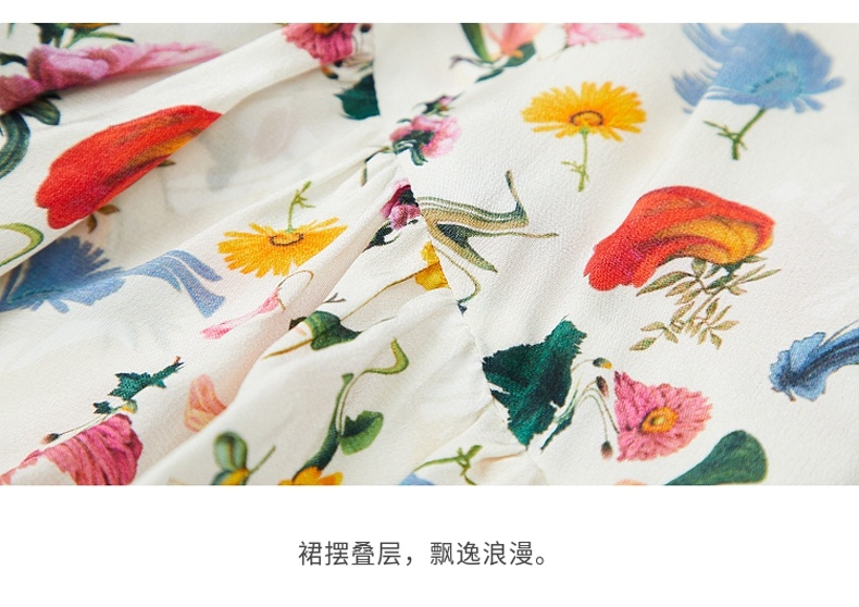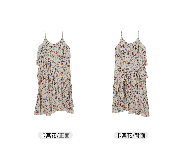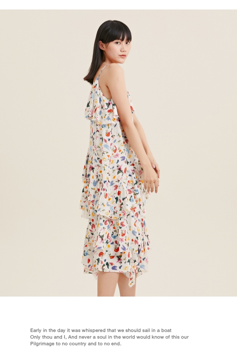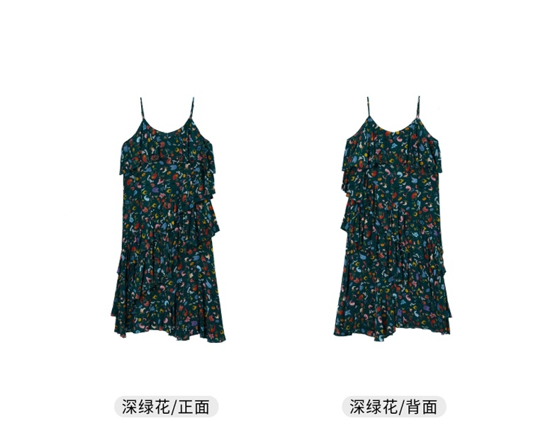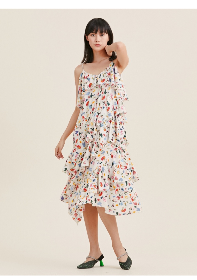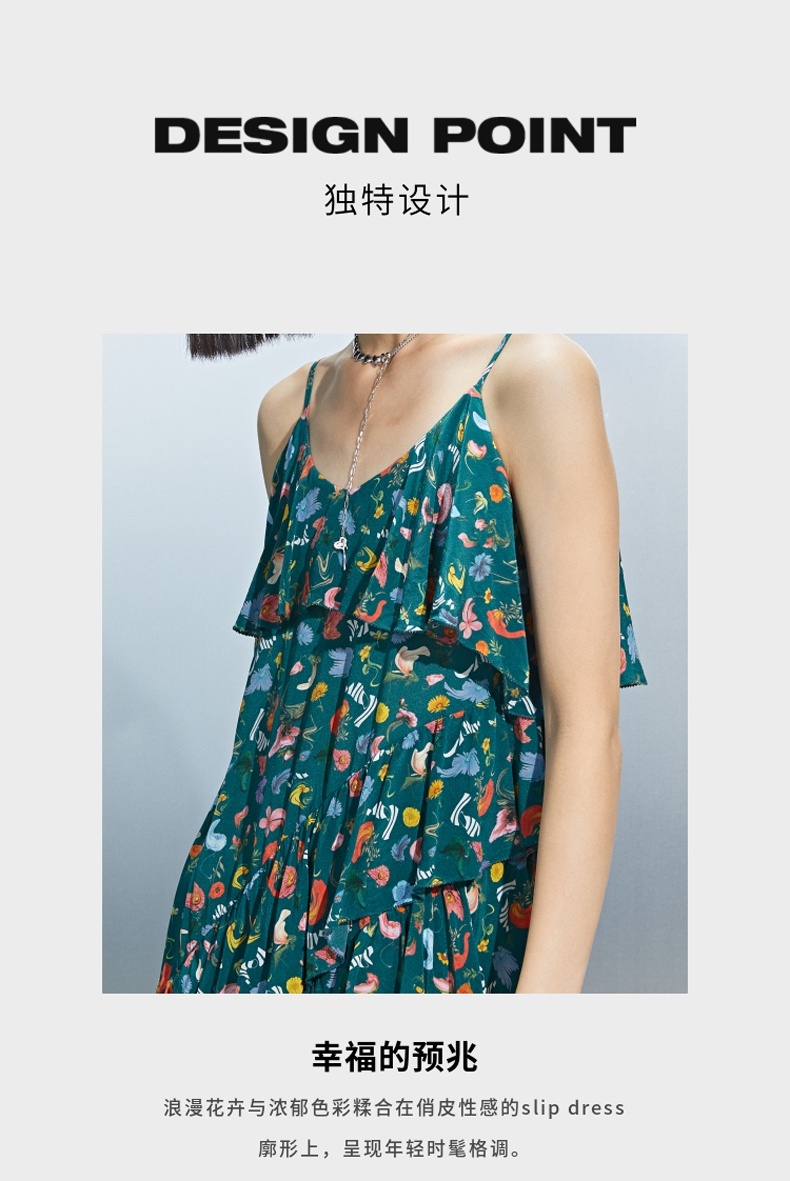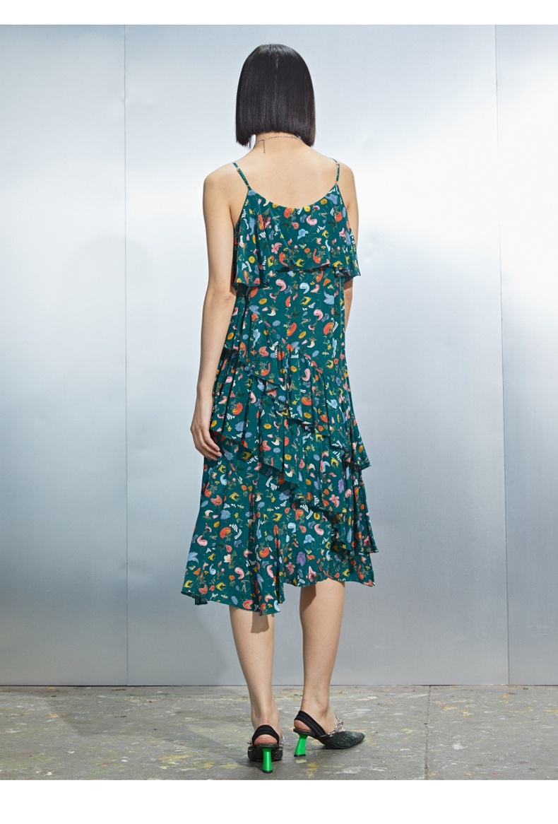 MIIDII/谜底真丝连衣裙21夏荷叶边小碎花桑蚕丝吊带裙212ML0984