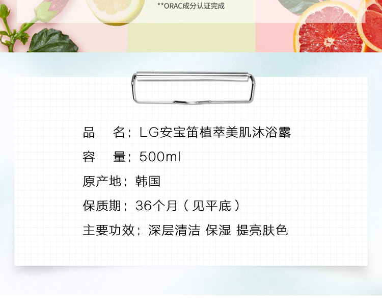 韩国OnTheBody安宝笛植萃赋活美肌沐浴露 柠檬诺丽/西柚暖姜500ml(有效期2024年6月至12月随机)