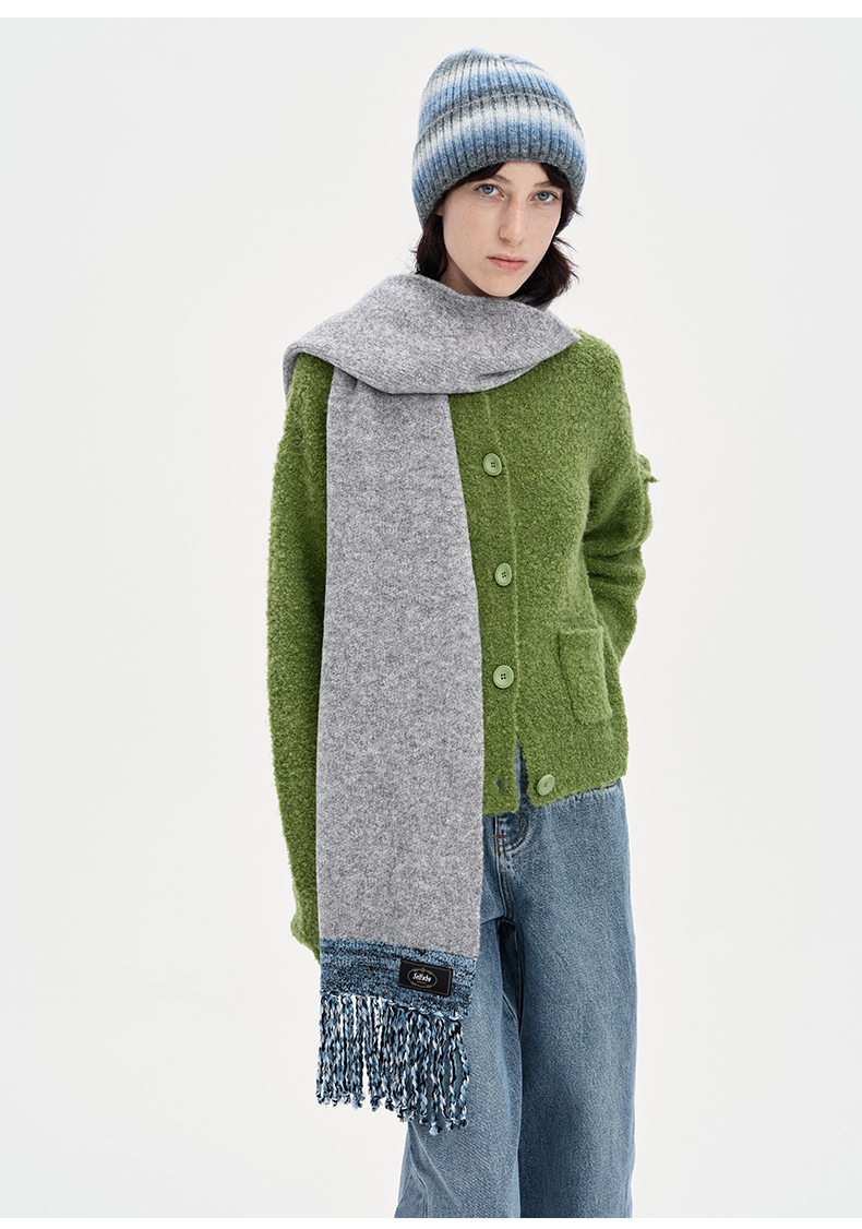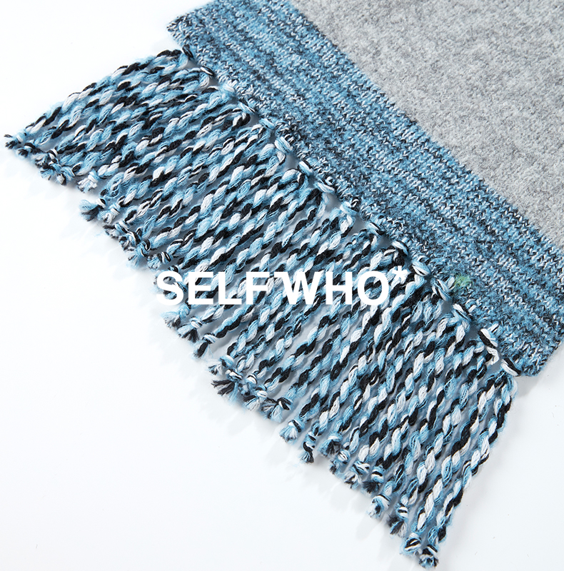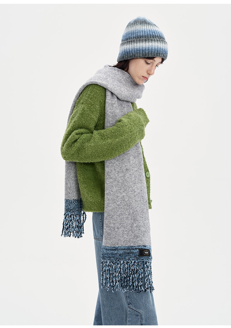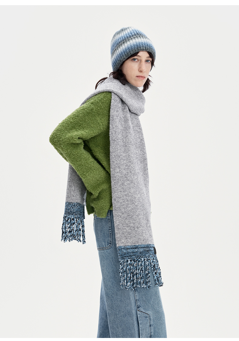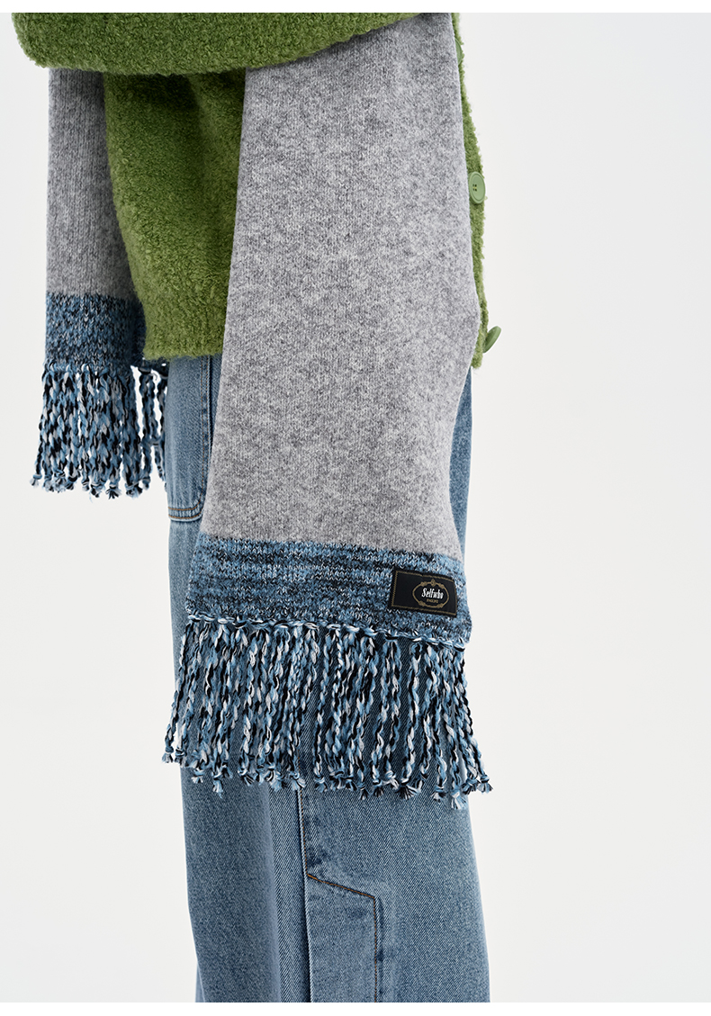 SELFWHO羊毛混纺*灰色流苏针织围巾女2024秋冬新款保暖围脖
