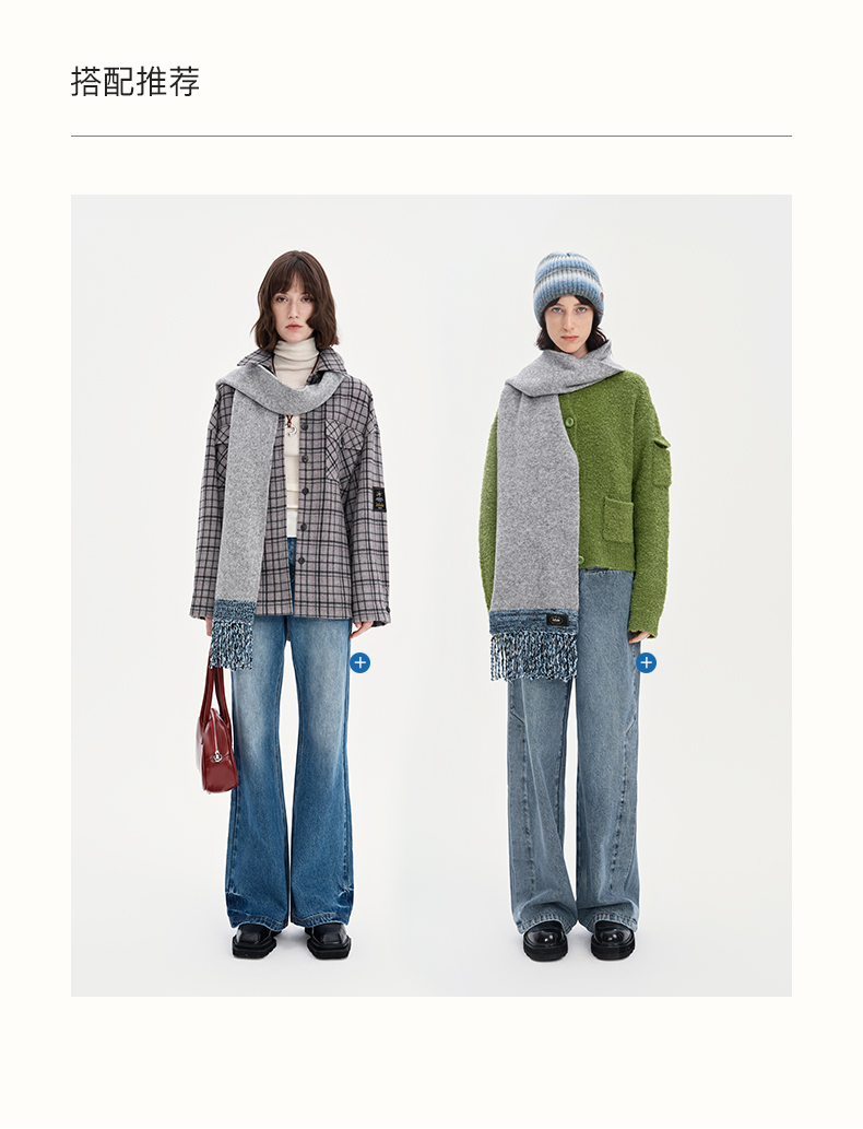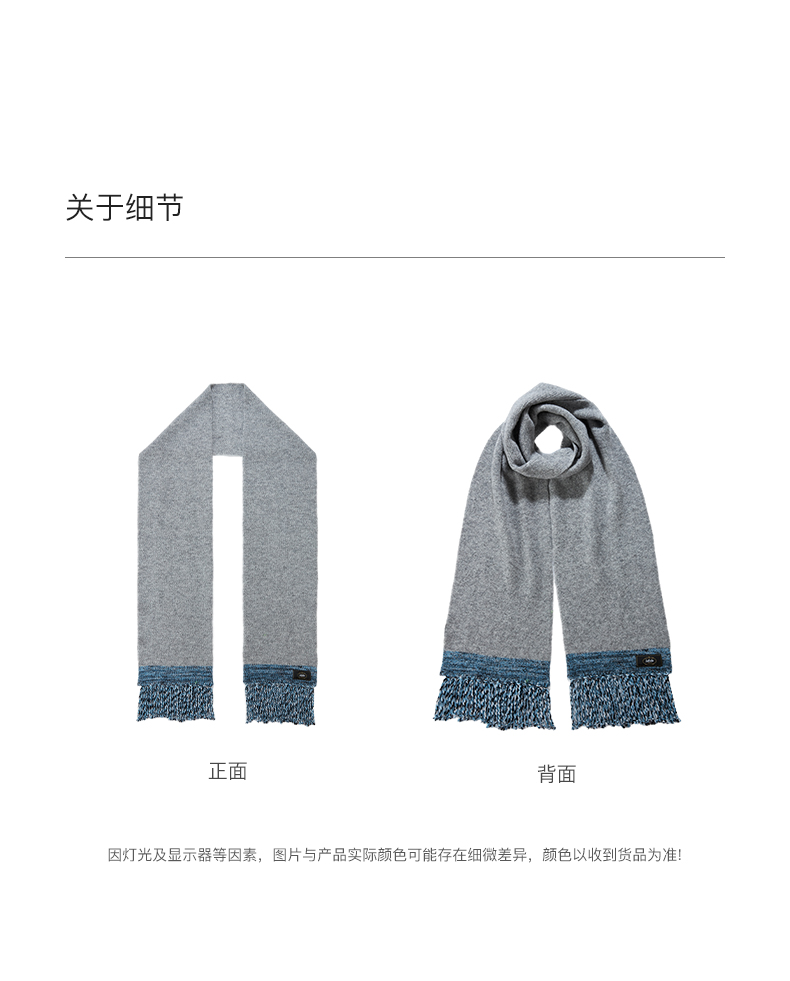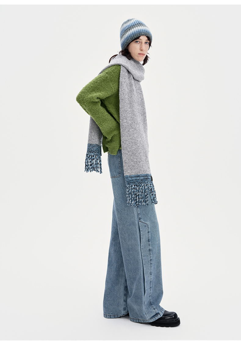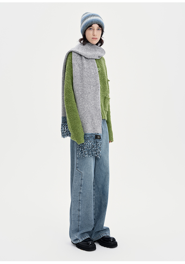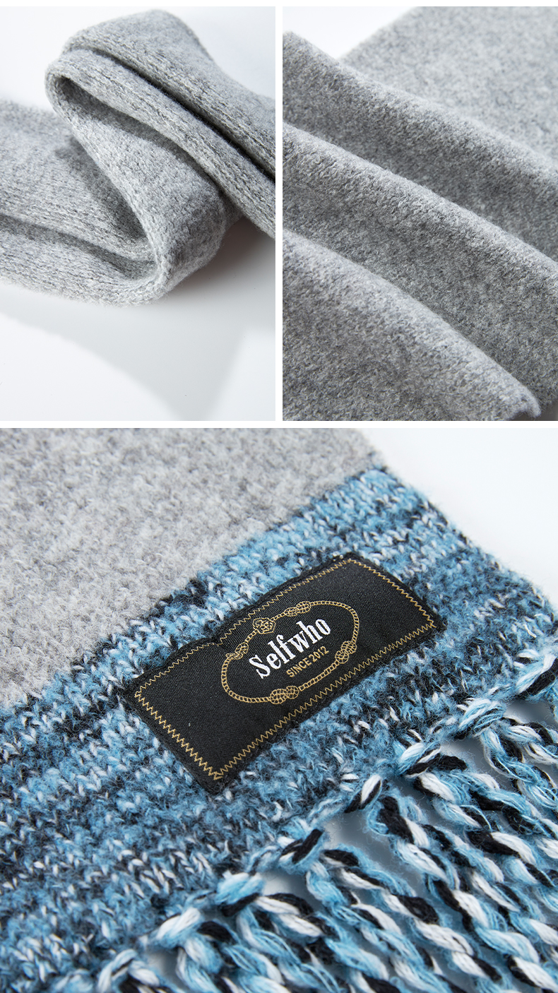 SELFWHO羊毛混纺*灰色流苏针织围巾女2024秋冬新款保暖围脖