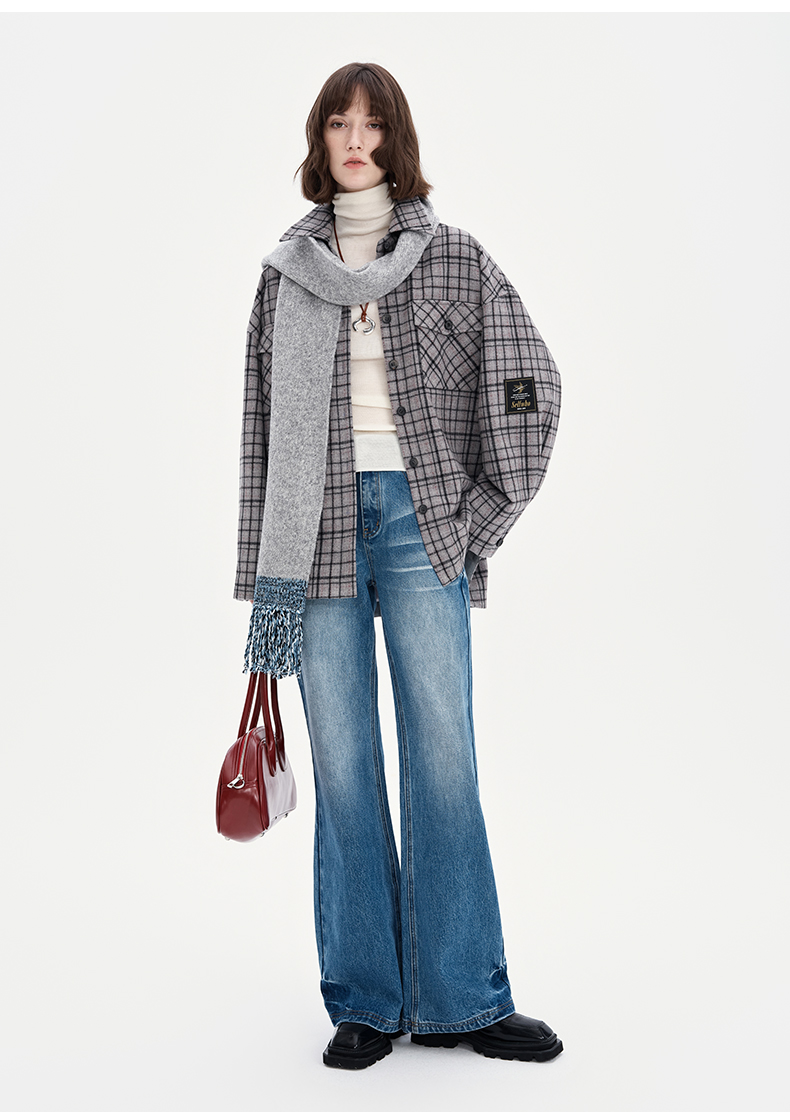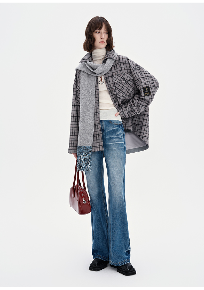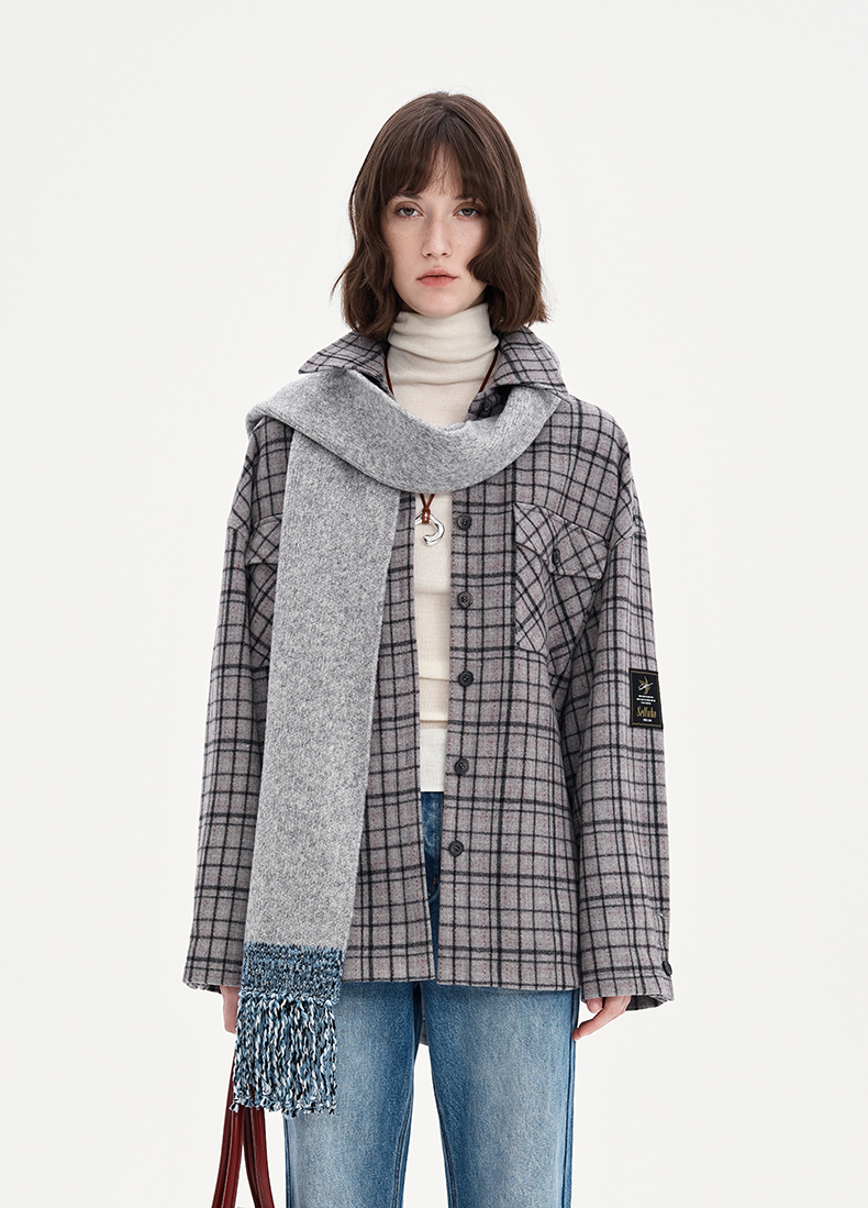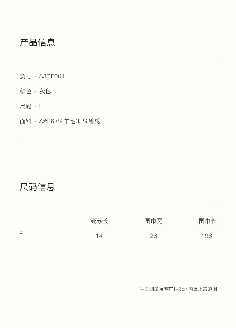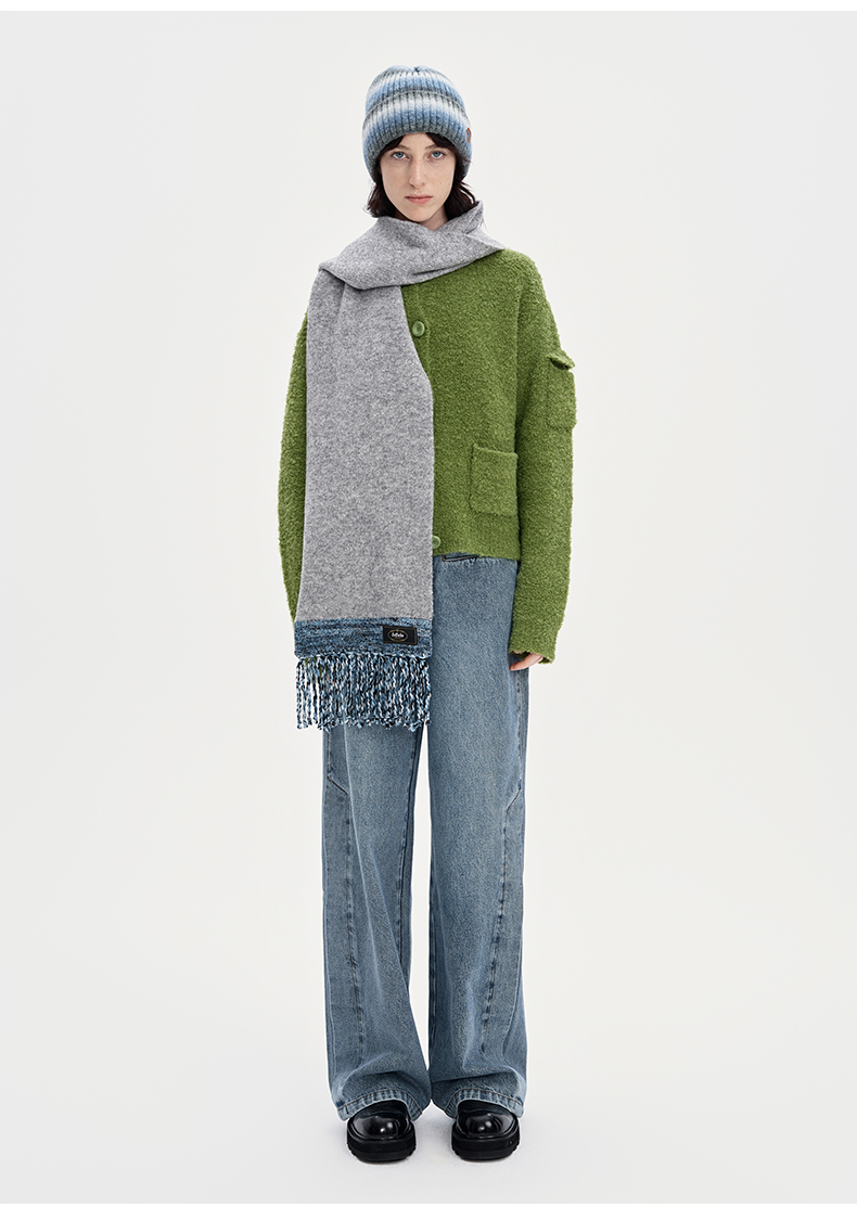 SELFWHO羊毛混纺*灰色流苏针织围巾女2024秋冬新款保暖围脖
