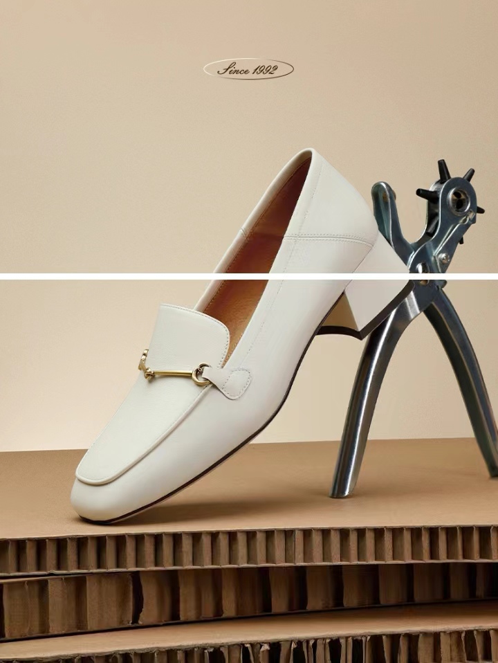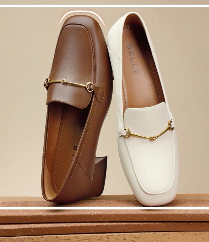 百丽2024春季新款鞋子真皮乐福鞋属实女鞋通勤跟单鞋