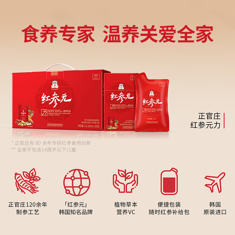 【礼想心动】正官庄 红参元力 30包/盒