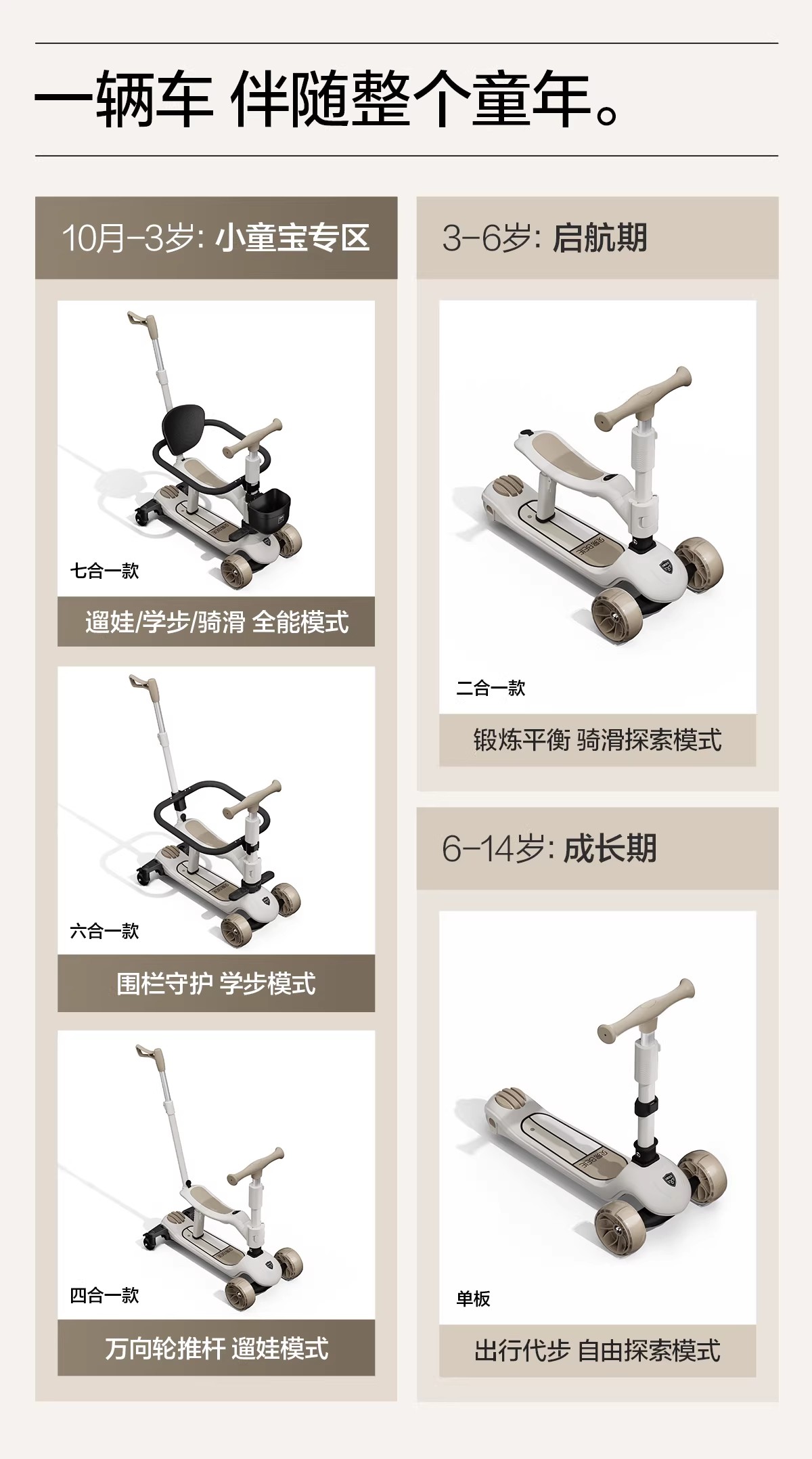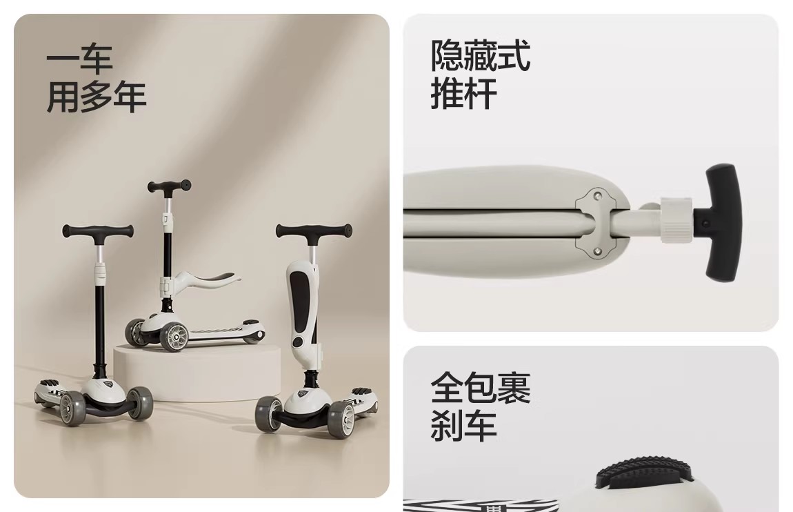 出游季秒杀!贝易儿童滑板车1到3岁6岁七合一可折叠可座宝宝滑滑学步溜娃神器【至尊滑板车】