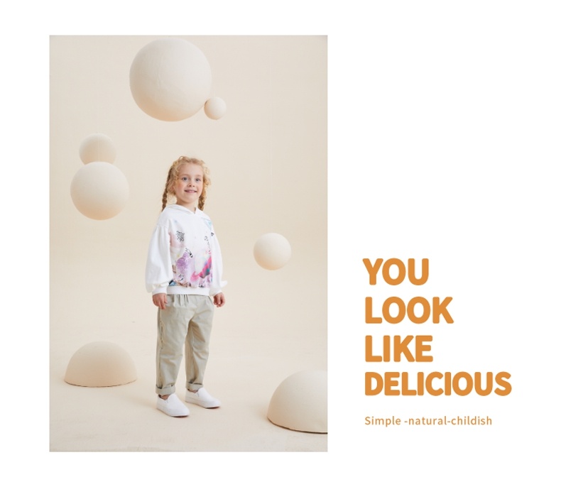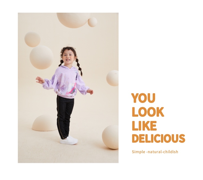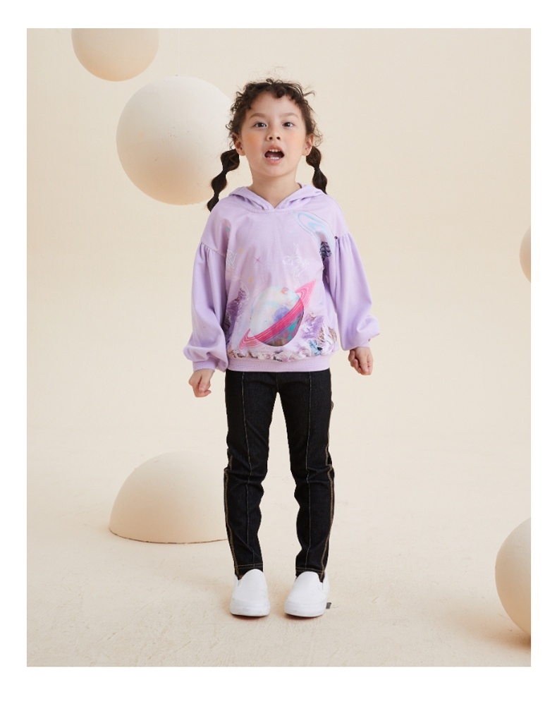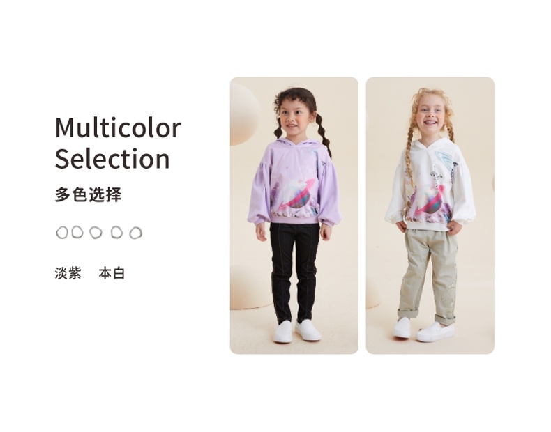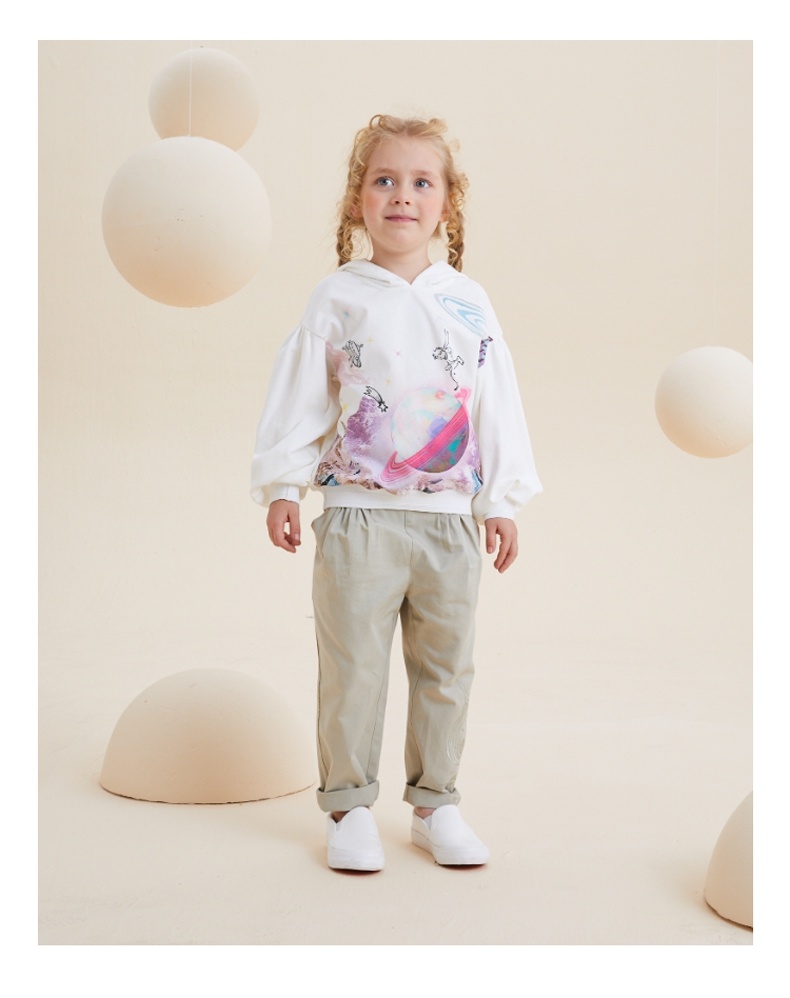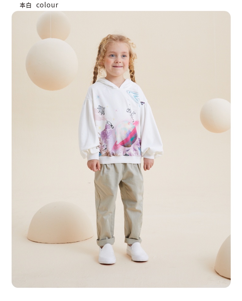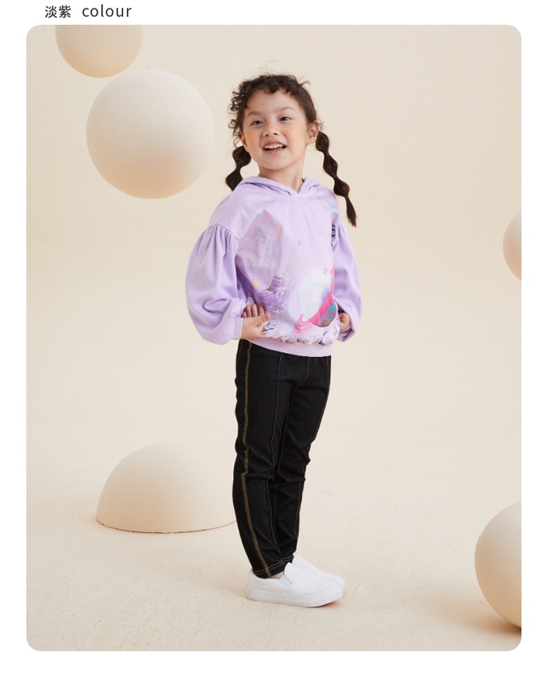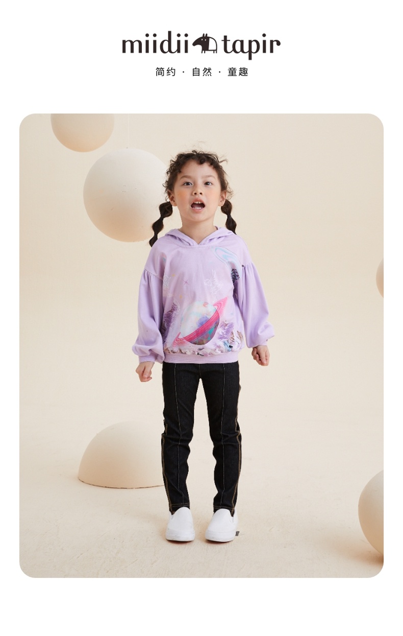 谜底童装H型中款T恤舒适连帽卫衣落肩泡泡袖可爱上衣213KT2257