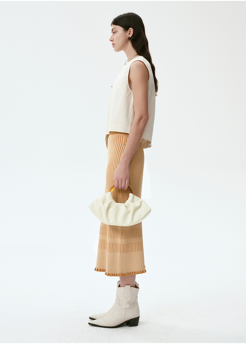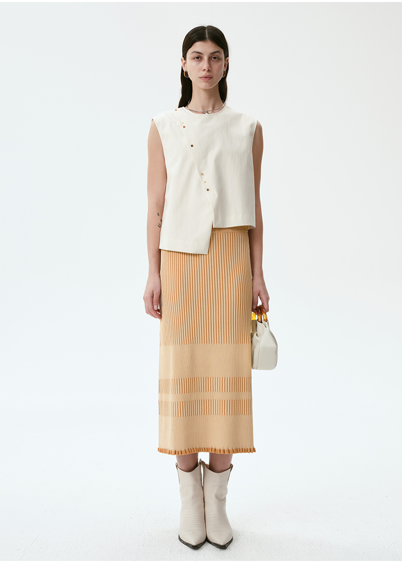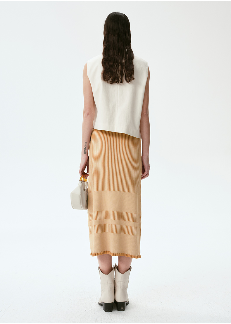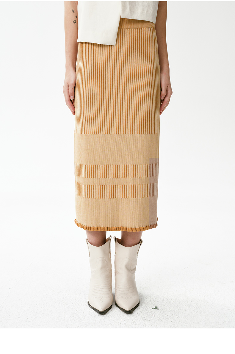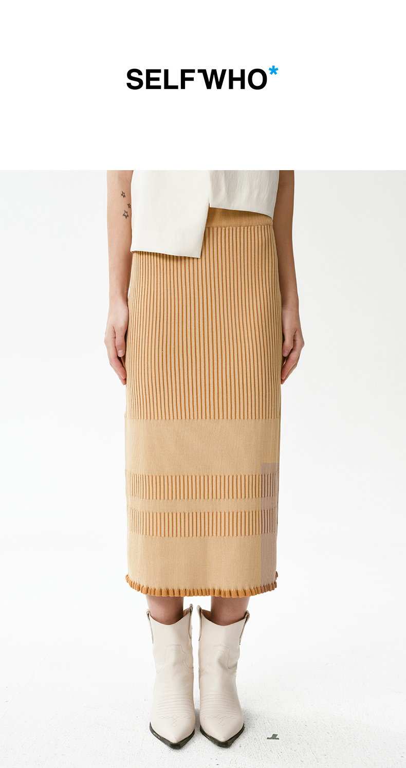 Self Who咖色条纹针织半身裙女2024春新款宽松直筒休闲设计感裙子
