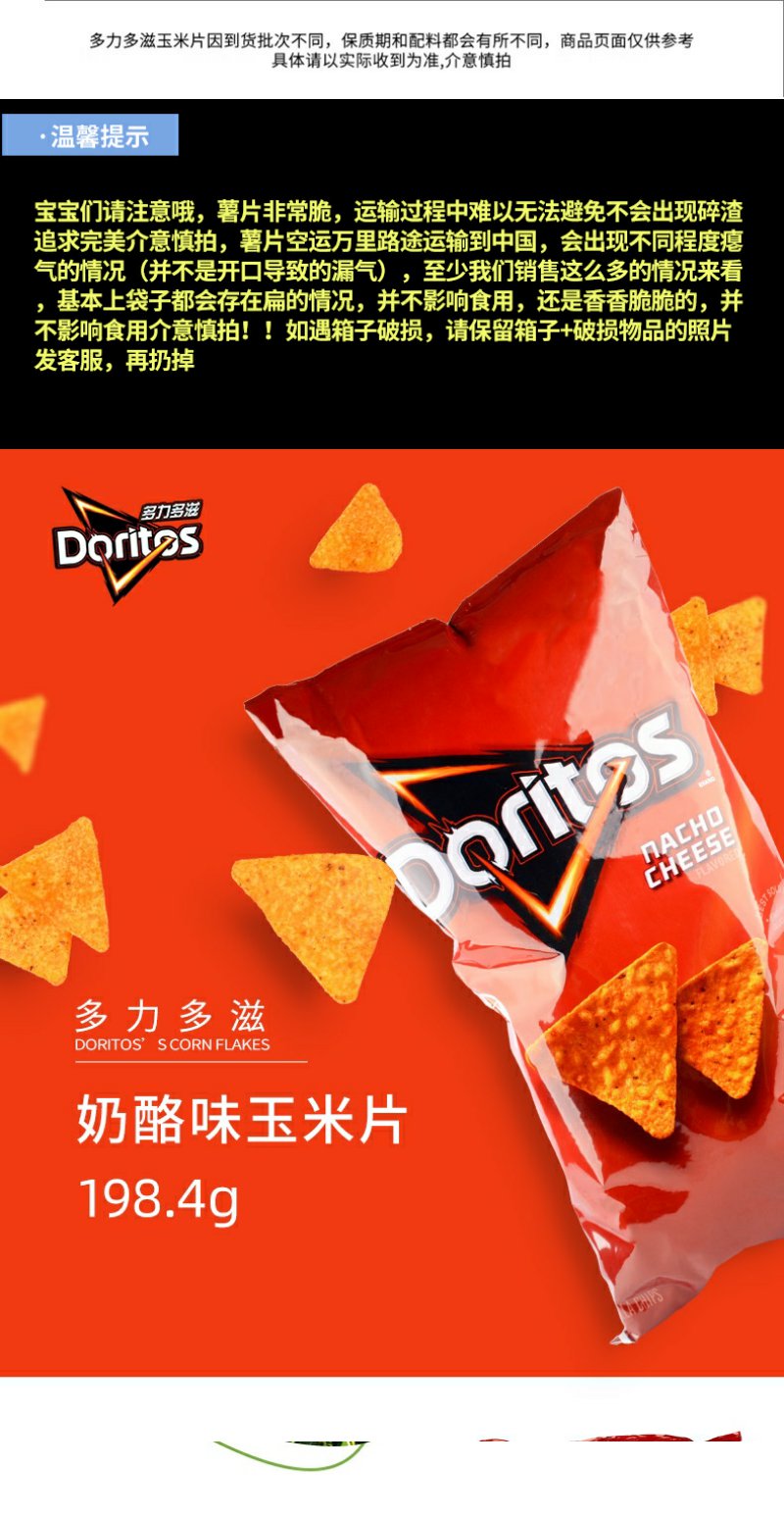 多力多滋(Doritos) 玉米片 奶酪味玉米片家庭装 453.6g