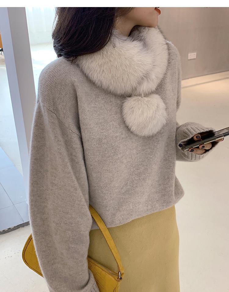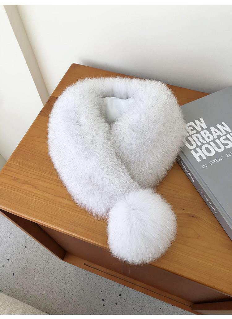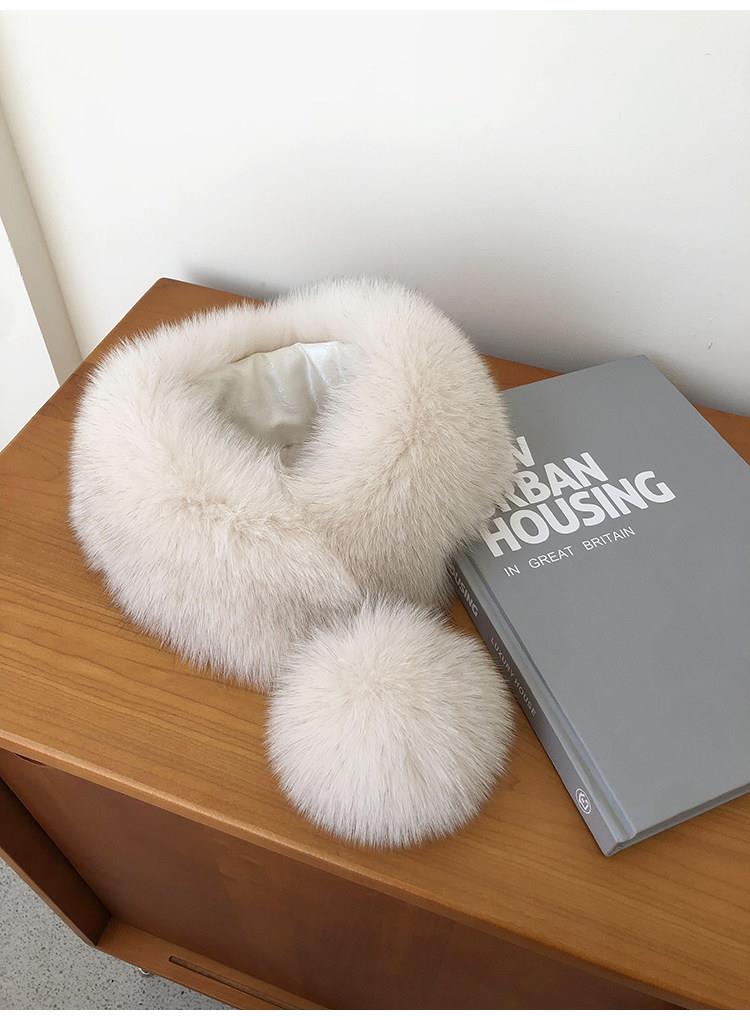 【日系狐狸毛围巾皮草围脖】女士真毛毛球球可爱保暖围脖新品