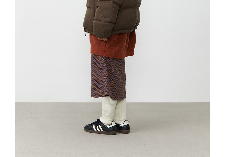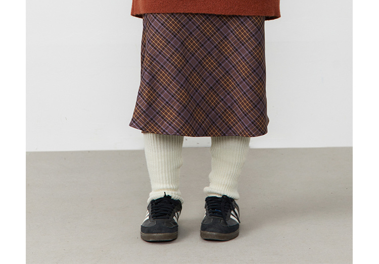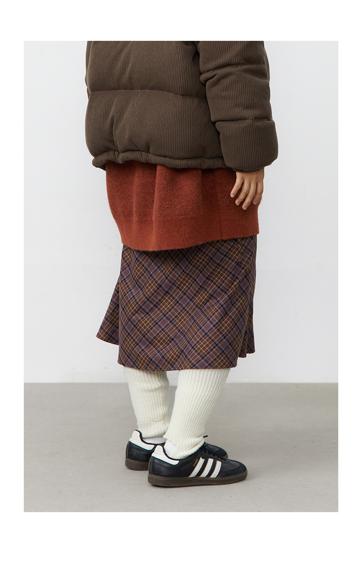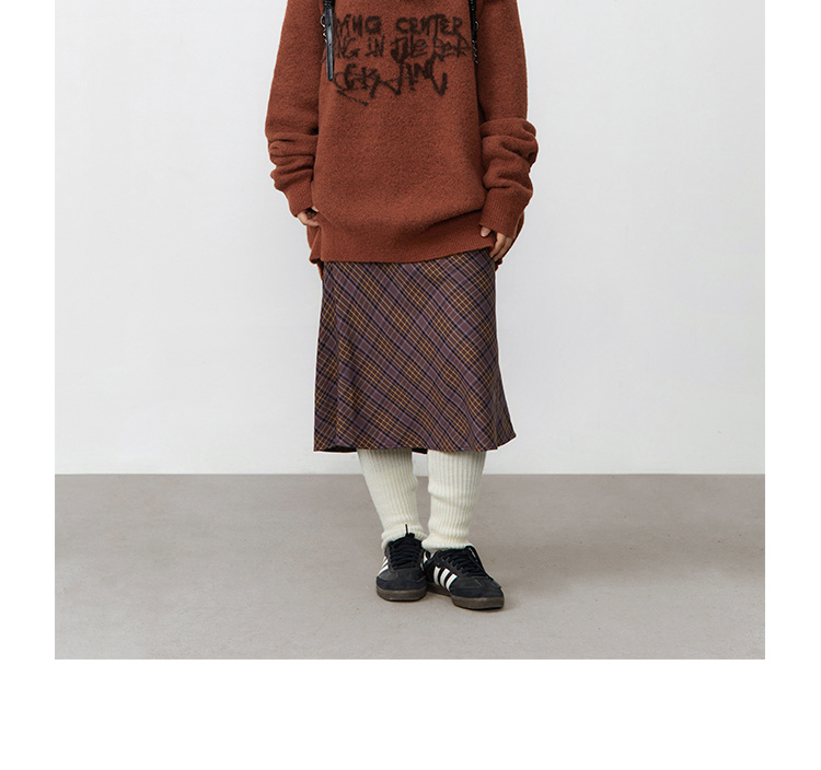 紫棕色斜纹格子复古鱼尾半身裙腰头可抽绳