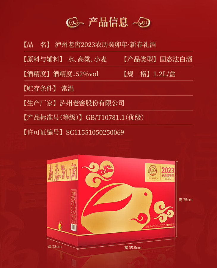 【清仓】泸州老窖 2023 兔年生肖酒 浓香型 52度 1.2L