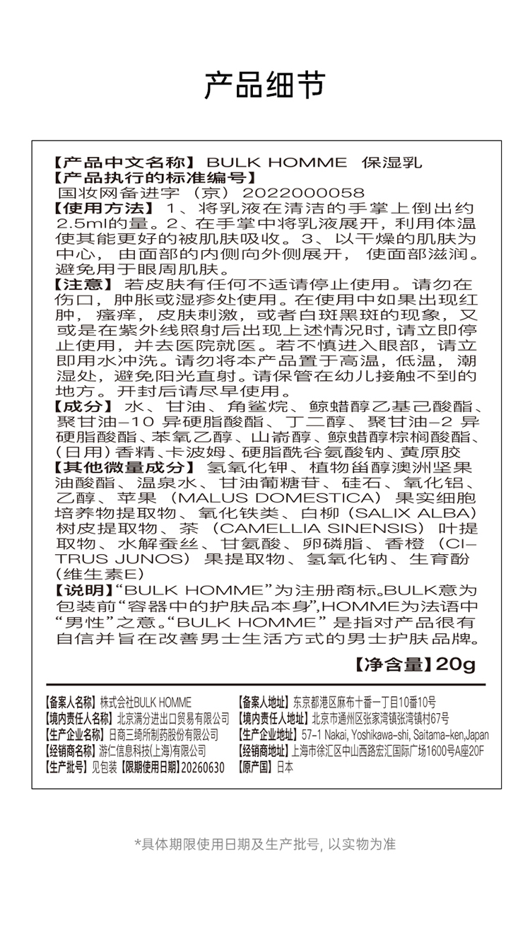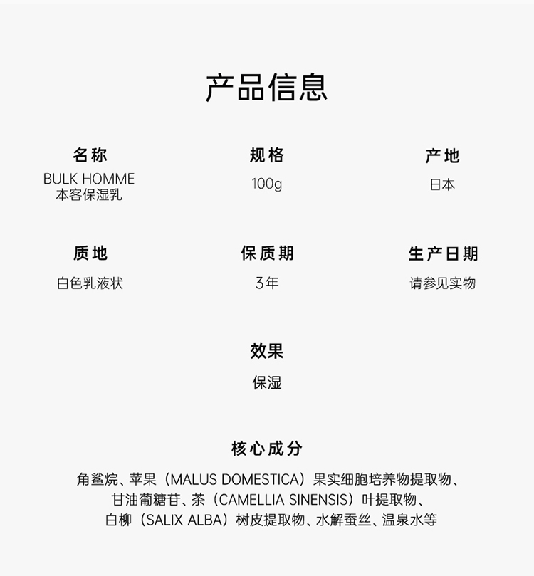 Bul khomme 本客 男士乳液 100g