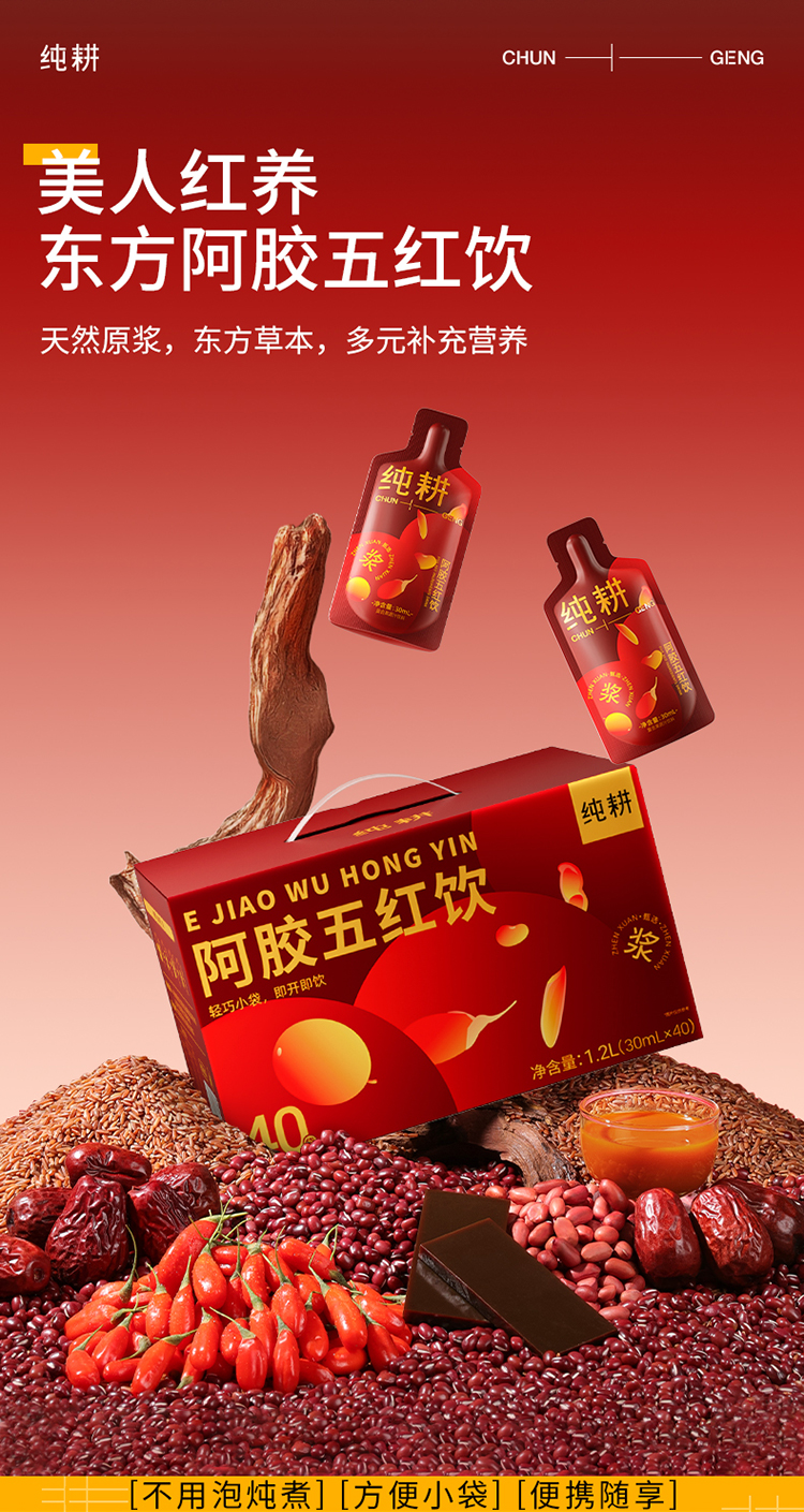 严选 | 杞里香纯耕阿胶五红饮 30ml*40袋/箱 天然原浆 东方草本 多元补充营养