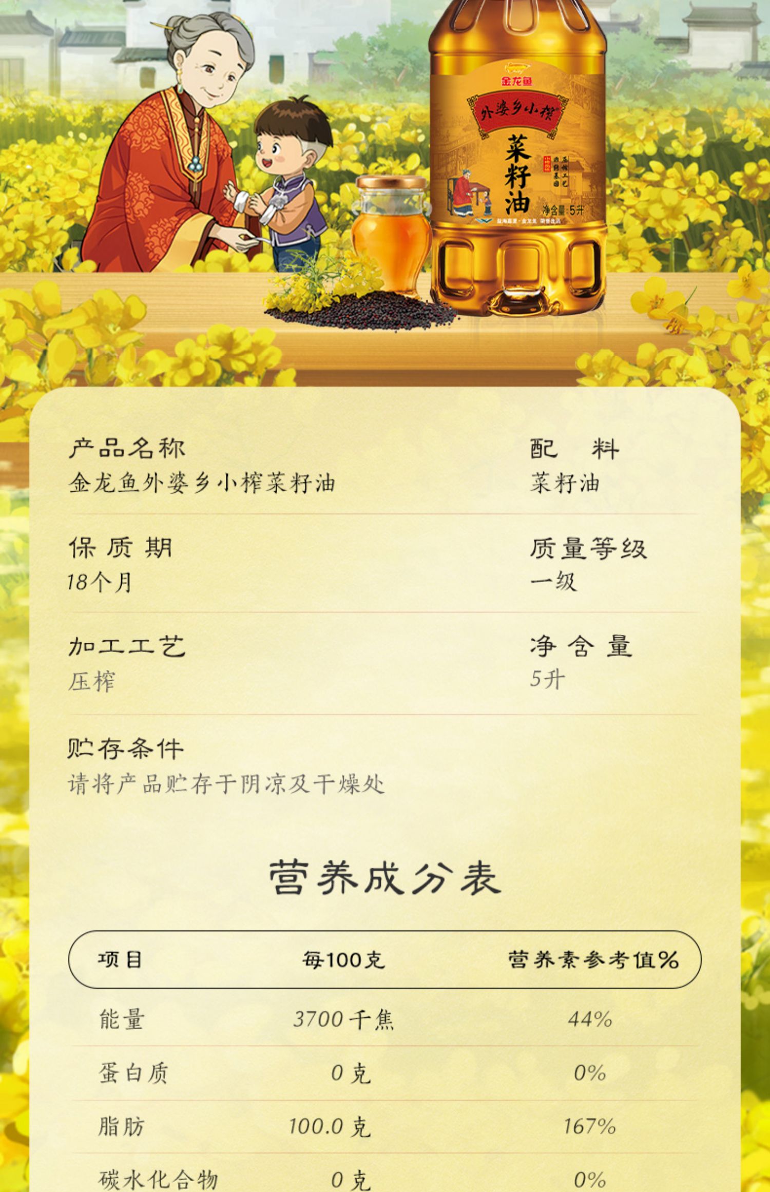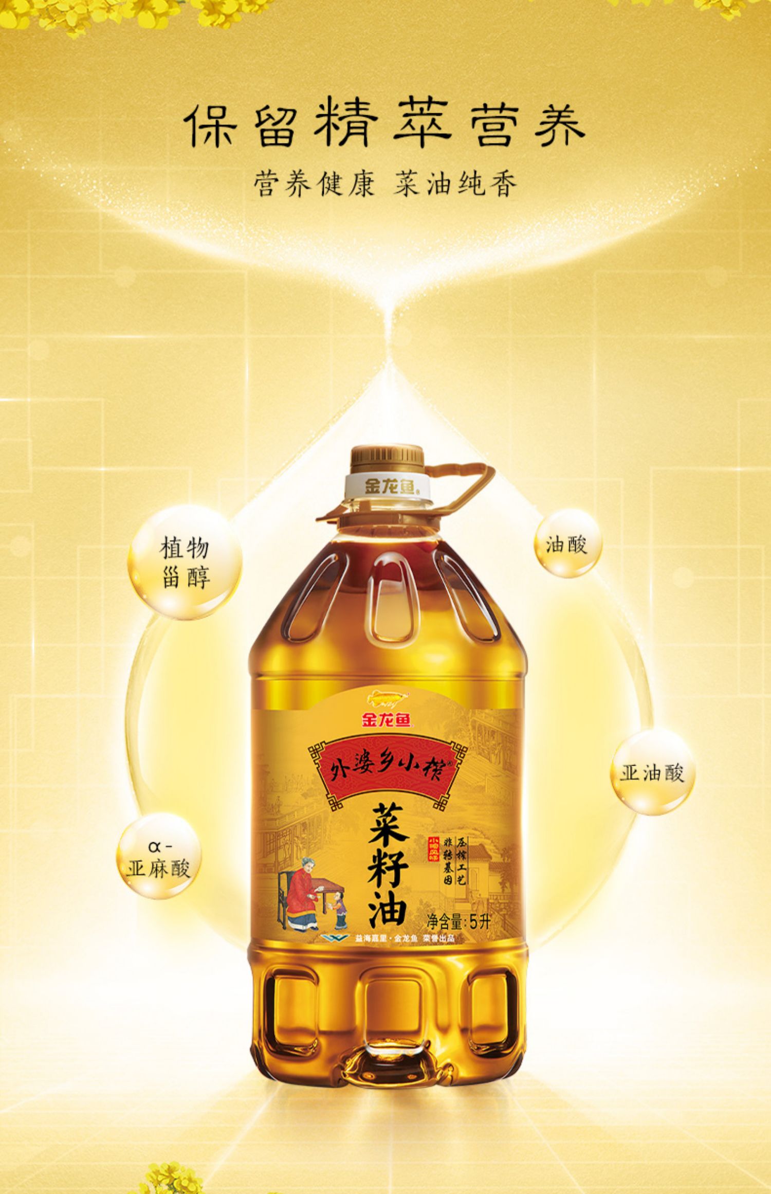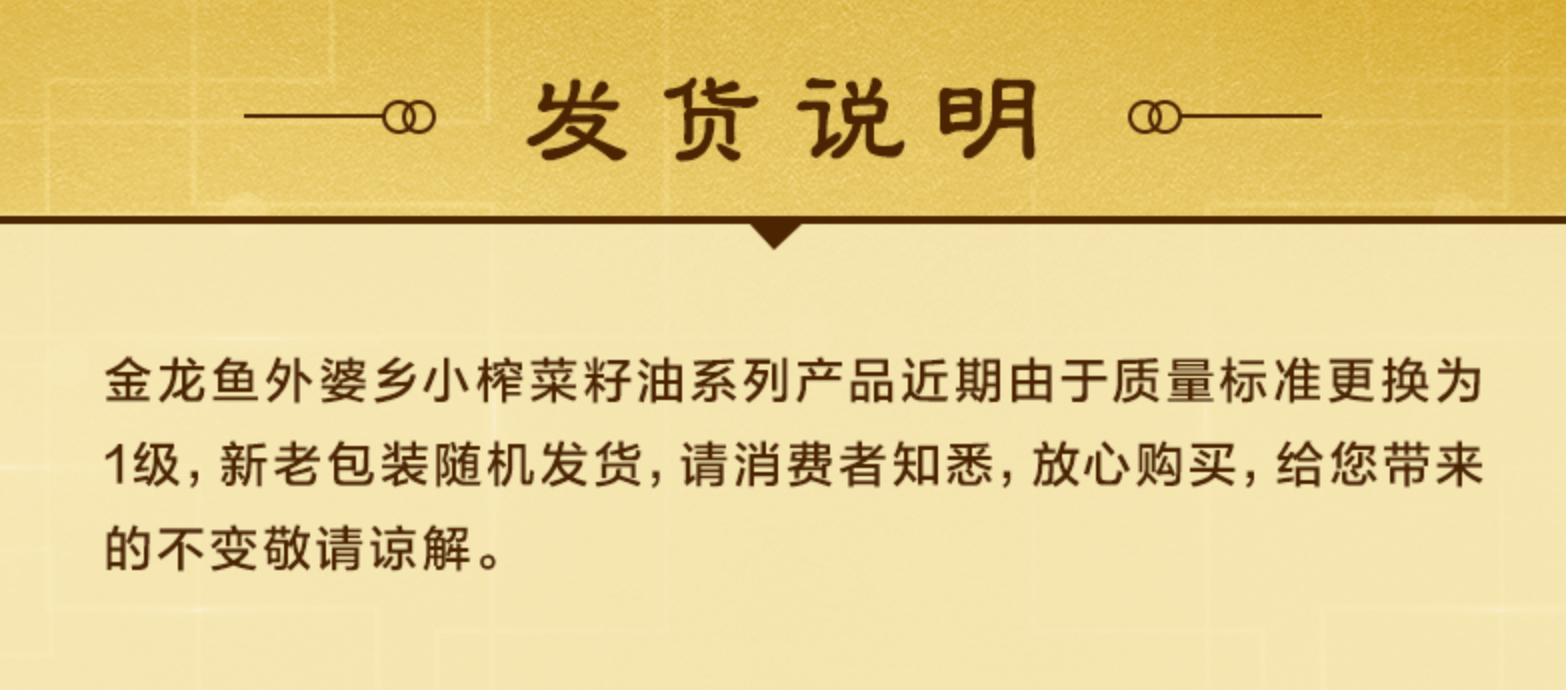 金龙鱼外婆乡小榨菜籽油5L非转(新老包装随机发货)