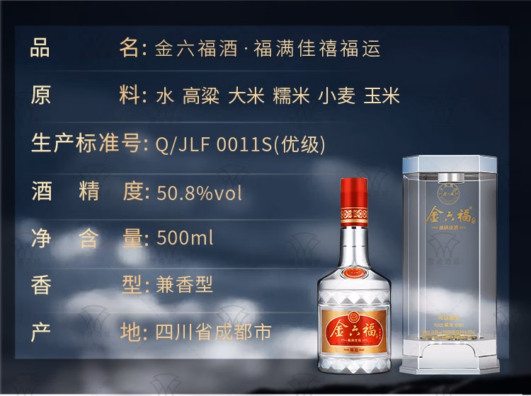 【光瓶 无盒】金六福 福运 兼香型 50.8度 500m*6