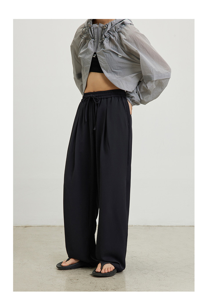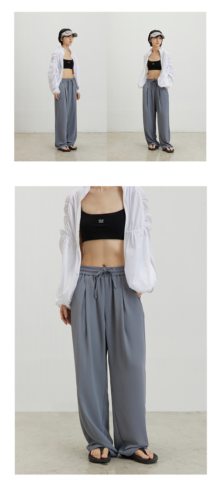 CryingCenter冰丝裤子男女夏季凉感防晒薄款抽绳宽松直筒垂感西裤