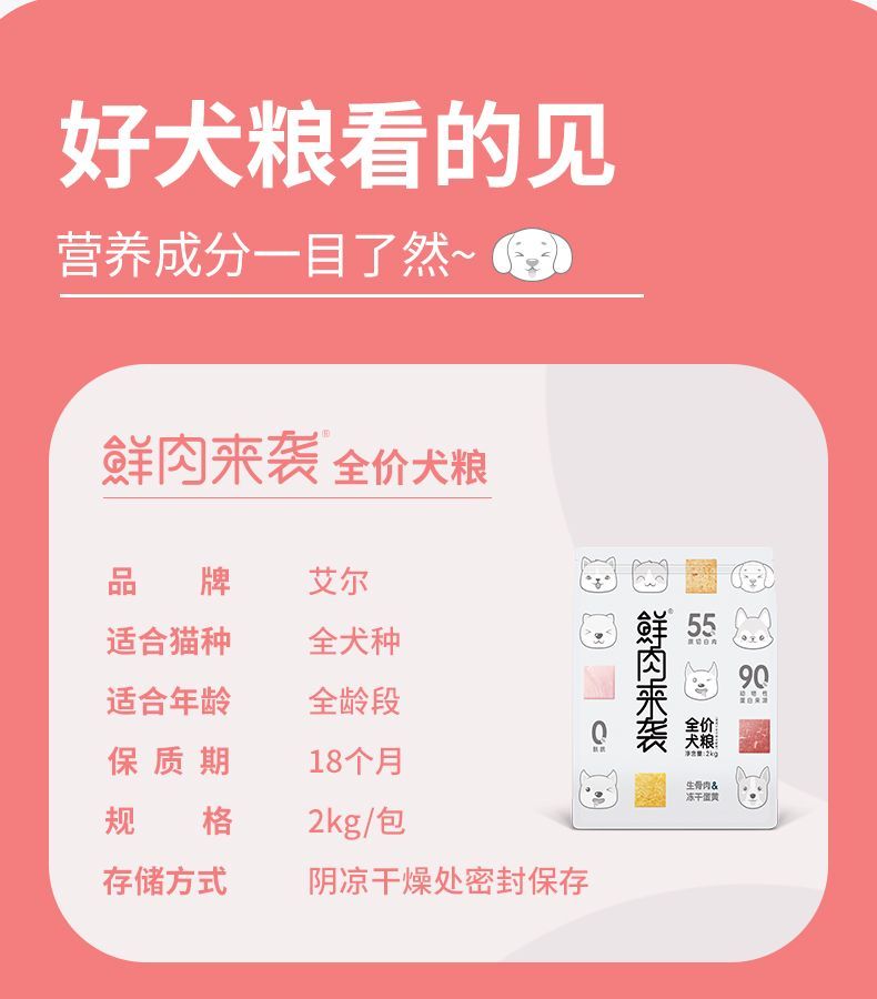 艾尔鲜肉来袭狗粮2kg 蛋黄冻干生骨肉双拼狗粮 鸭鸡肉成幼犬粮4斤