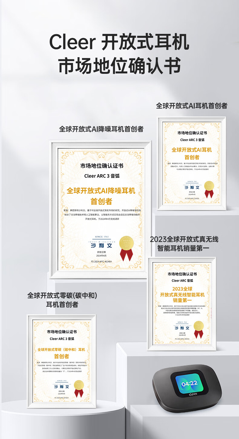 cleerARC3降噪版不入耳开放式耳机金榜挂耳式AI智能蓝牙运动耳机礼物适配华为苹果