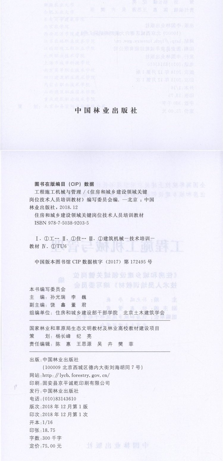 工程施工机械与管理 9203 全国高等院校土建类应用型规划教材 住房和城乡建设领域关键岗位技术人员培训教材 中国林业出版社