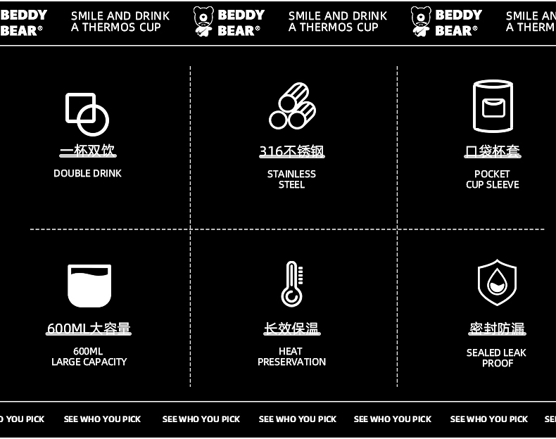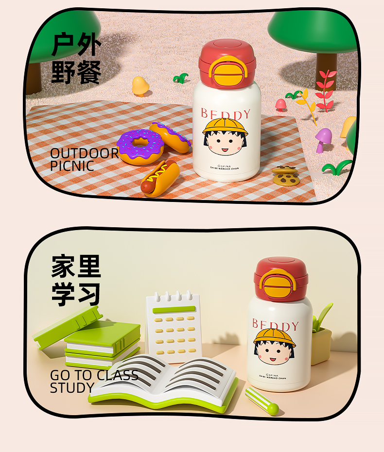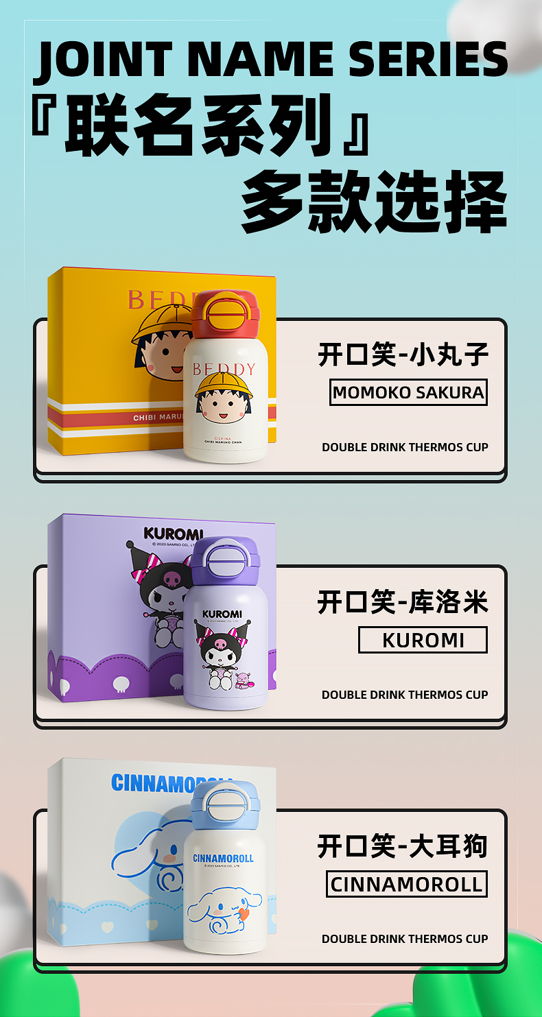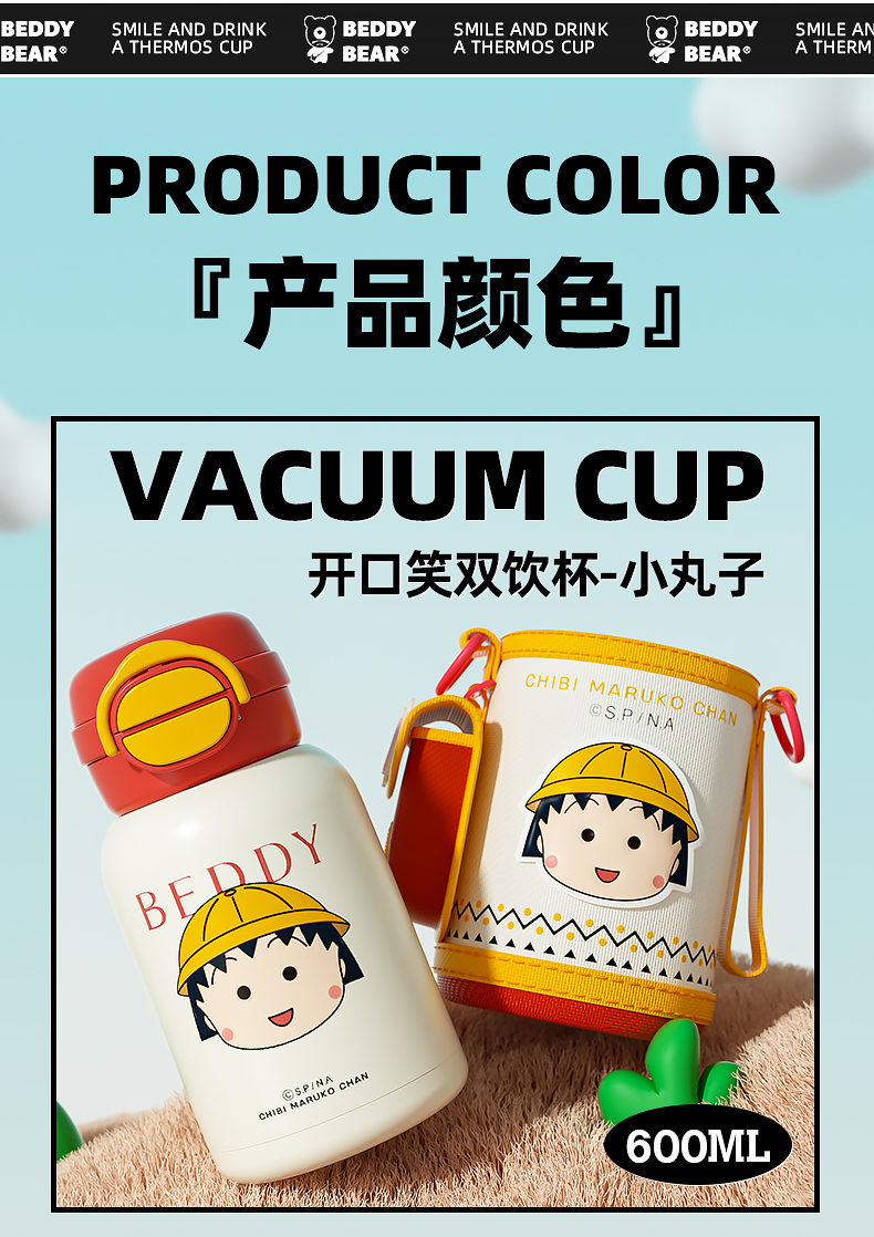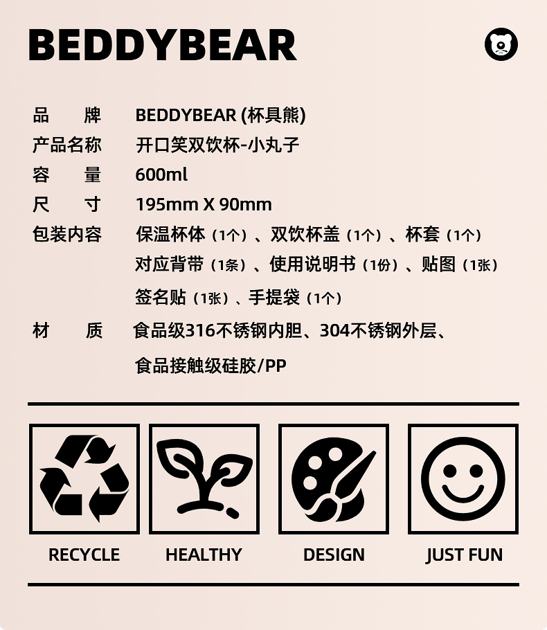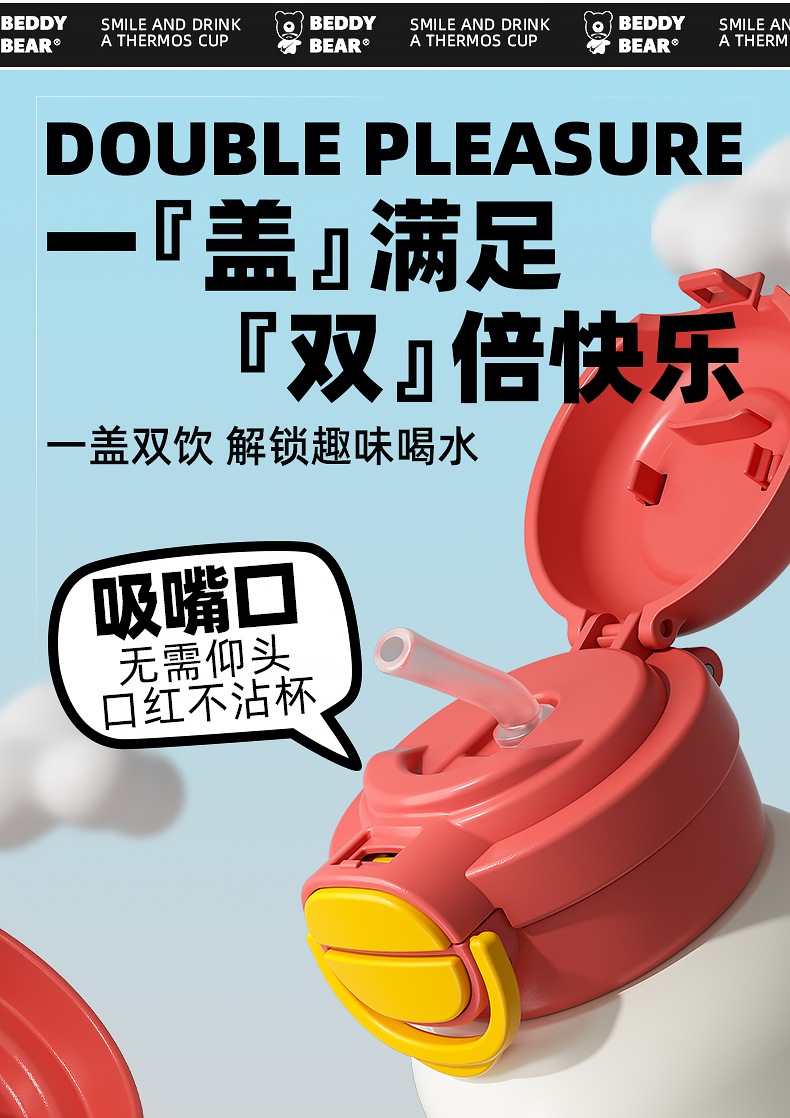 韩国杯具熊(BEDDYBEAR)开口笑双饮保温杯316不锈钢可爱学生高颜值水壶杯子双饮吸管儿童水杯600ml