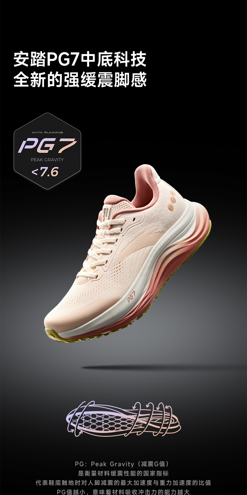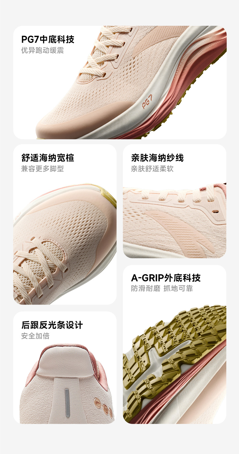 安踏旅步V2丨 PG7缓震轻便女子跑鞋冬季新款通勤运动鞋122615546