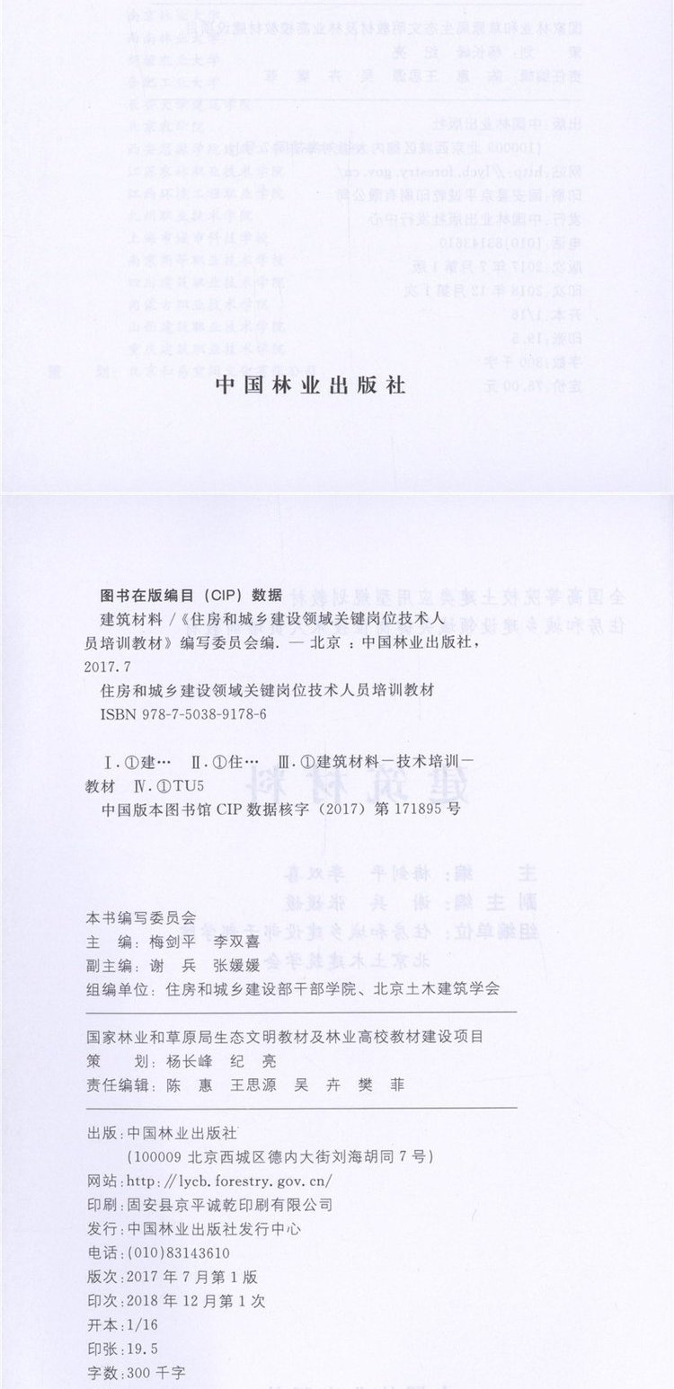 建筑材料 9178 住房和城乡建设领域关键岗位技术人员培训教材 全国高等院校土建类应用型规划教材 中国林业出版社 正版畅销书