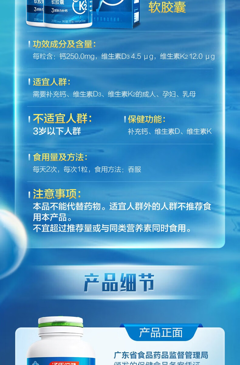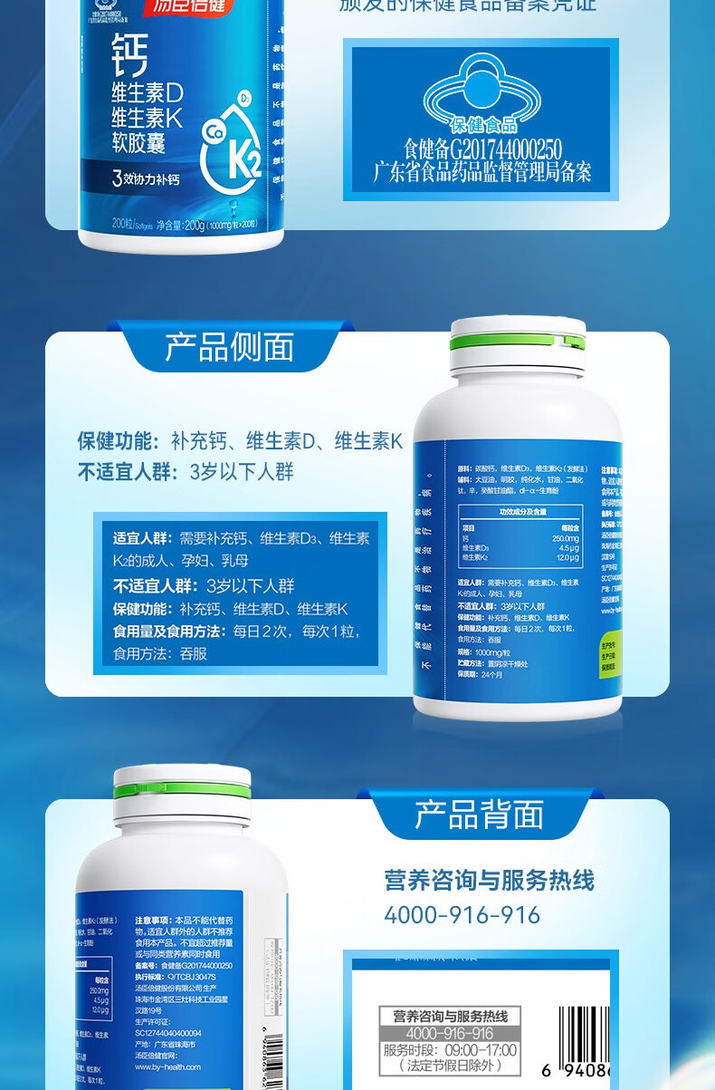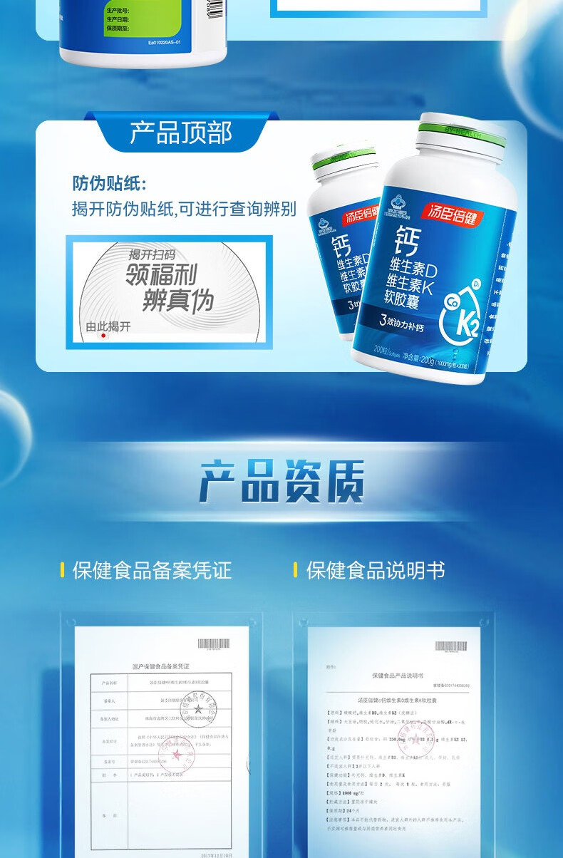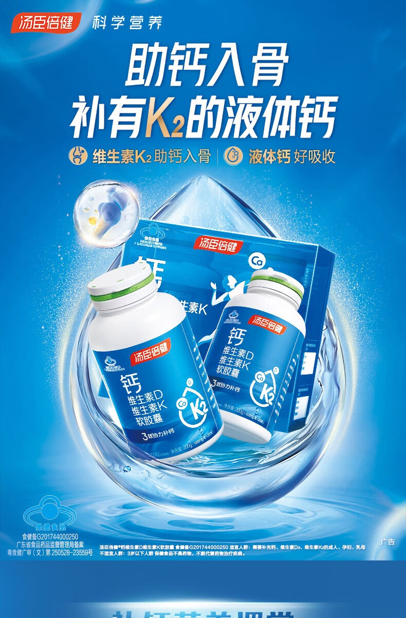 汤臣倍健钙维生素D维生素K软胶囊(200粒×2)促销装-A