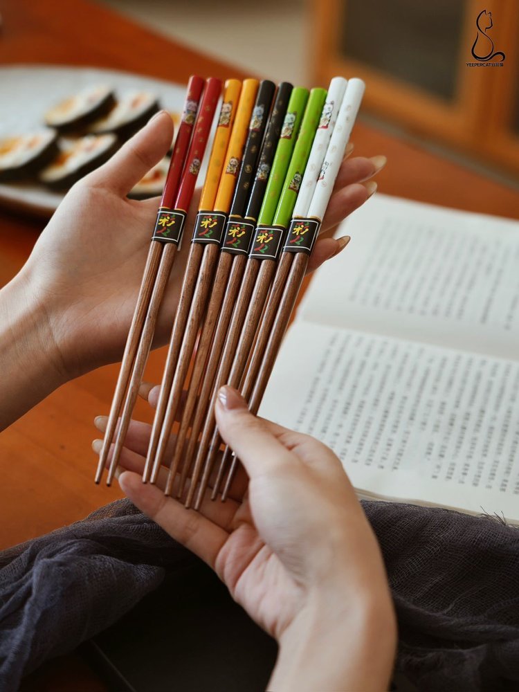 比羽毛还轻盈的筷子「YEEPERCAT 日式筷子亅每一双筷子的末端都有原创的图案❗️