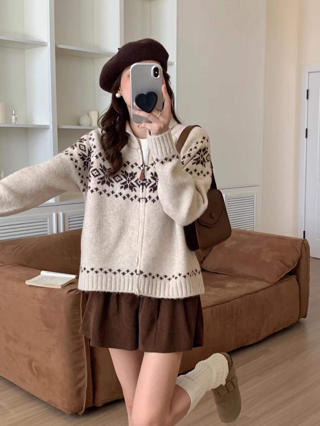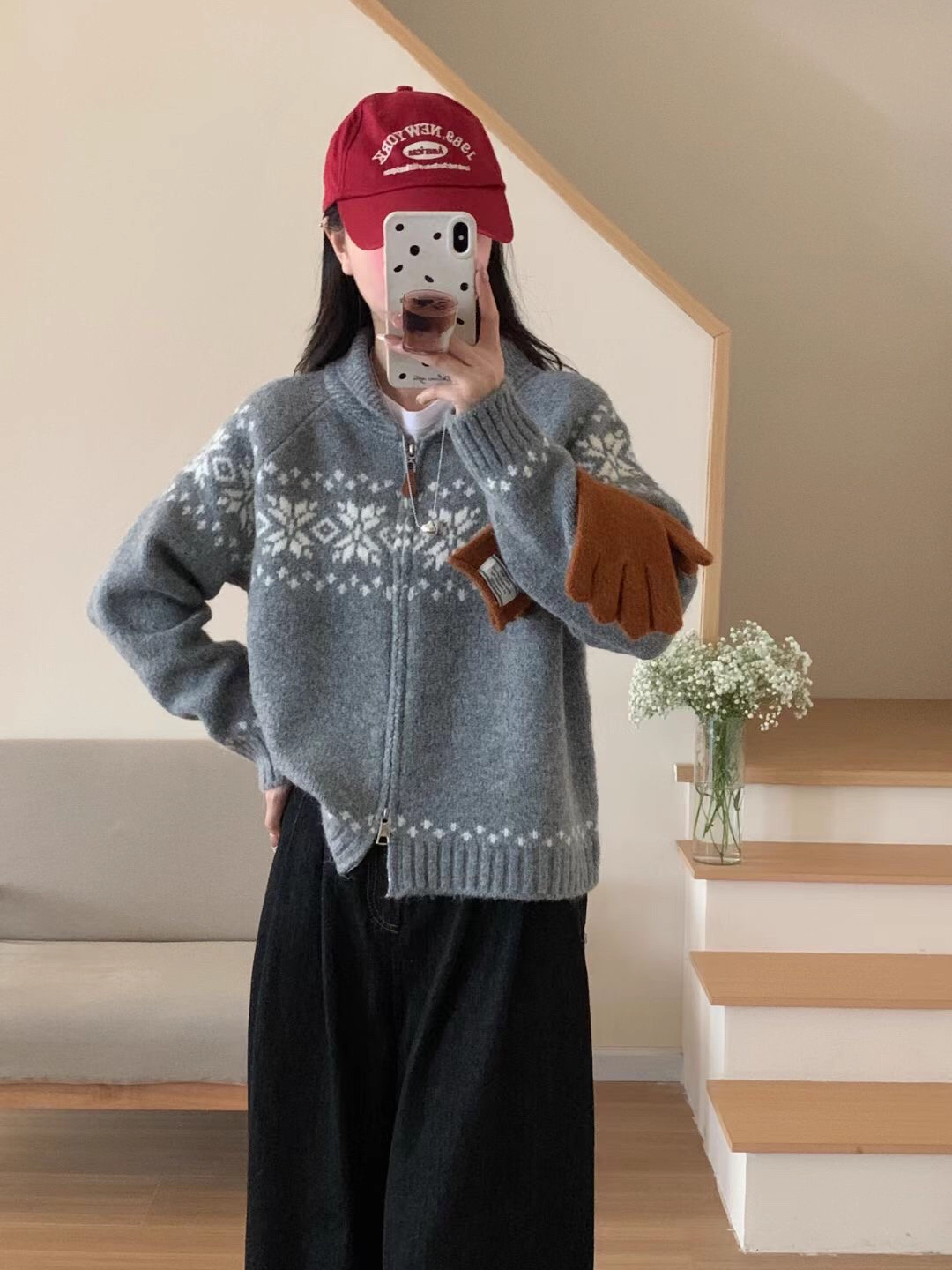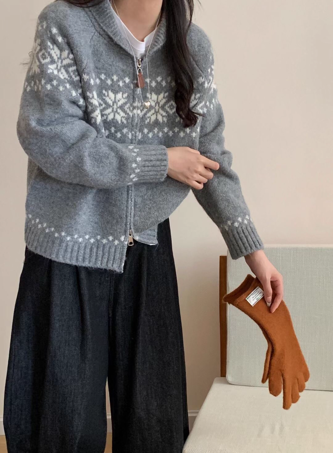 费尔岛小翻领双拉链毛衣外套N1320:78.0%聚酯纤维 11.8%锦纶 9.4%绵羊毛 0.8%氨纶