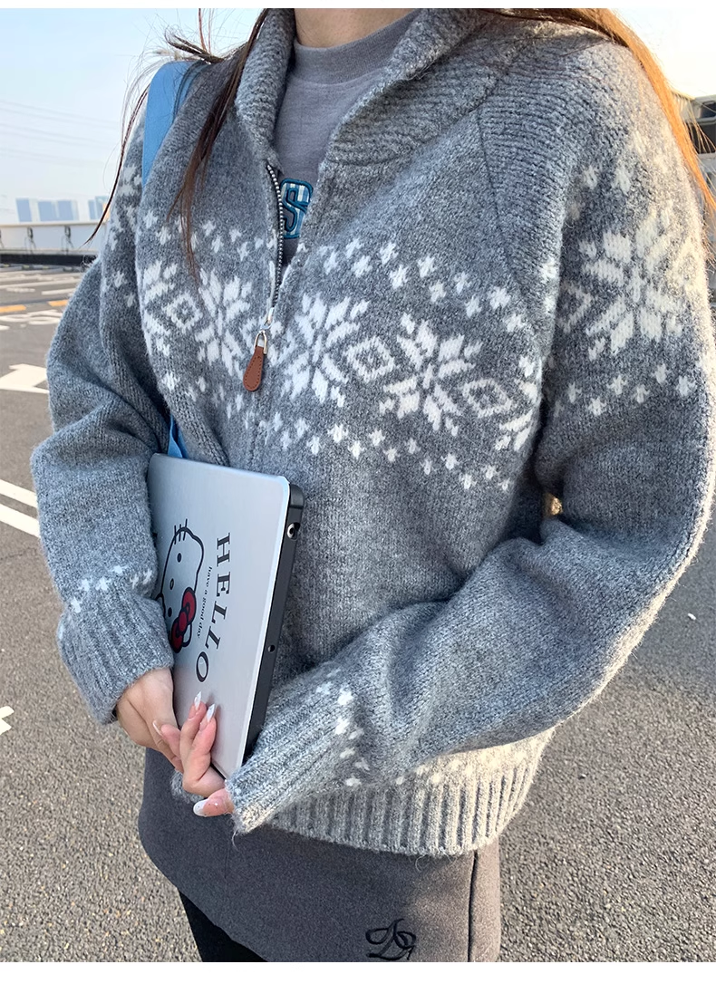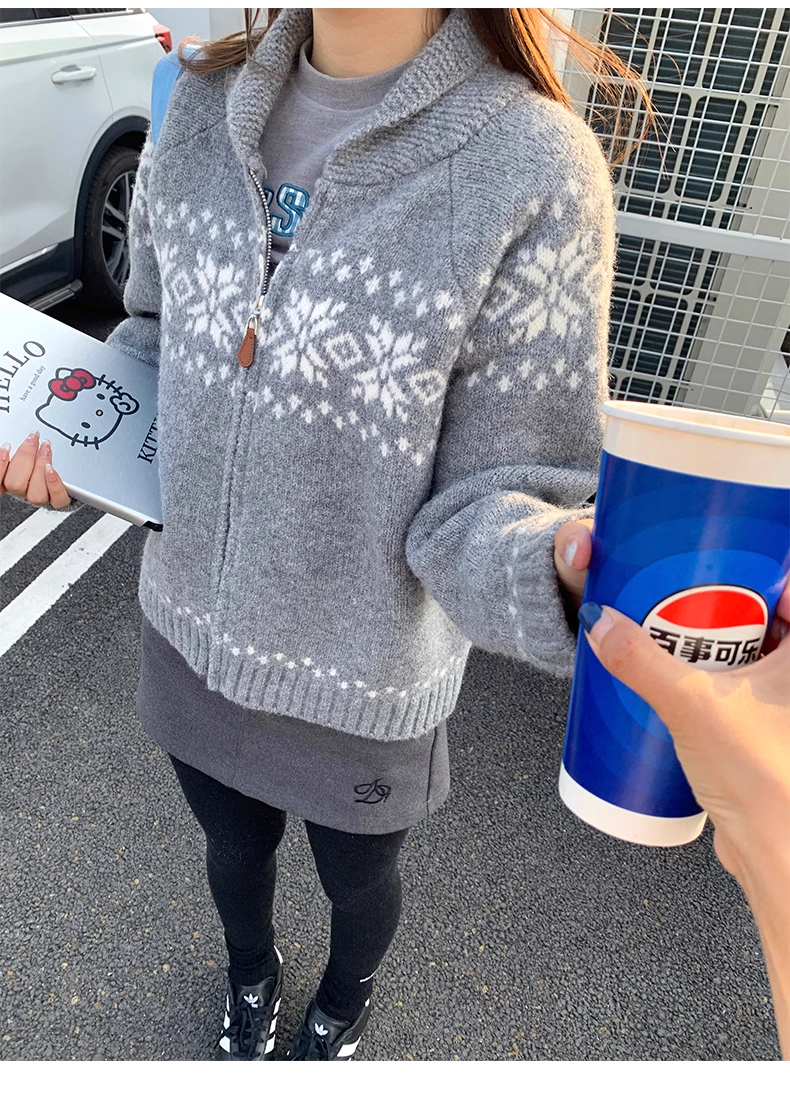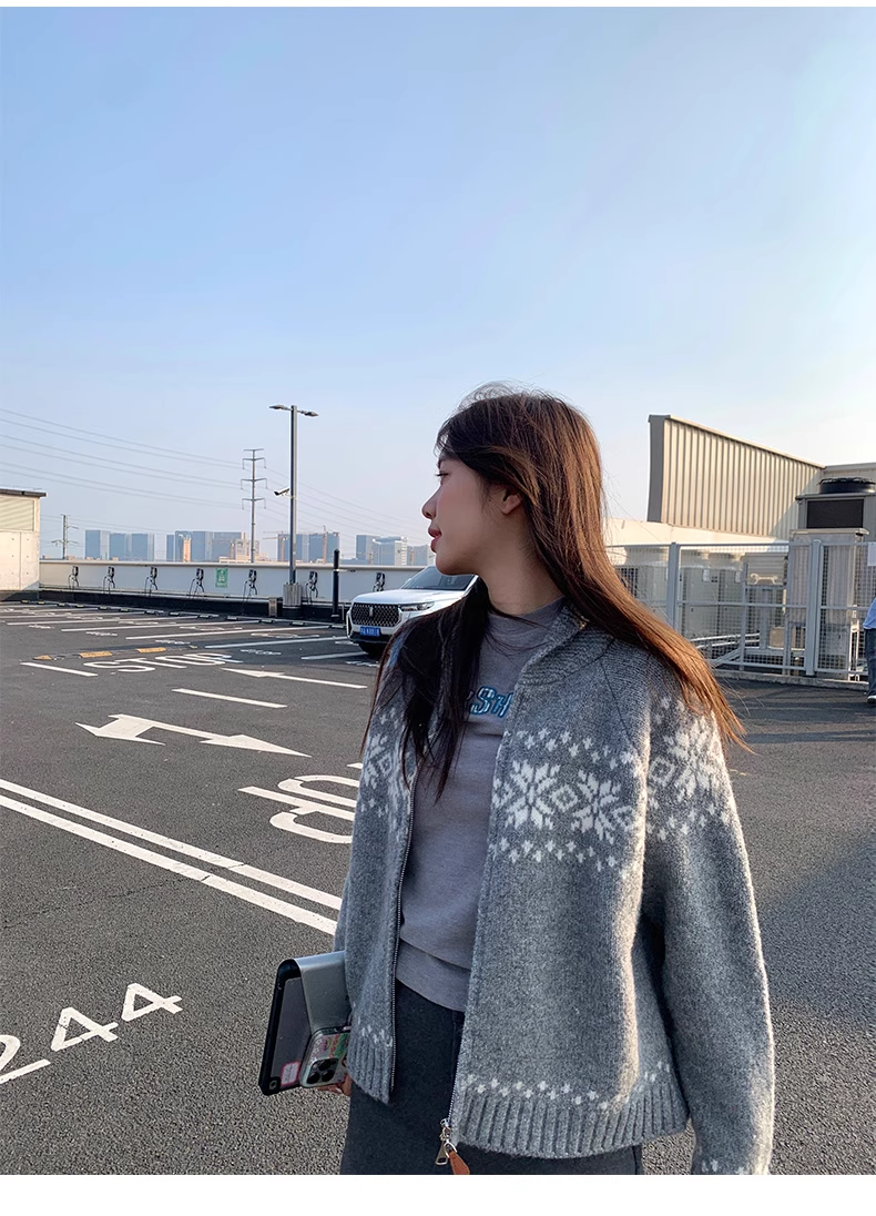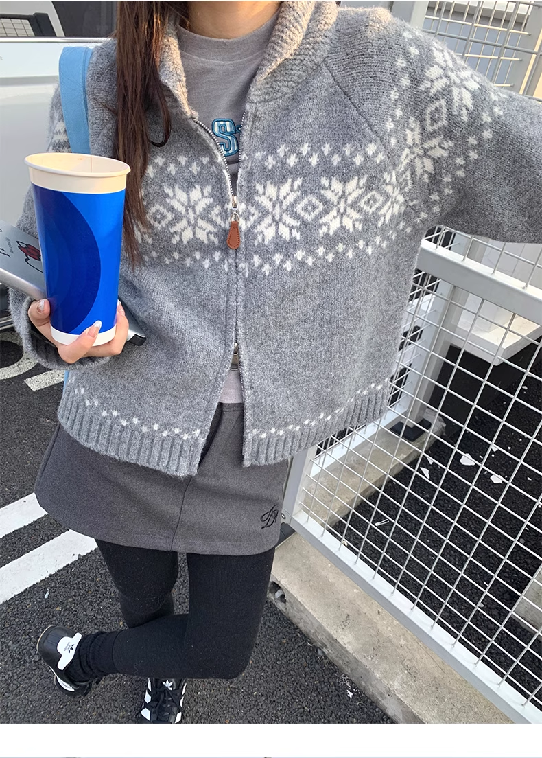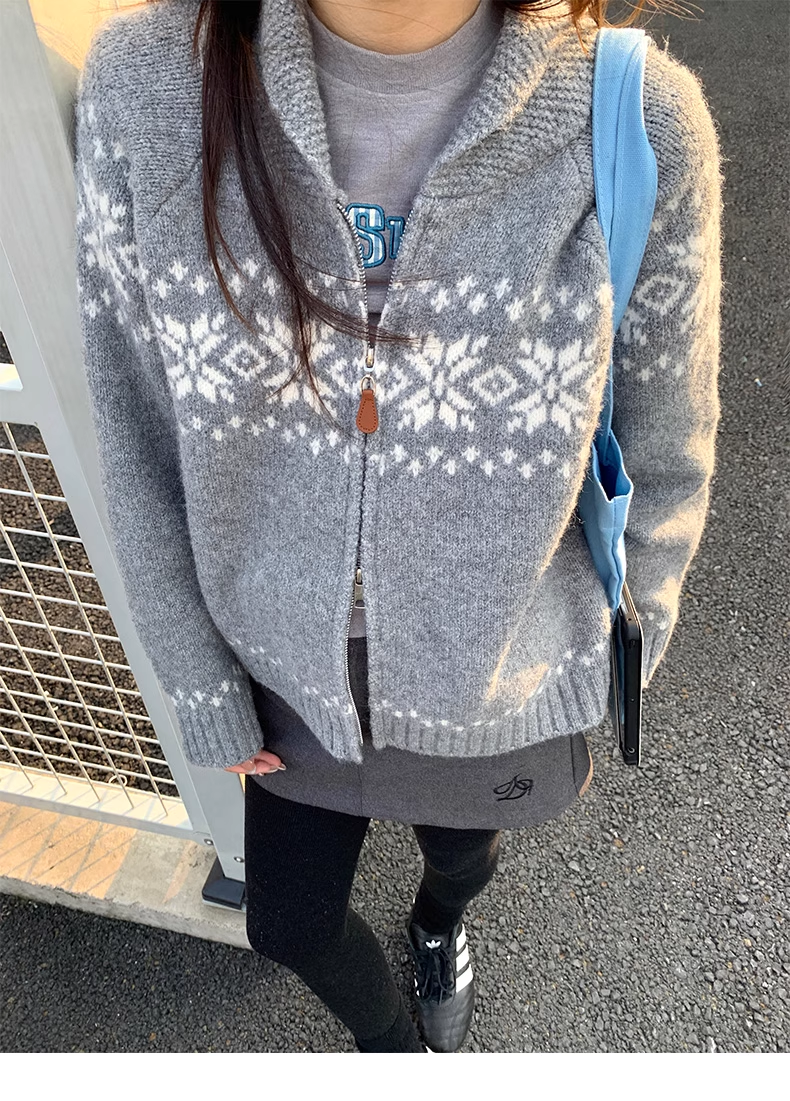 费尔岛小翻领双拉链毛衣外套N1320:78.0%聚酯纤维 11.8%锦纶 9.4%绵羊毛 0.8%氨纶