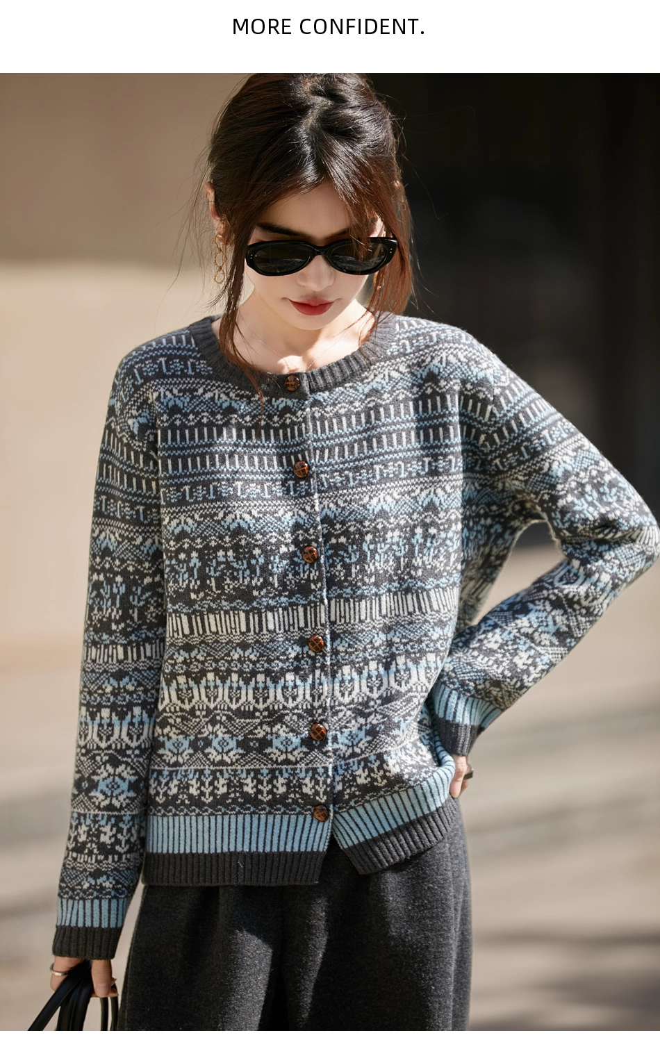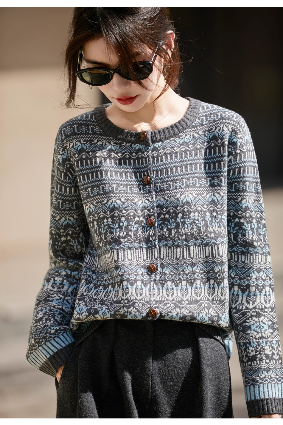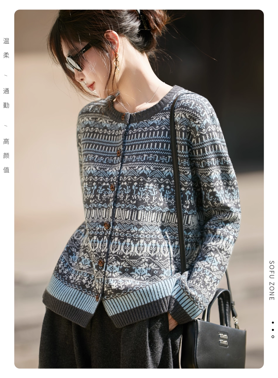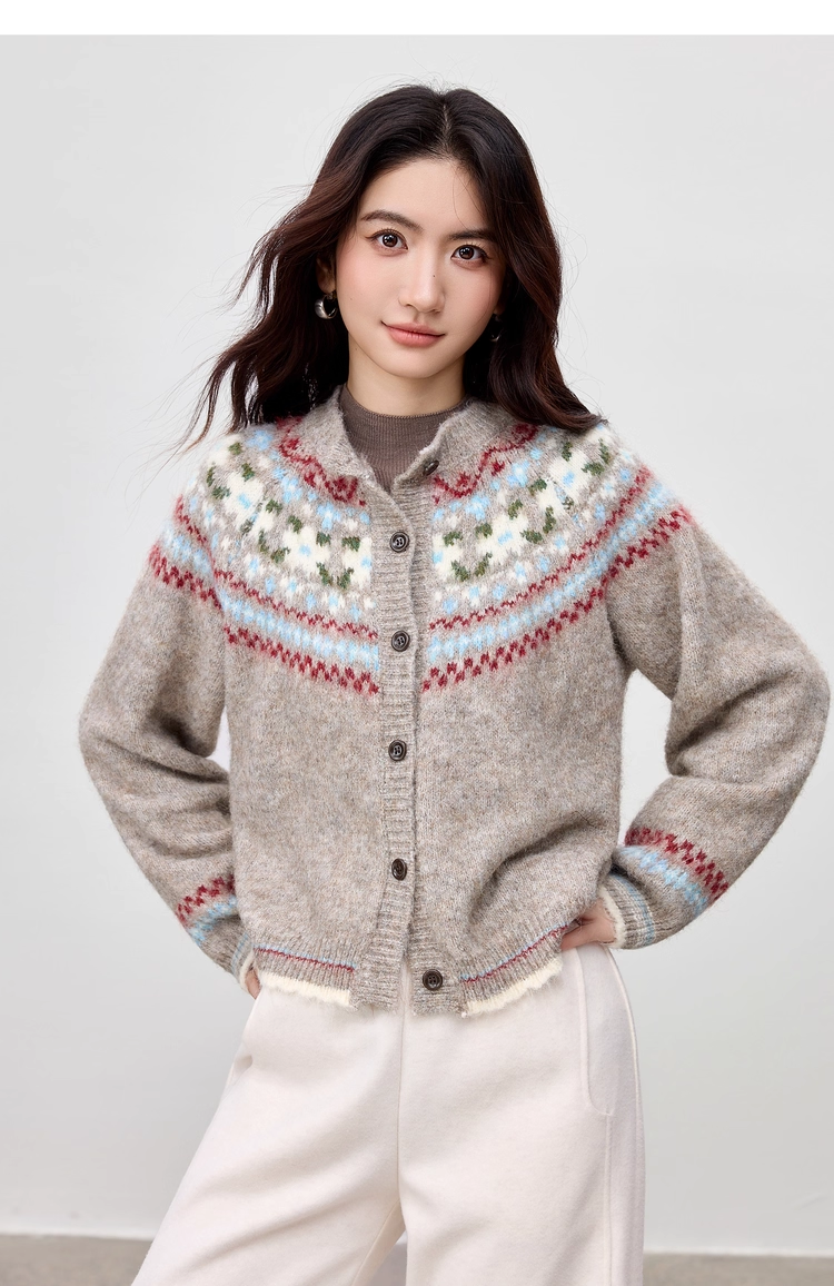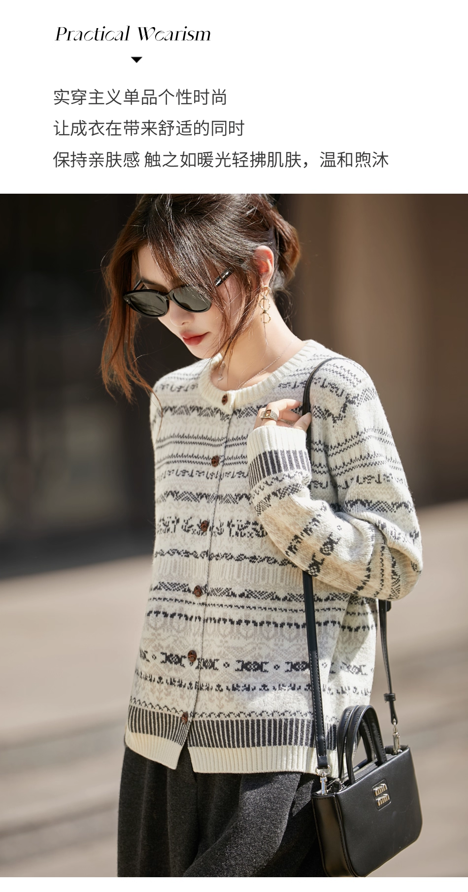 费尔岛风柔软复古毛衣开衫N1286:38.0%聚酯纤维 ,36.0%腈纶,26.0%锦纶