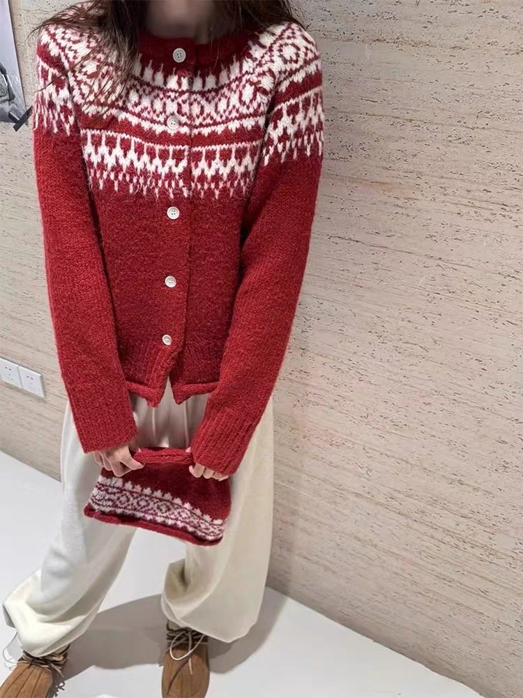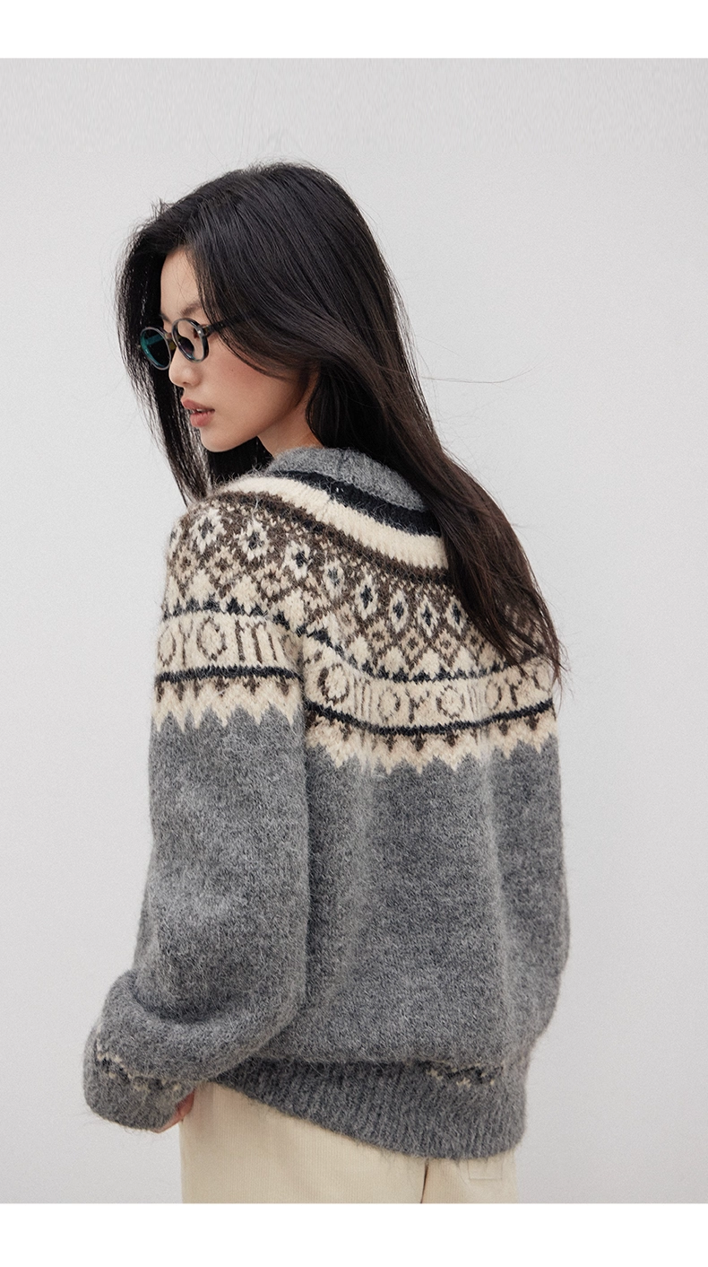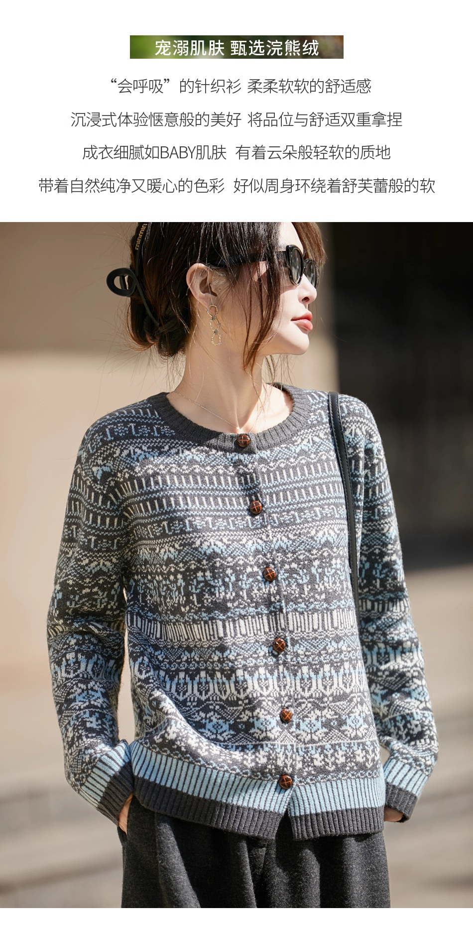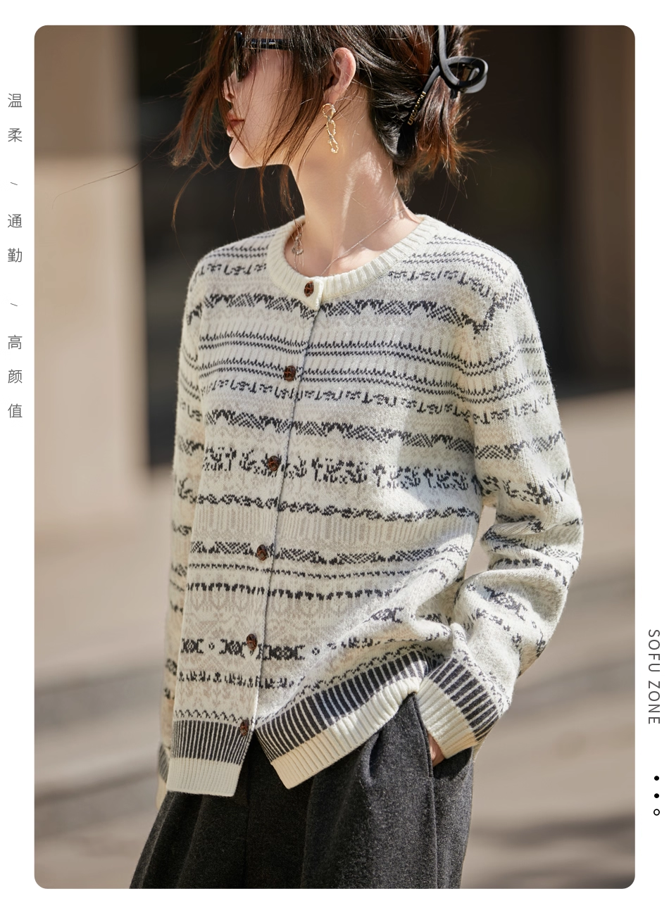 费尔岛风柔软复古毛衣开衫N1286:38.0%聚酯纤维 ,36.0%腈纶,26.0%锦纶