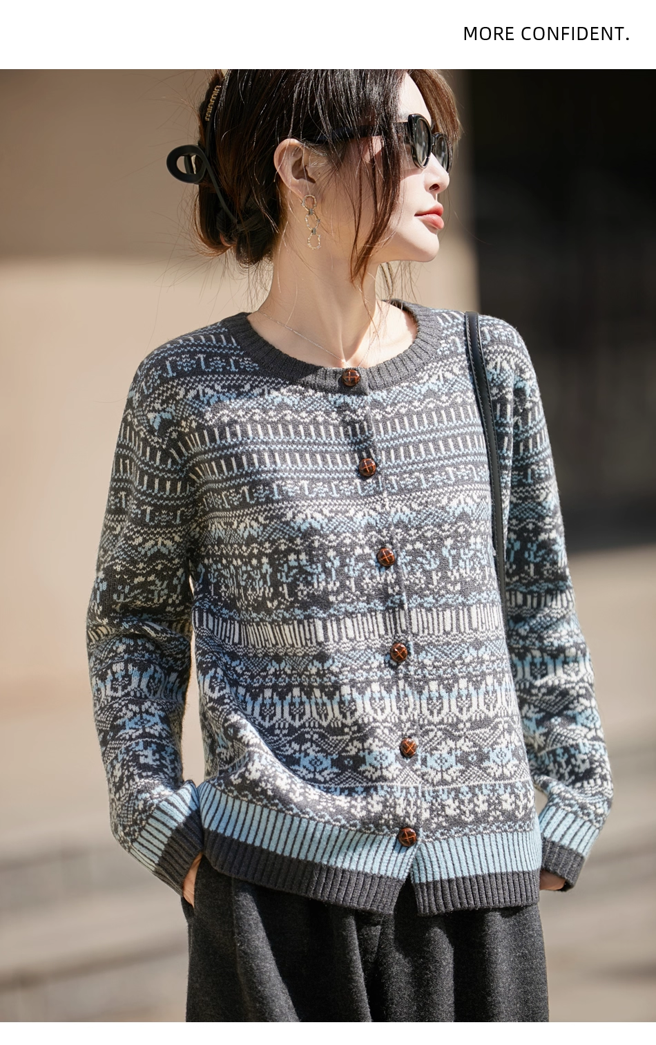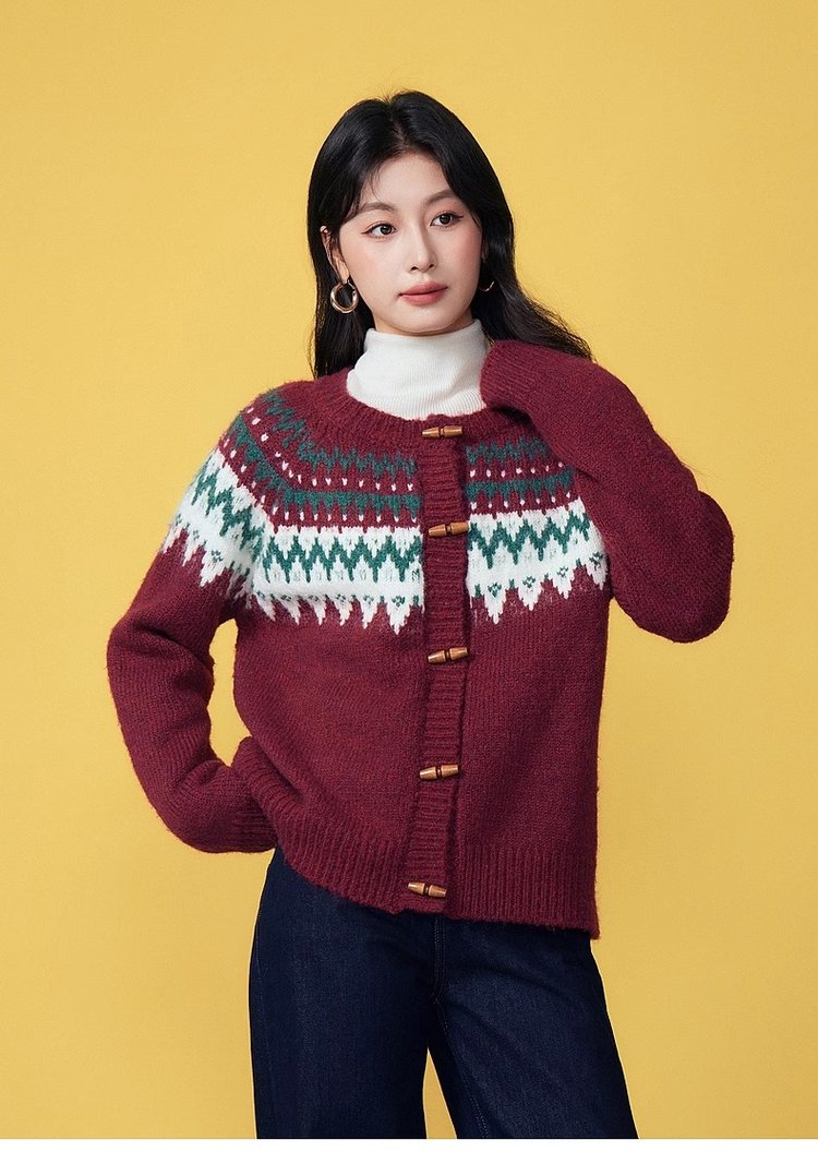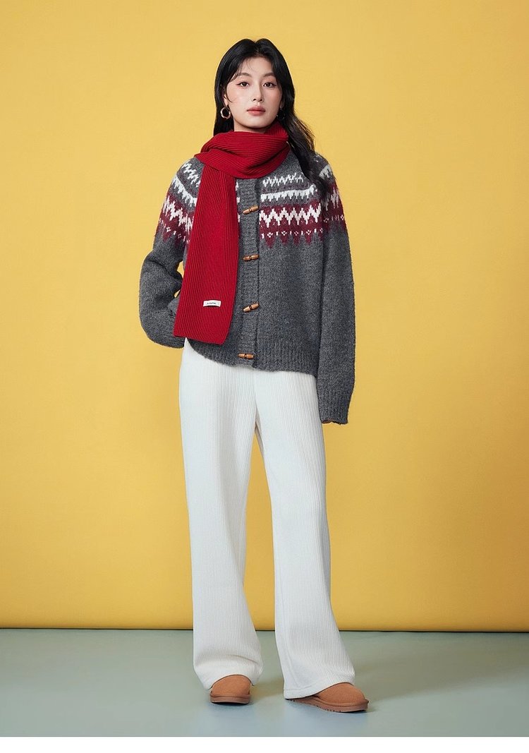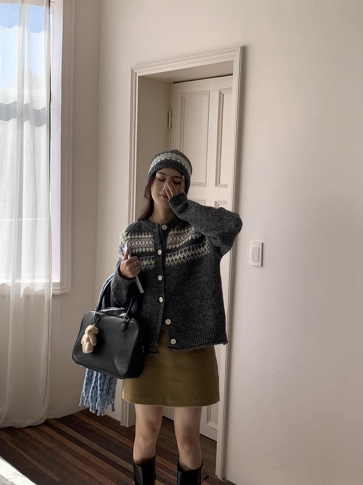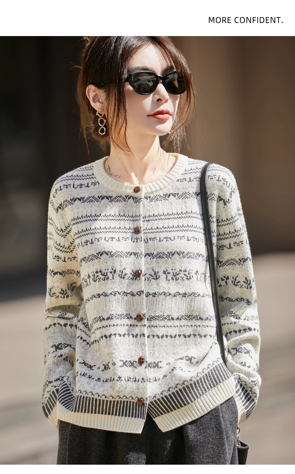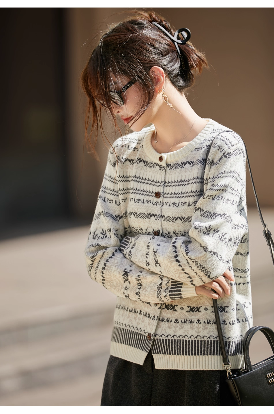 费尔岛风柔软复古毛衣开衫N1286:38.0%聚酯纤维 ,36.0%腈纶,26.0%锦纶