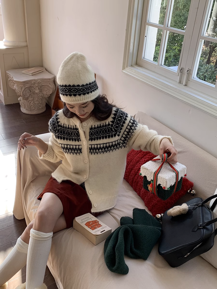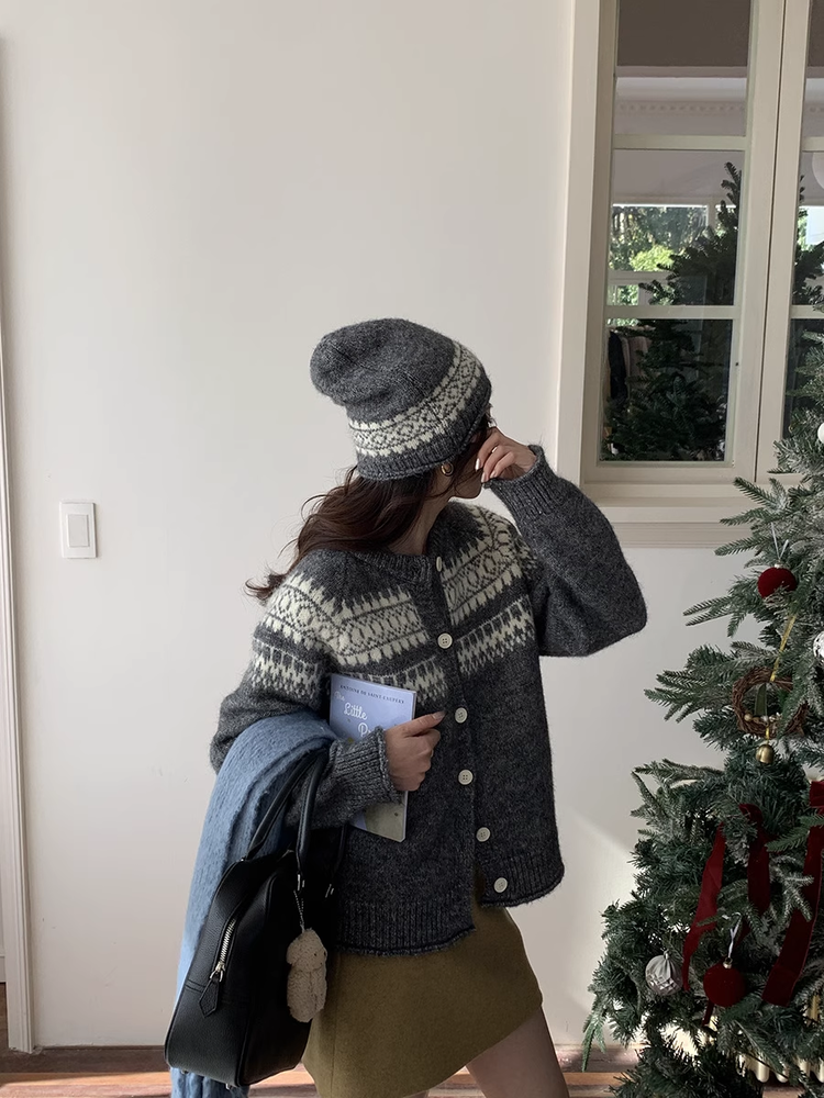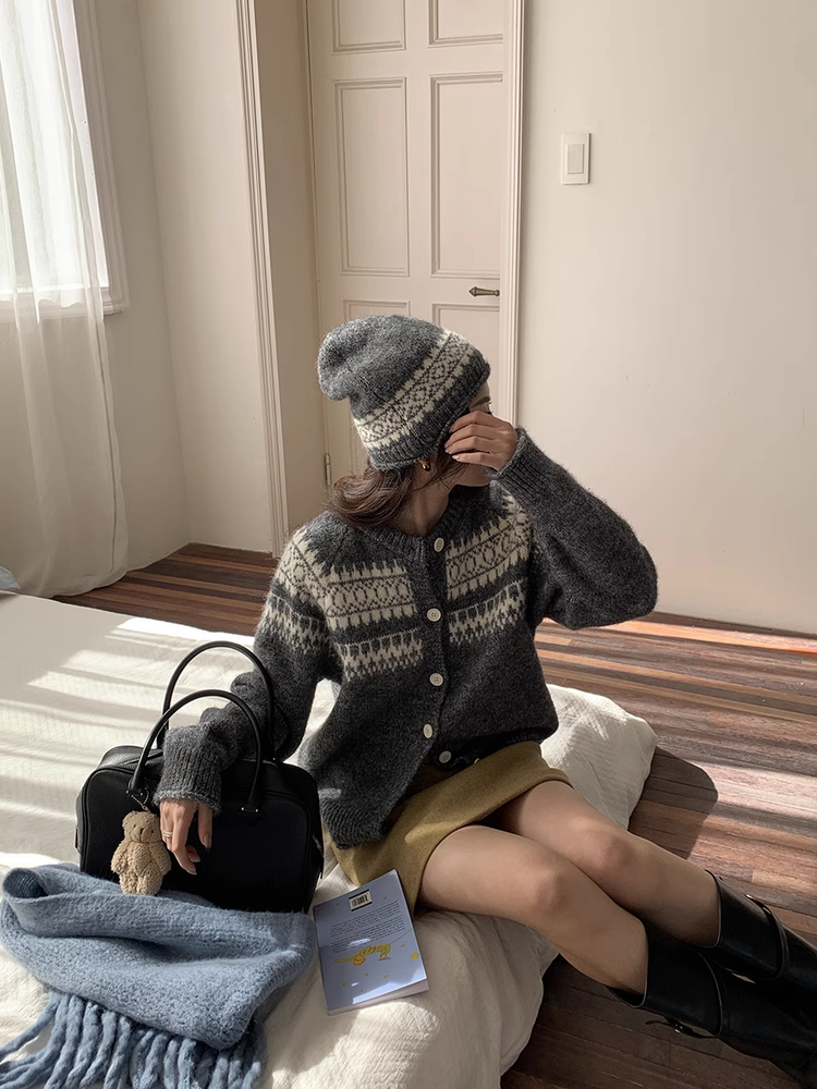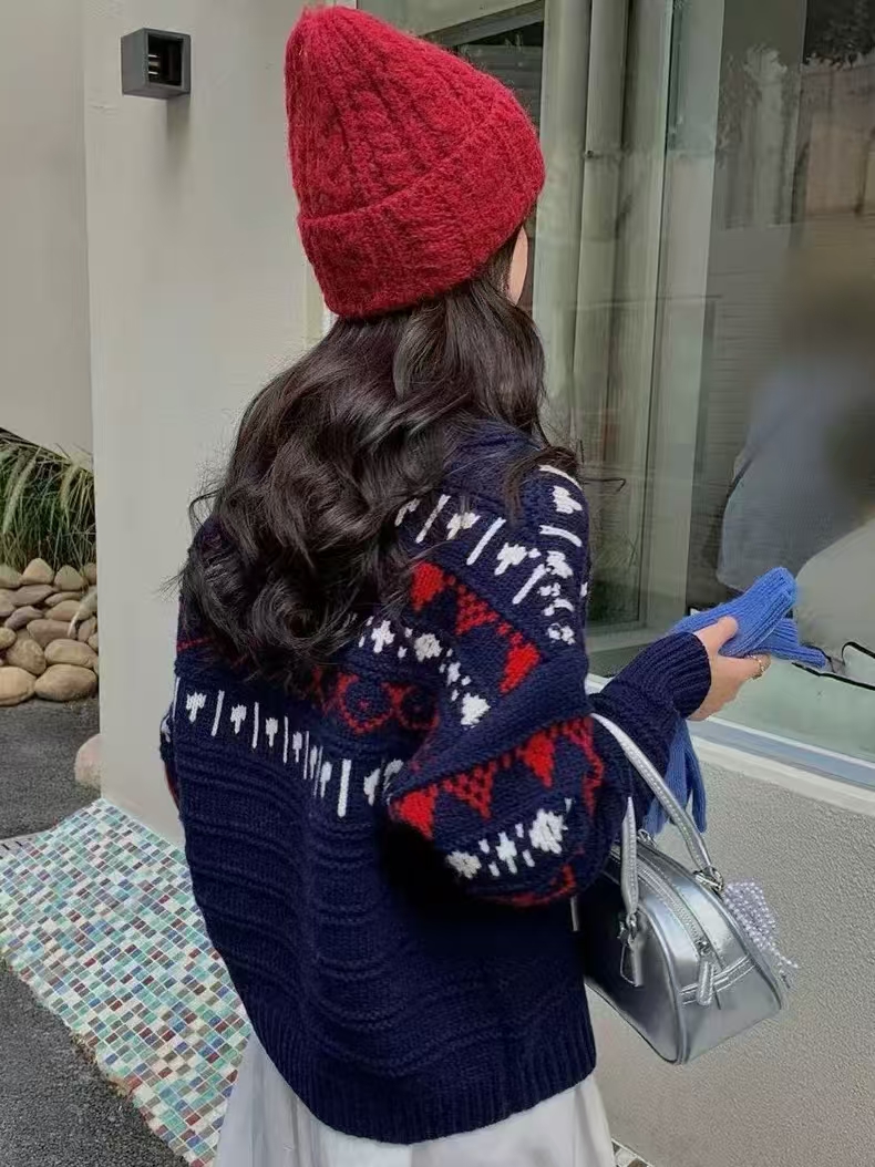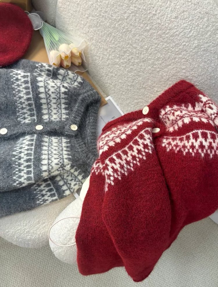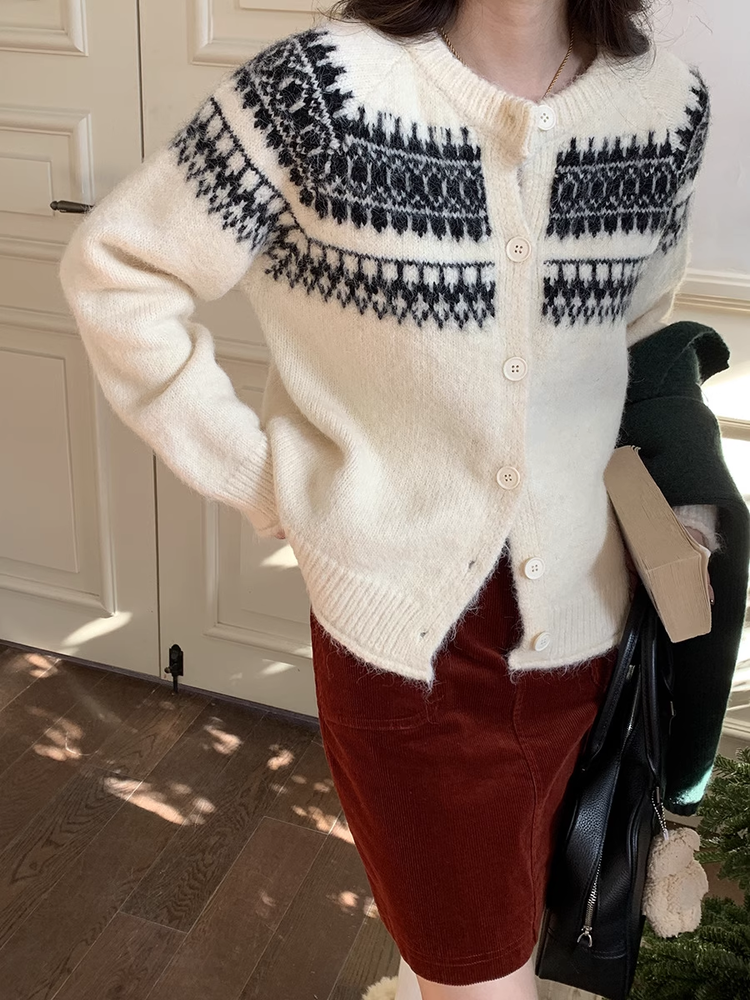 费尔岛风柔软复古毛衣开衫N1286:38.0%聚酯纤维 ,36.0%腈纶,26.0%锦纶