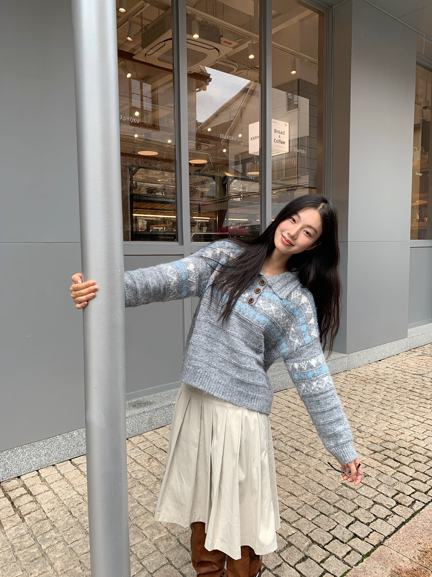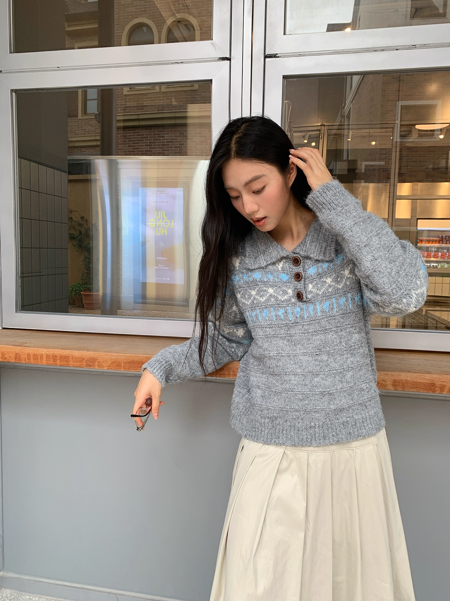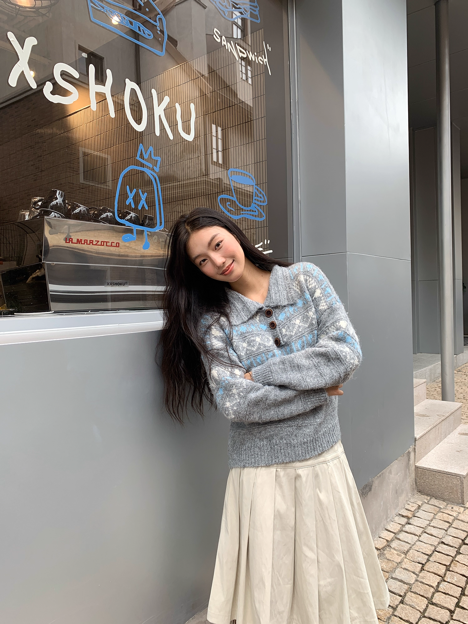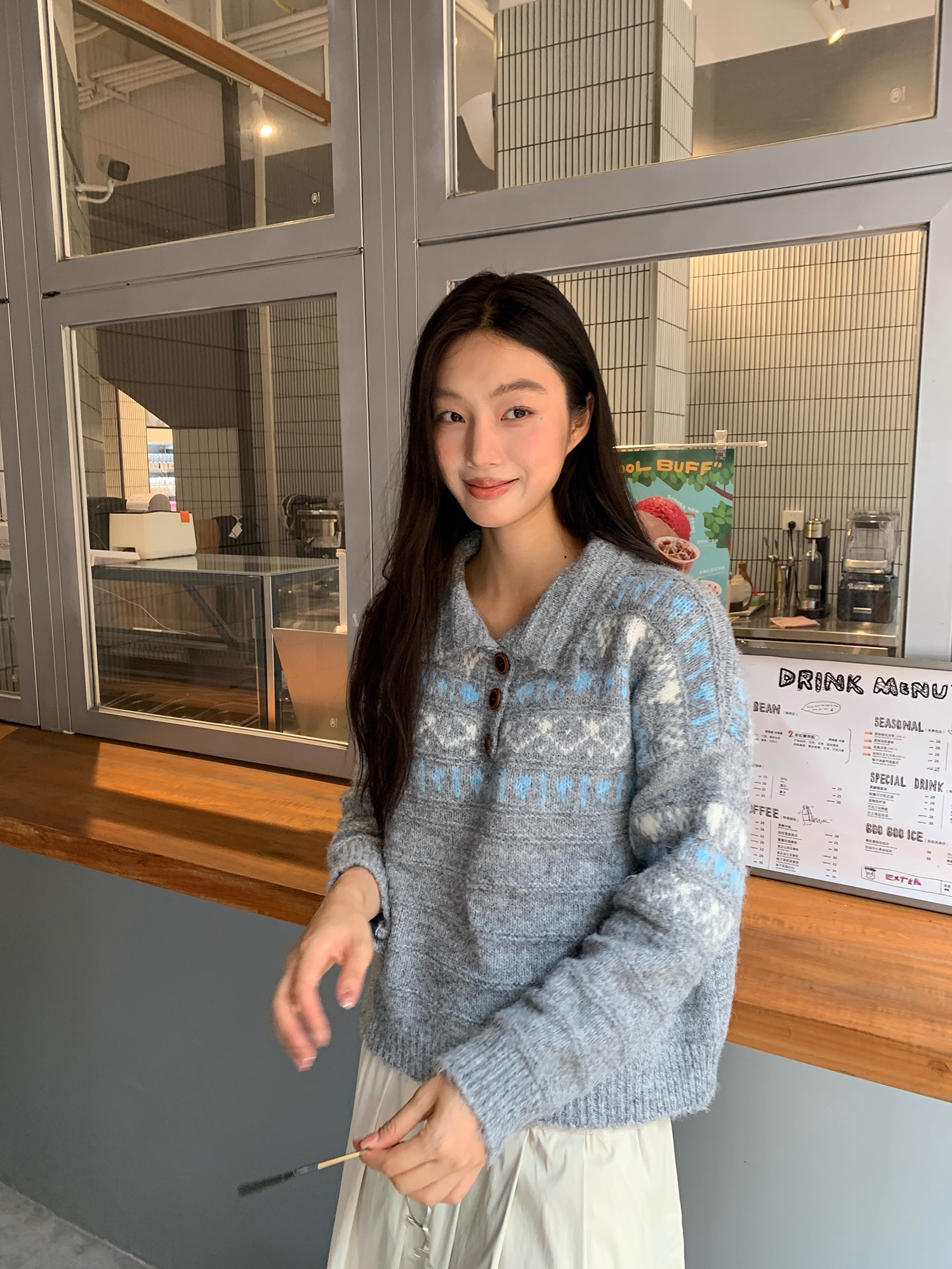 费尔岛提花Polo翻领毛衣外套N1322:78.0%聚酯纤维 11.8%锦纶 9.4%绵羊毛 0.8%氨纶
