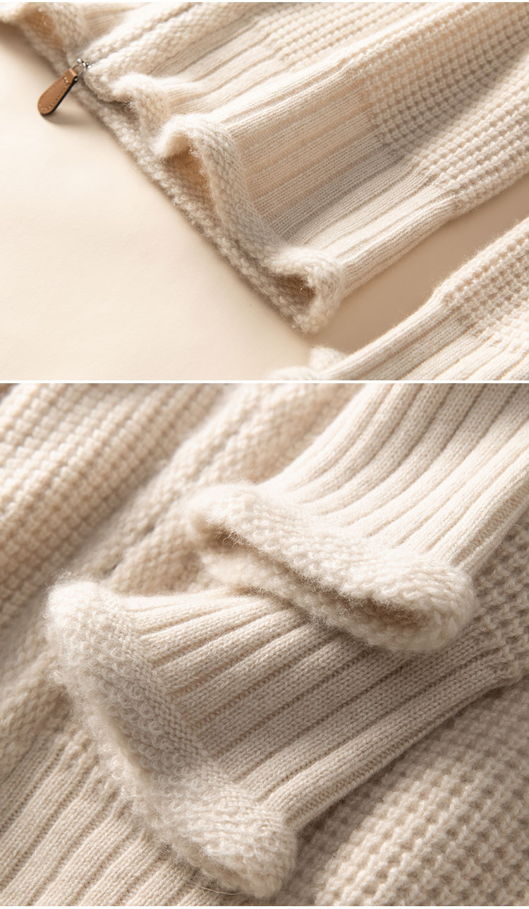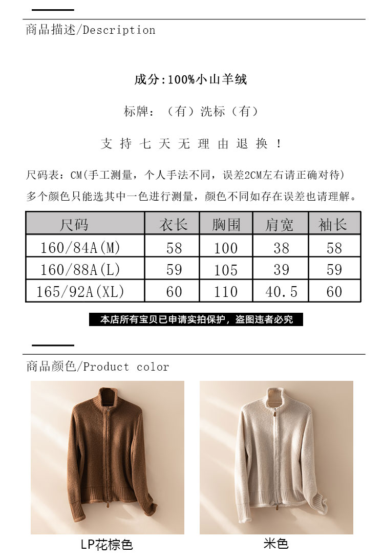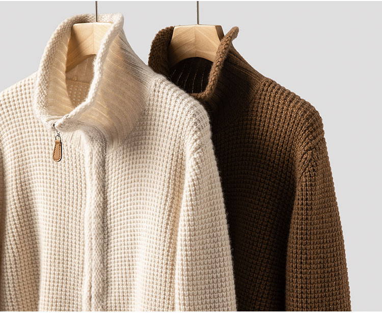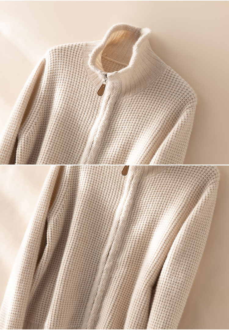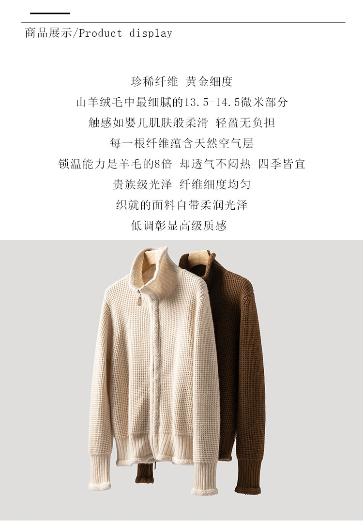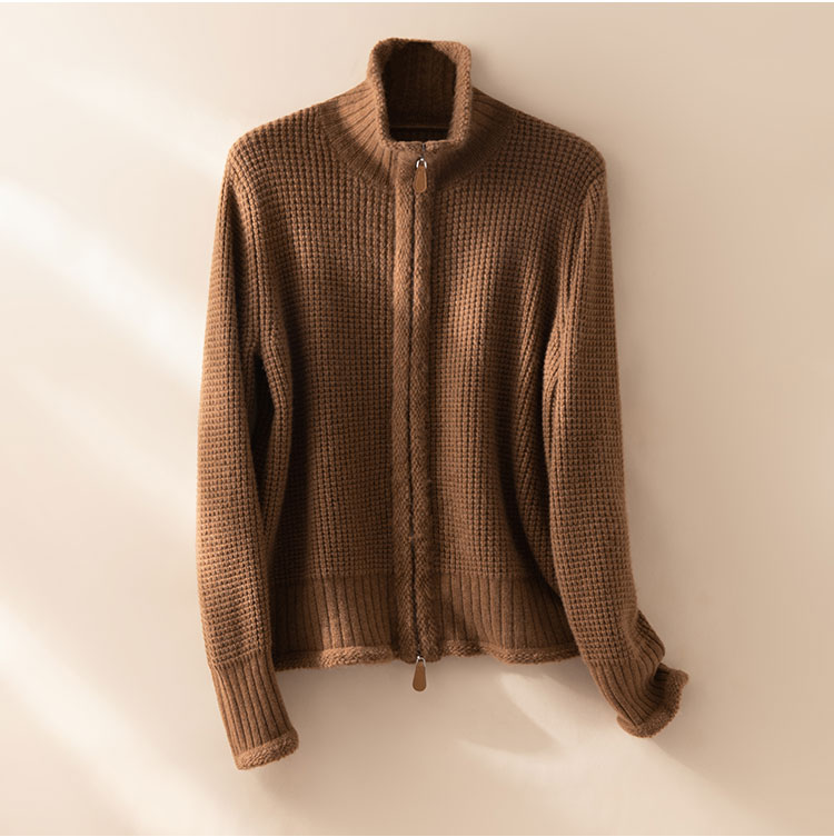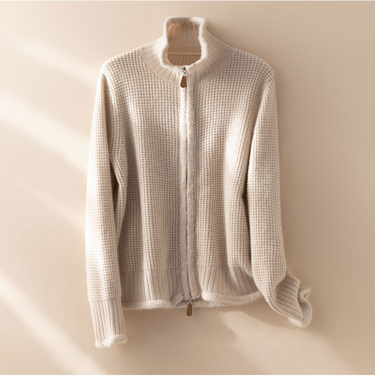 100%Baby小山羊绒~经典华夫格立领针织开衫外套BABY260526