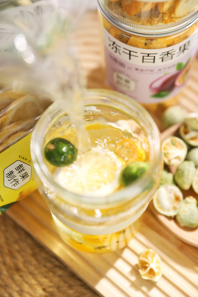 【赠耐高温玻璃杯】五虎 冻干金桔柠檬百香果茶 百香果80g+小青柑50g+黄金桔60g+柠檬30g 赠:玻璃水杯及手提袋 优质原料 满满维C