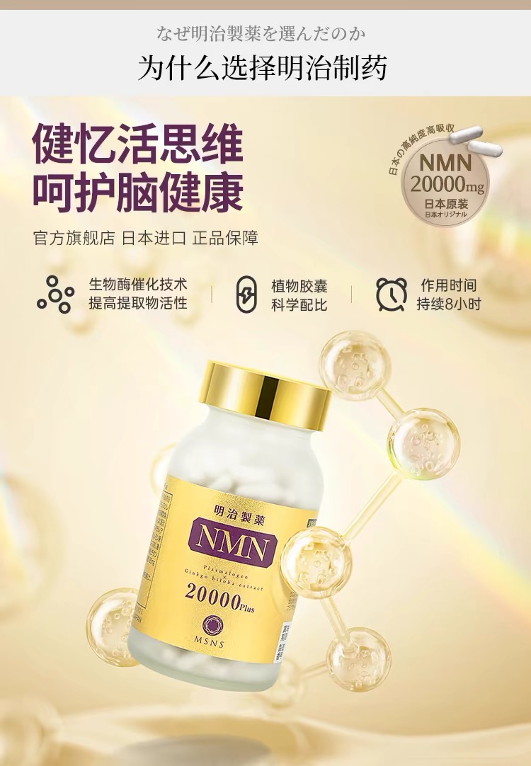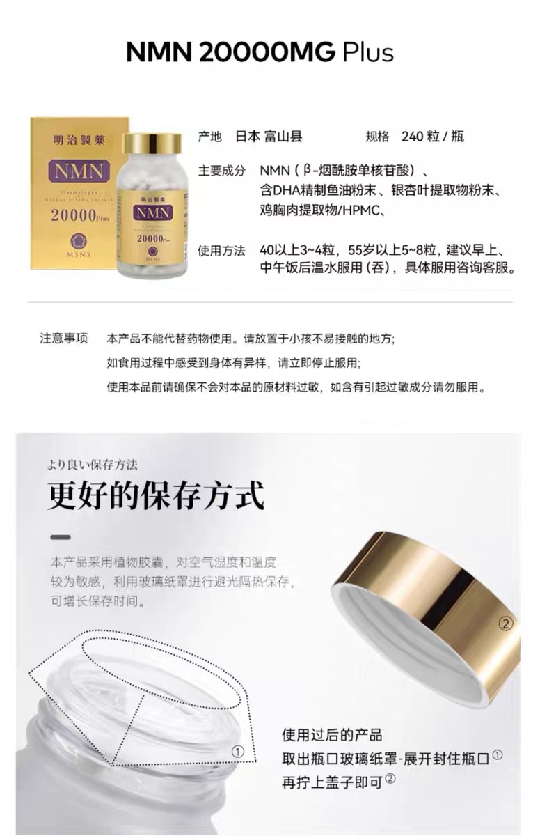 【礼想心动】明治制药 20000mg礼盒装 NMN·胶囊240粒/瓶*3瓶【香港直邮】(香港直邮,一单仅限拍一件,请与其他商品分开下单,需要单独购买)
